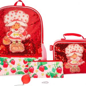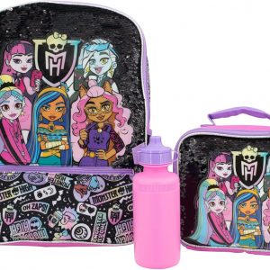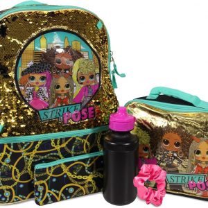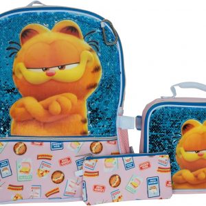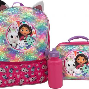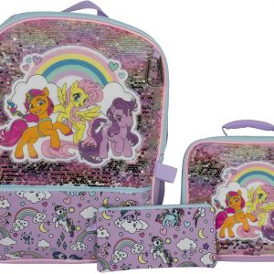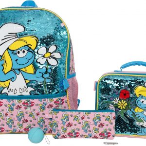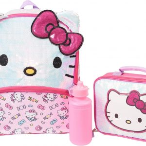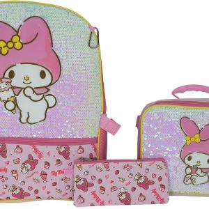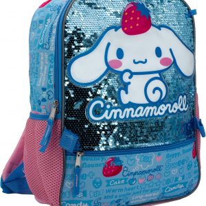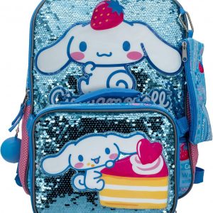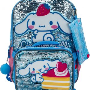 AI ACCESSORY INNOVATIONS Sanrio\u2019s Cinnamoroll 5 Piece Backpack Set, Hello Kitty Kawaii Flip Sequin Girls School Bag with Front Zip Pocket, 2 Side Mesh Pockets, Blue