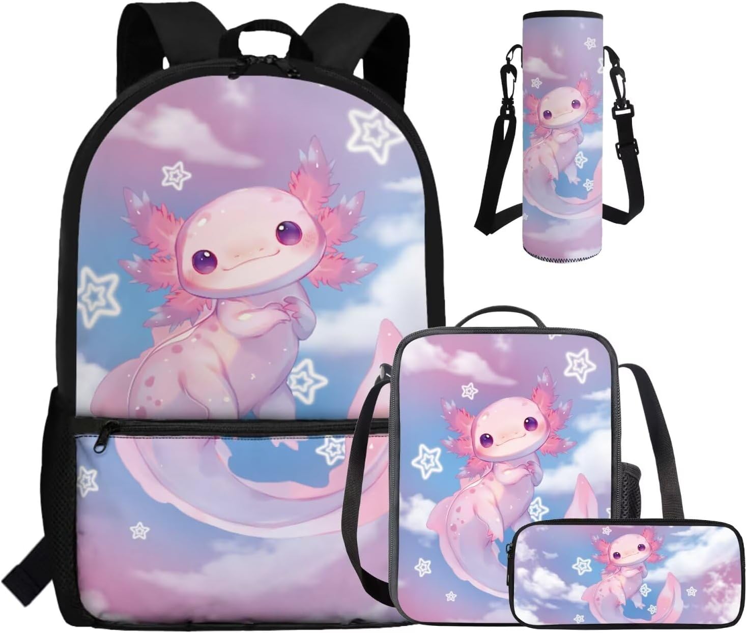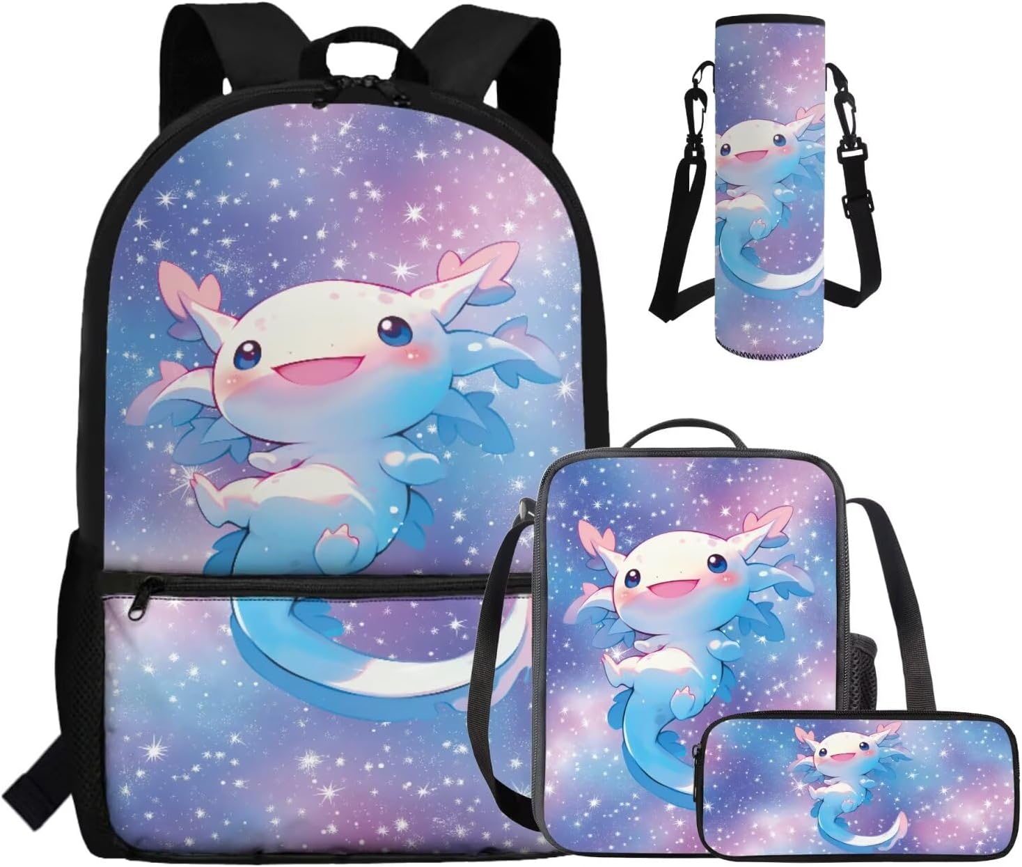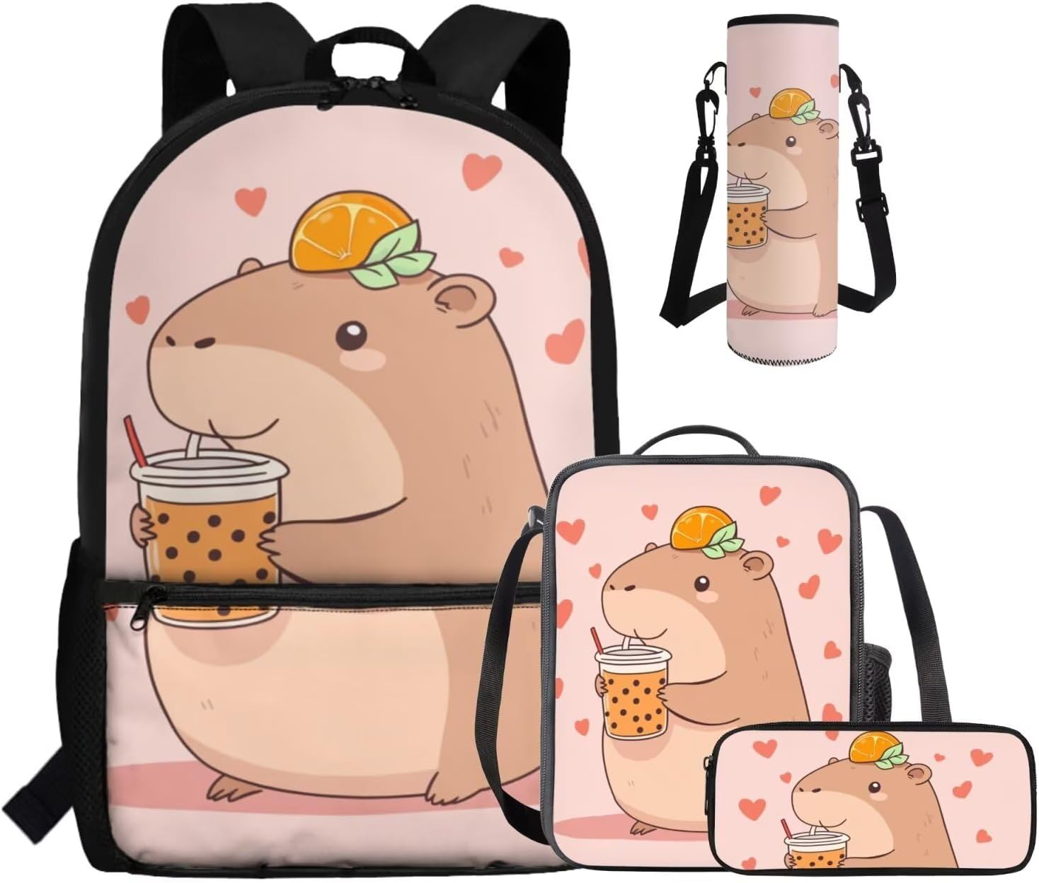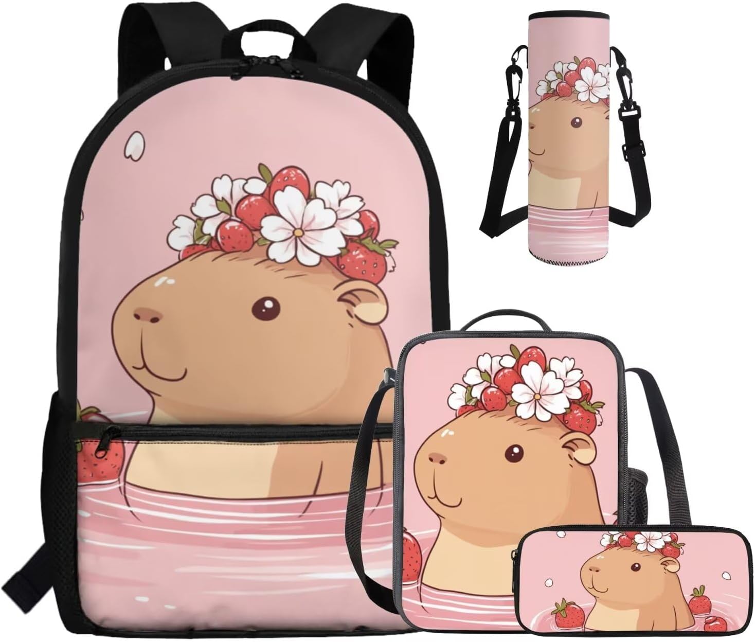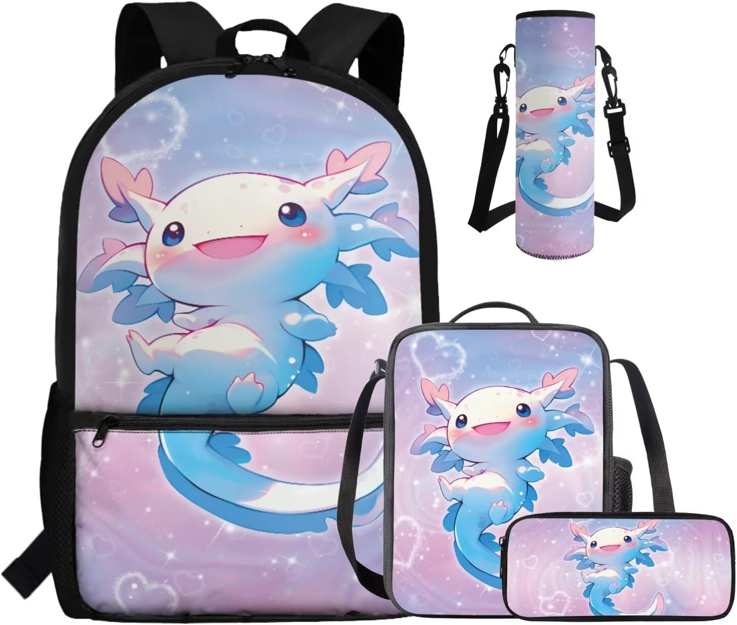 Our 4-in-1 backpack set includes everything your child needs for school and beyond. Featuring a spacious main backpack (17.3 x 11 x 5.1 inches), an insulated lunch bag (9 x 7 x 2.7 inches), a practical pencil case (8.2 x 3.9 x 1.5 inches), and even a portable water cup cover strap, it covers all essentials. Designed to grow with your child 5-15 Year old, this set is perfect from kindergarten through middle school.