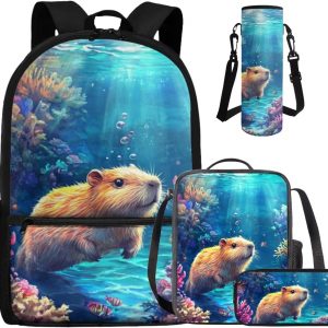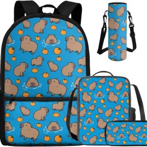 - 【School 4-in-1 Backpack Set】Ideal for kids 4 6 8 10 year old from kindergarten to middle school, this versatile set includes a spacious main backpack (17.3 x 11 x 5.1 inches), an insulated lunch bag (9 x 7 x 2.7 inches), and a practical pencil case (8.2 x 3.9 x 1.5 inches). and Portable water cup cover strap ( 3.8 x 10.2 inches) Perfectly sized for all school essentials, it ensures your child is always prepared for their daily activities