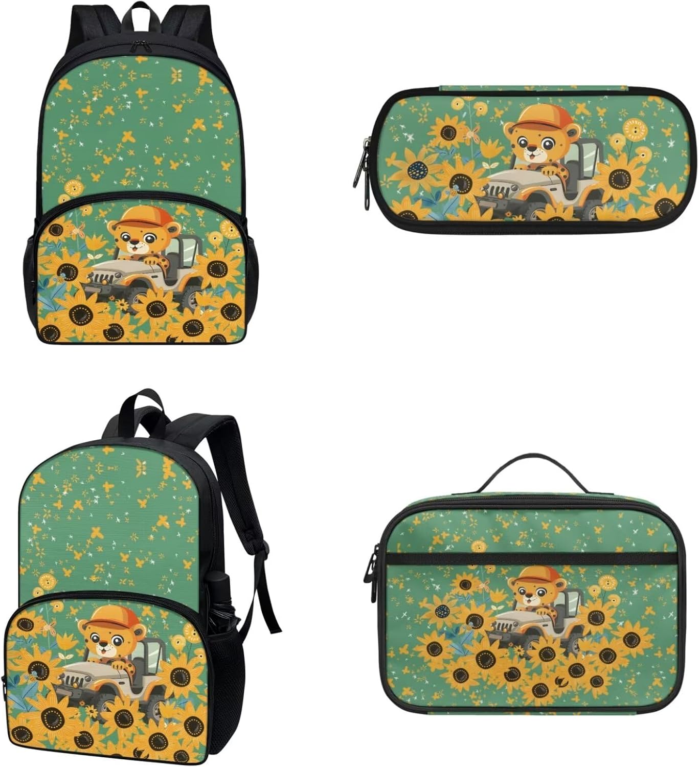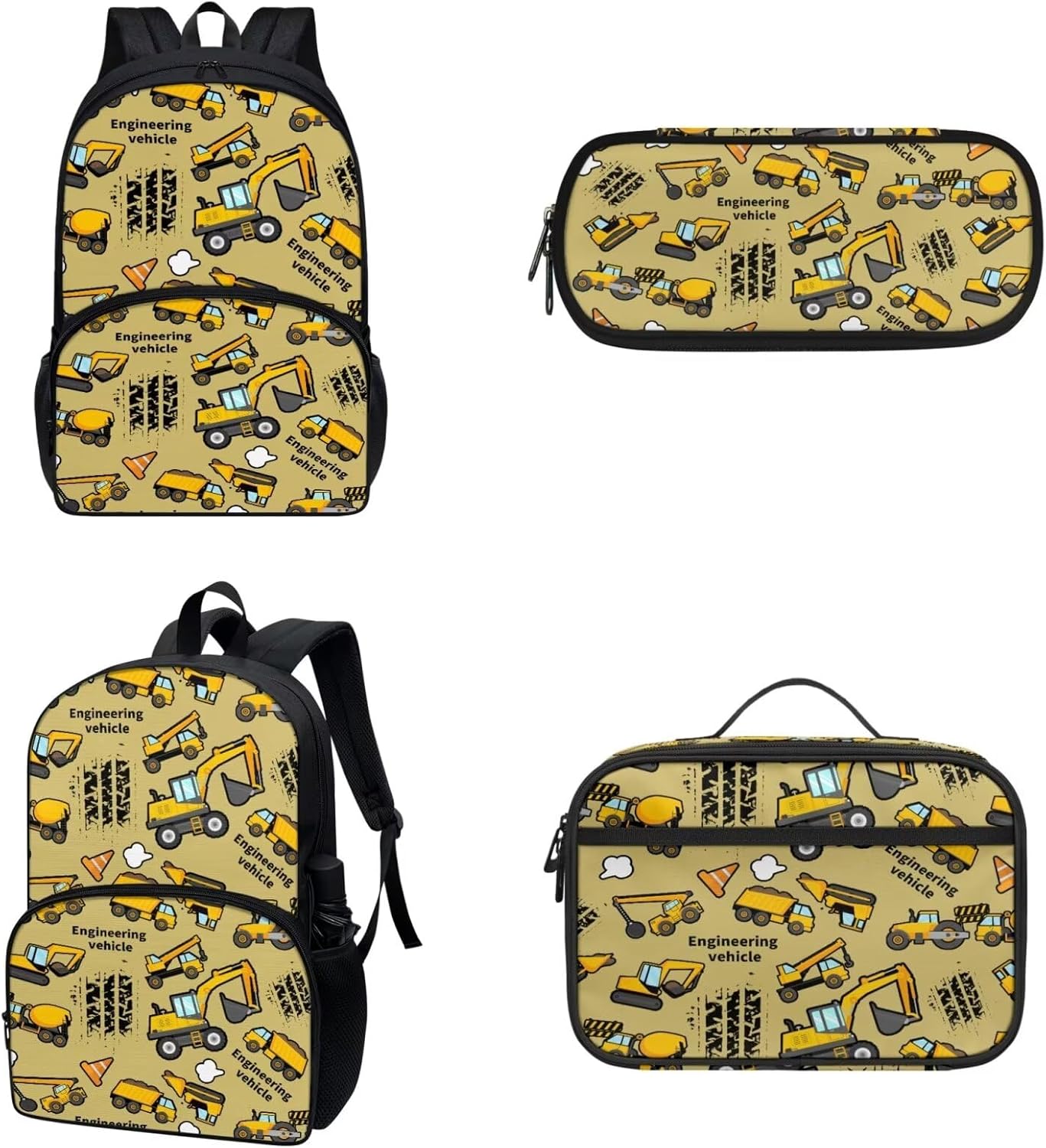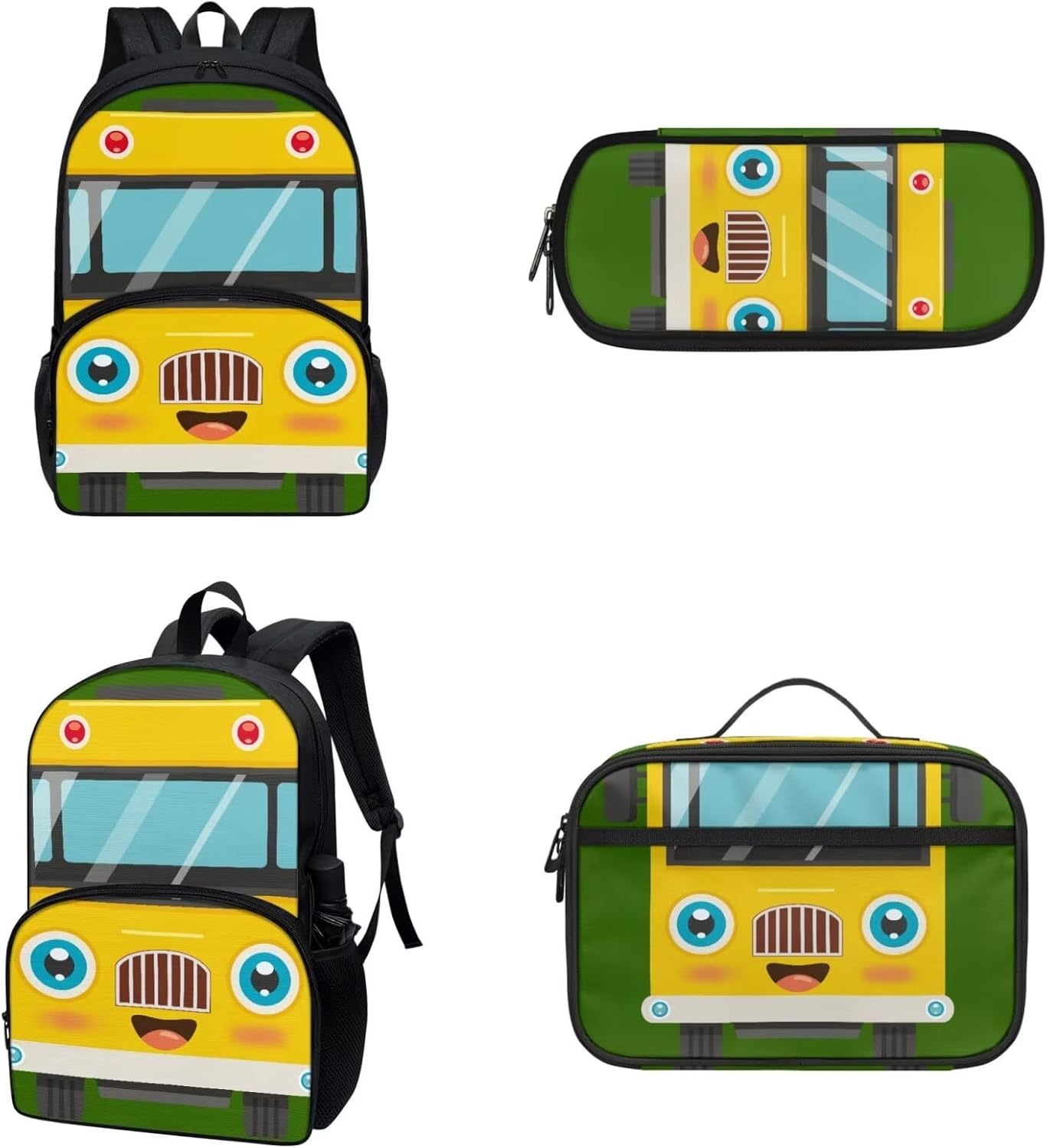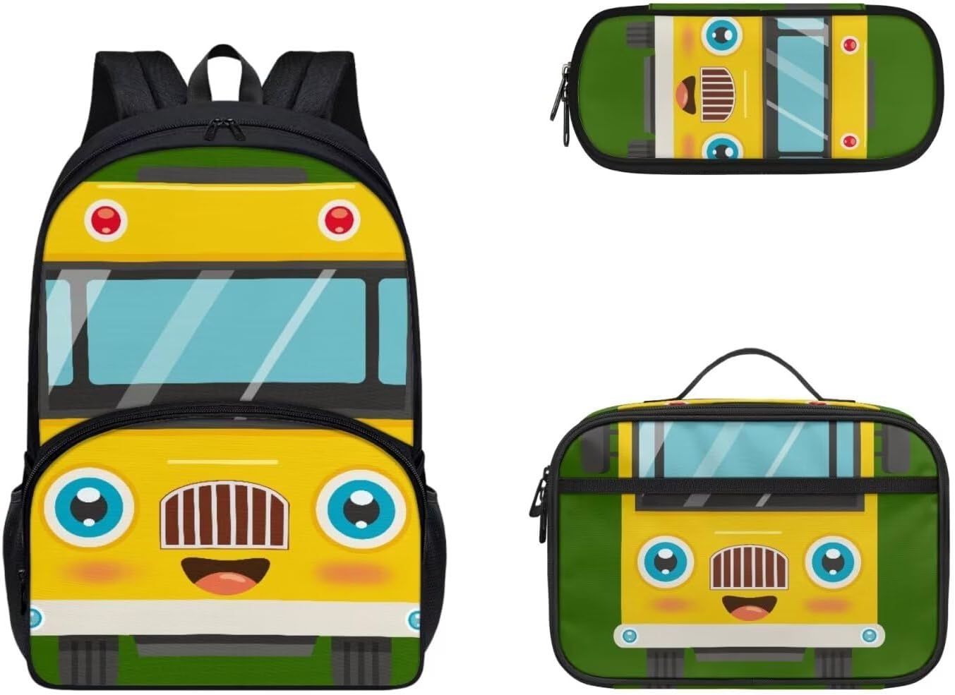 COEQINE Kawaii Kids School Backpack Sets 3 Pack,Yellow Schoolbus Bookbag With Lunch Box for Boys Kidergarten 6-10 Age Durable Student Daypack Pencil Case quantity