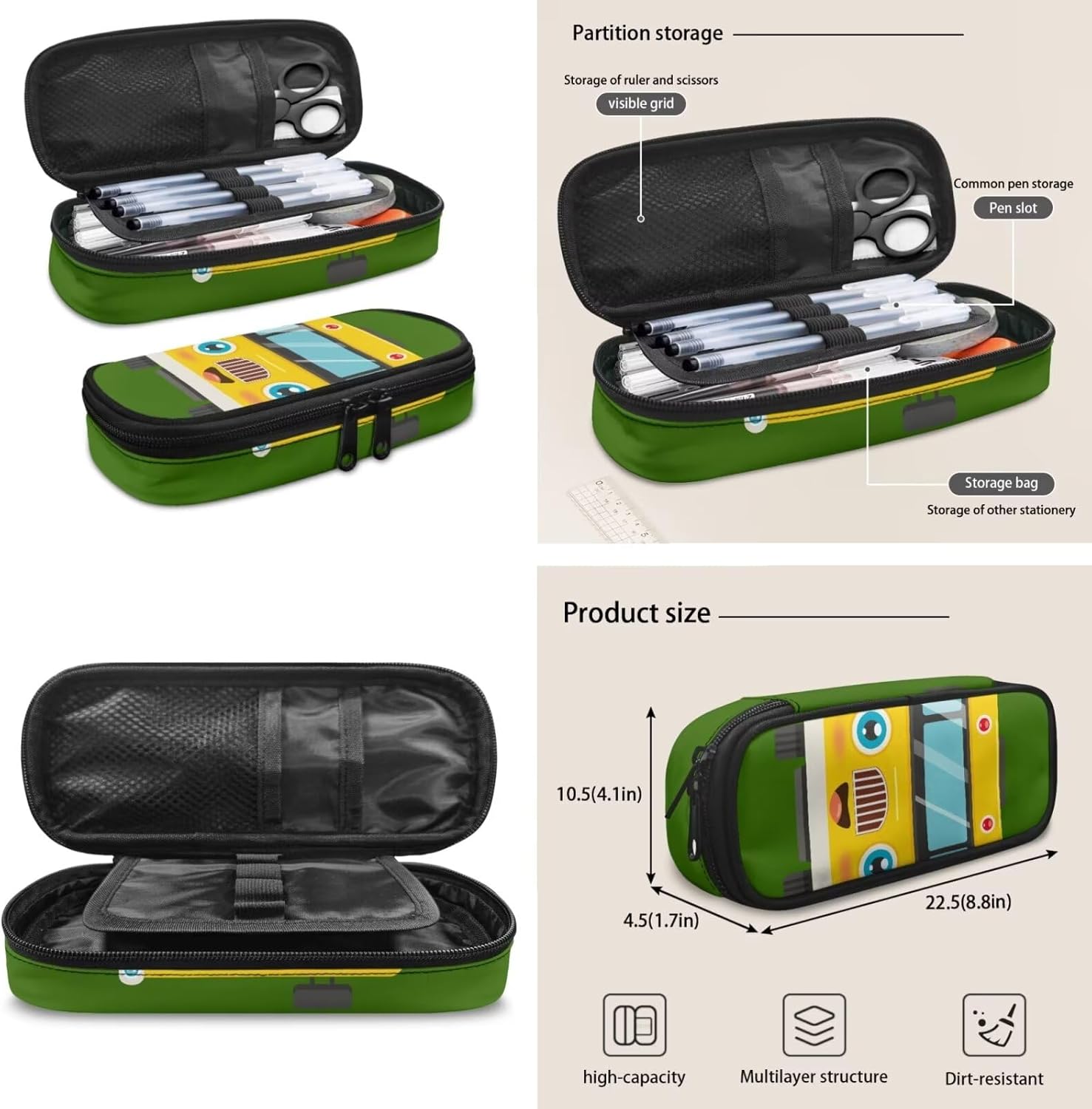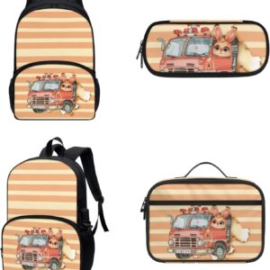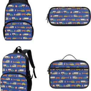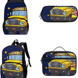 COEQINE Kawaii Kids School Backpack Sets 3 Pack,Yellow Schoolbus Bookbag With Lunch Box for Boys Kidergarten 6-10 Age Durable Student Daypack Pencil Case
