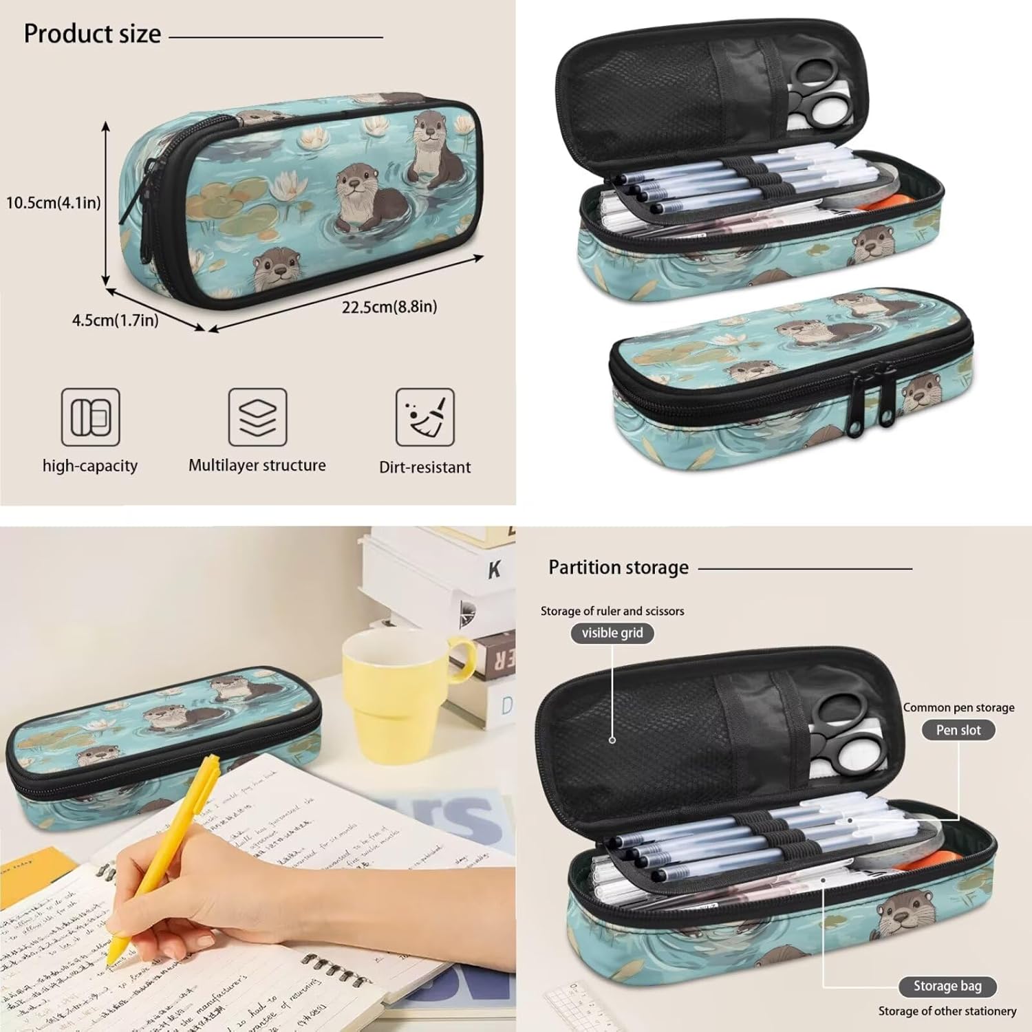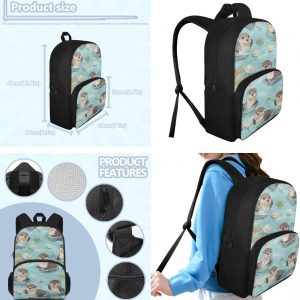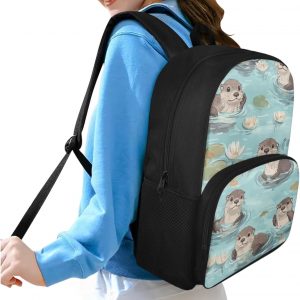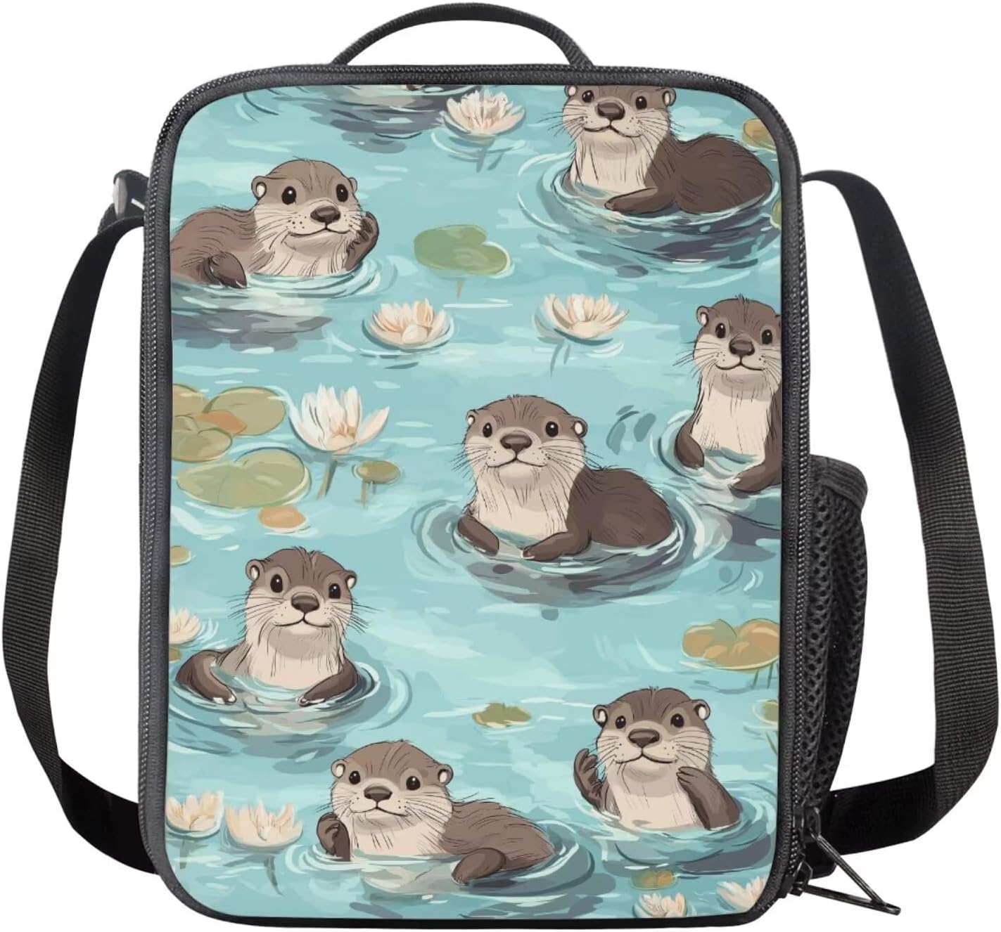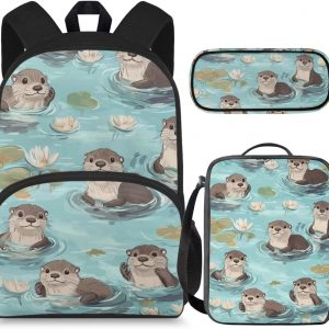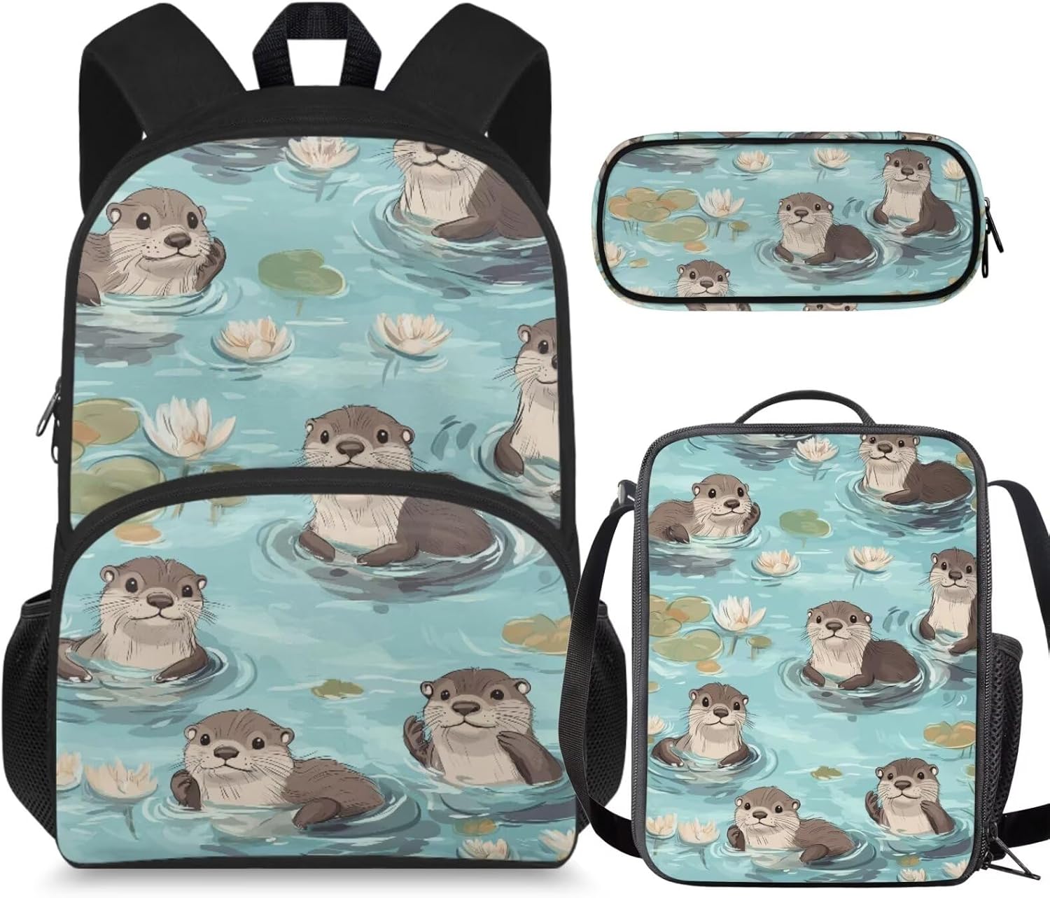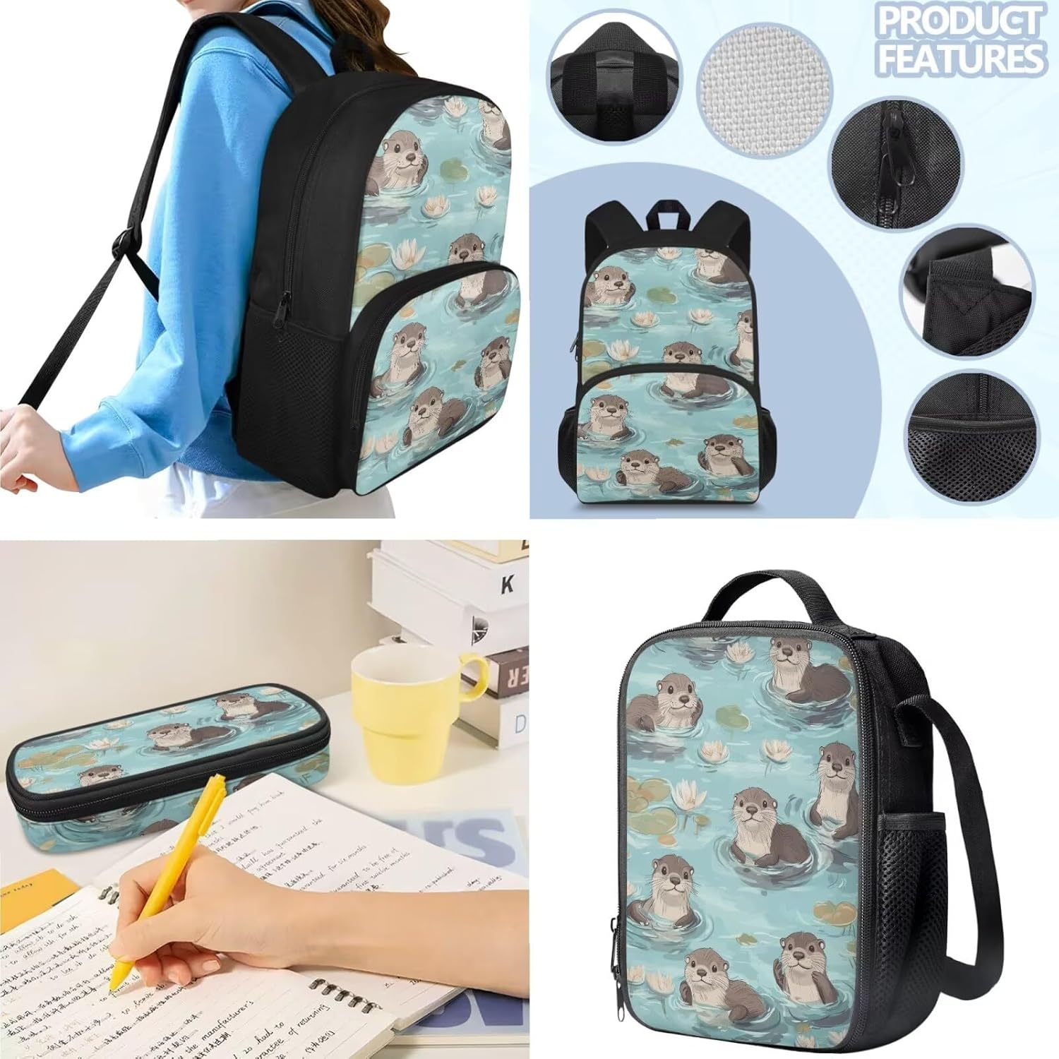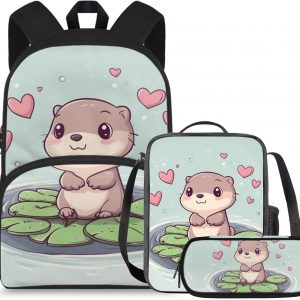 COEQINE Otter Backpack for Girls Kawaii Pre School Bookbag Set for Toddler with Lunch Box Strap Lightweight 3Pcs 15 Inch Book Bag for Kids 6-8 Year Large Penci Holder
