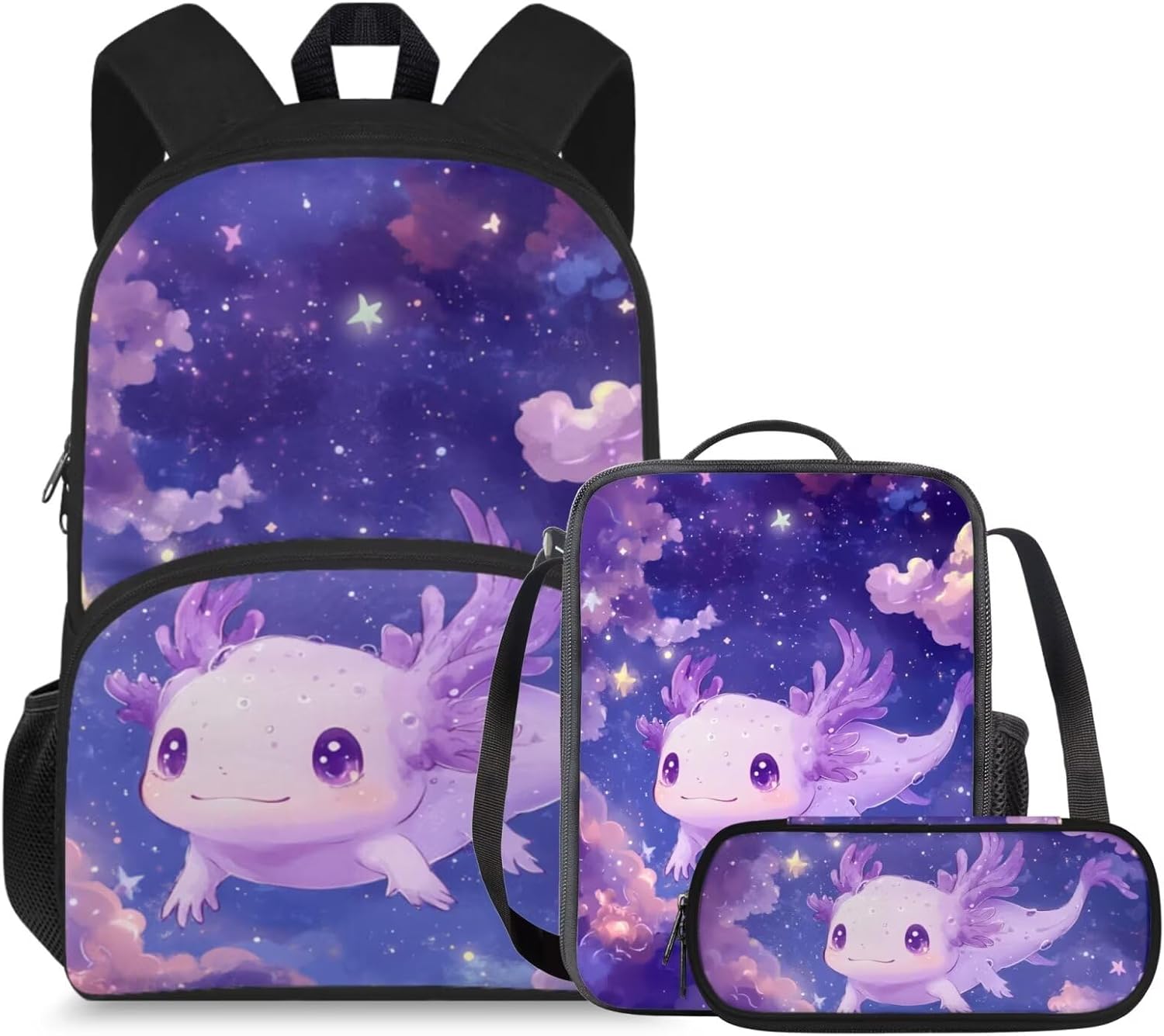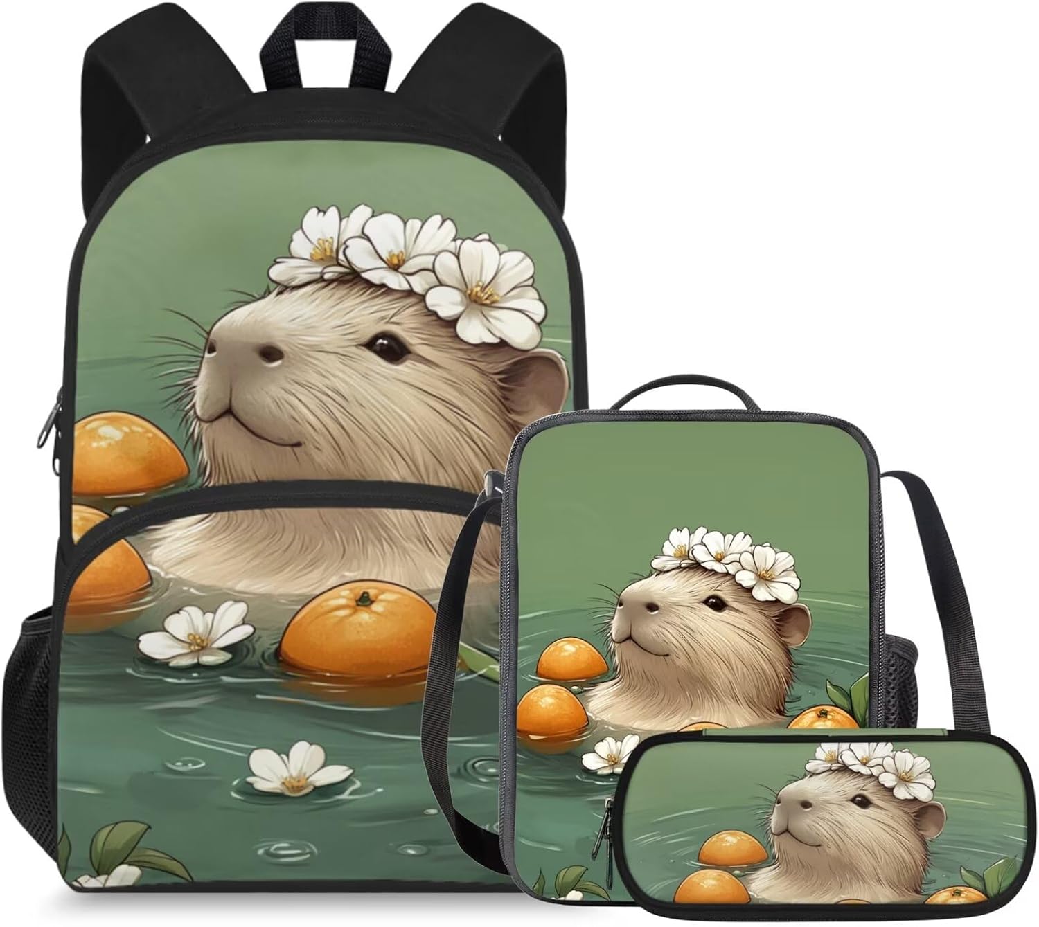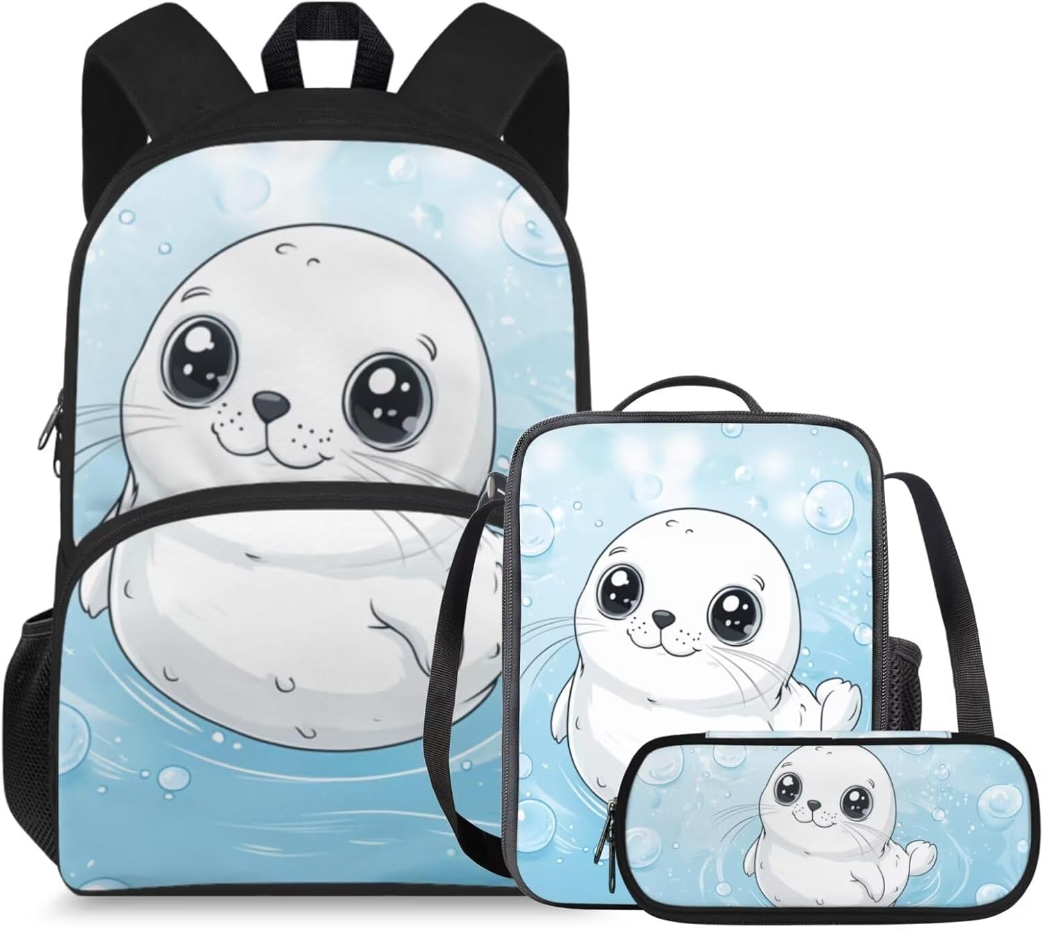 COEQINE Otter Backpack for Girls Kawaii Pre School Bookbag Set for Toddler with Lunch Box Strap Lightweight 3Pcs 15 Inch Book Bag for Kids 6-8 Year Large Penci Holder