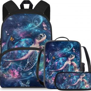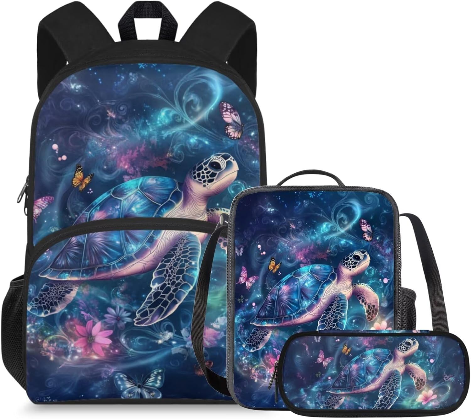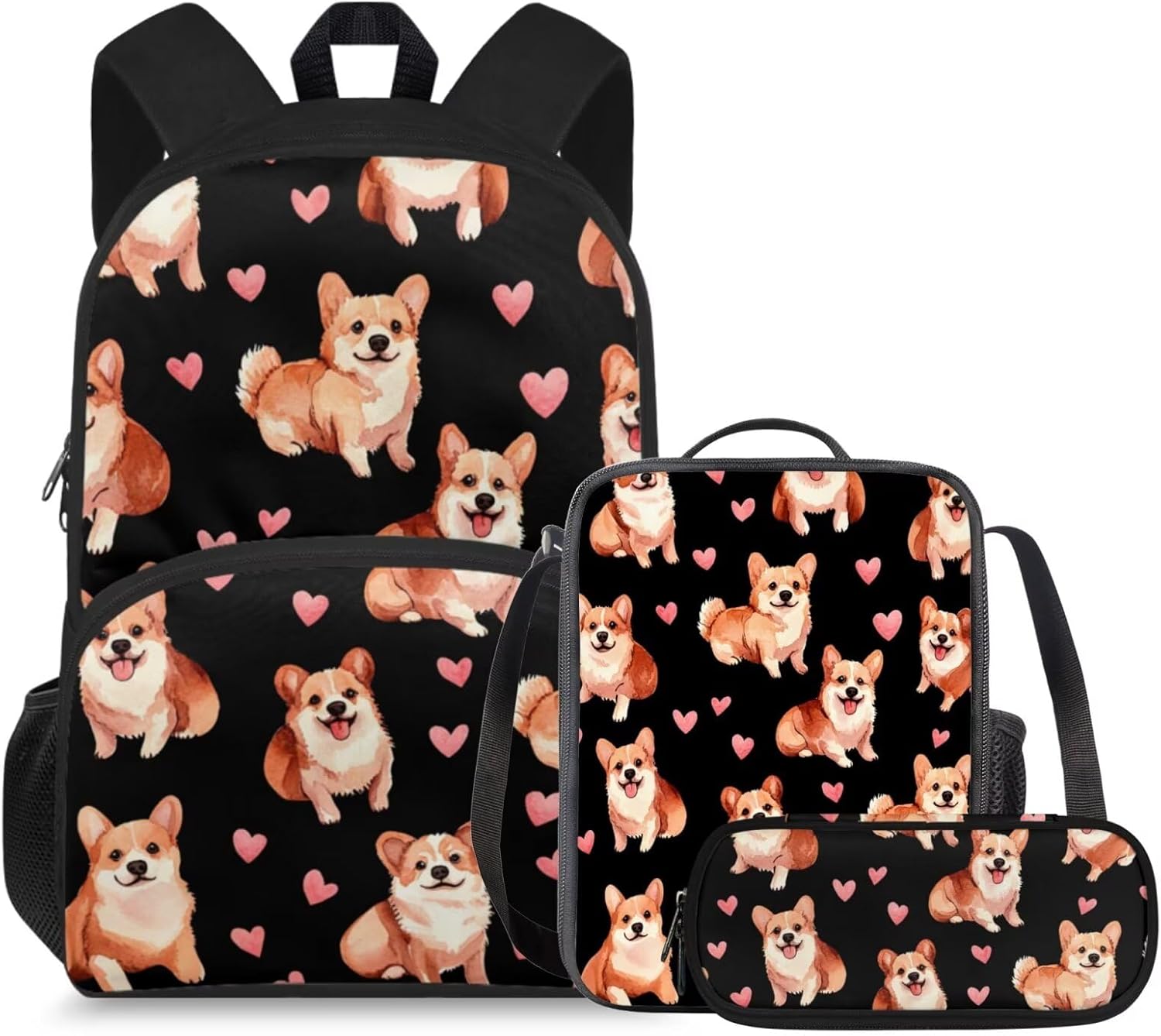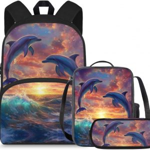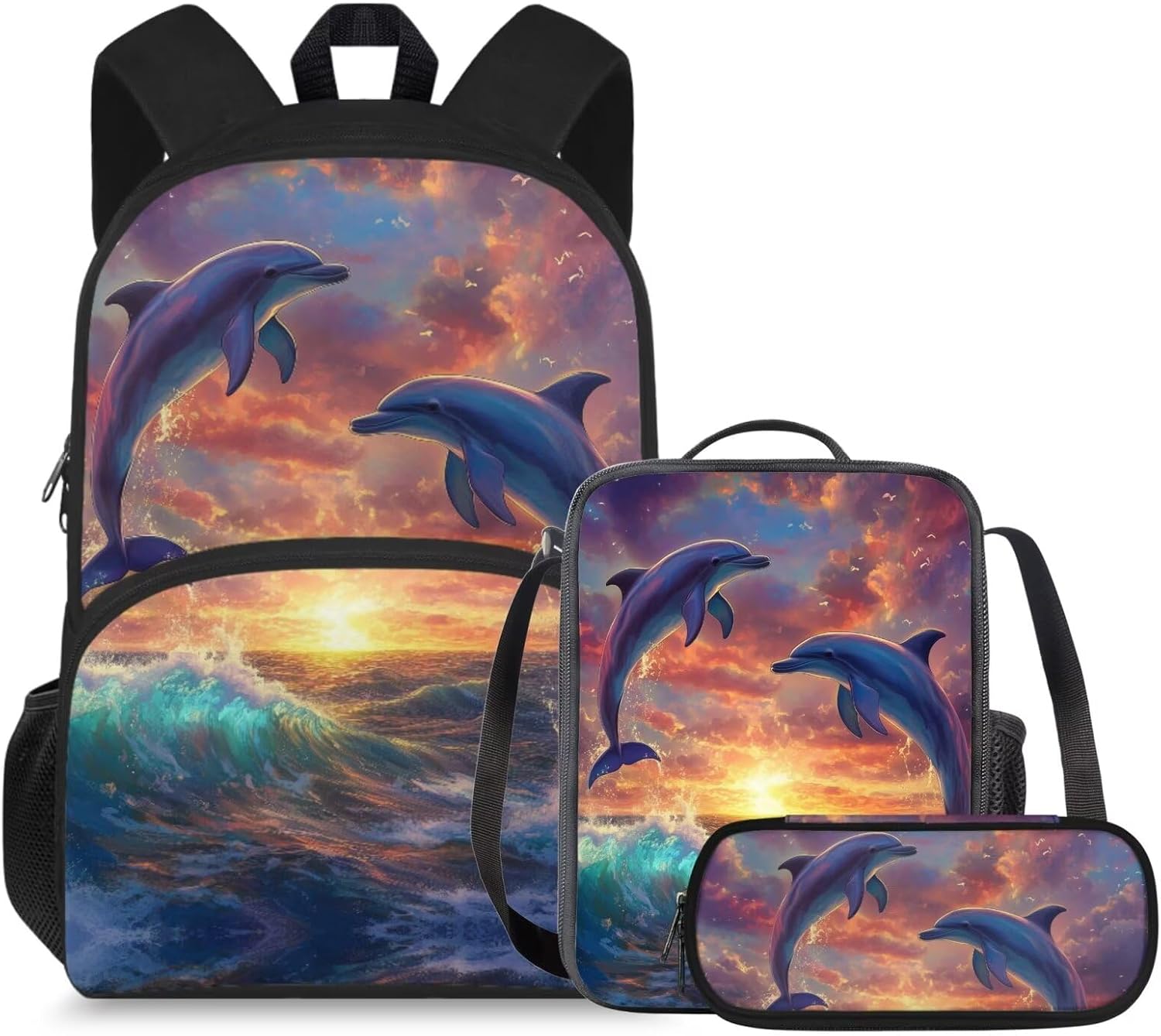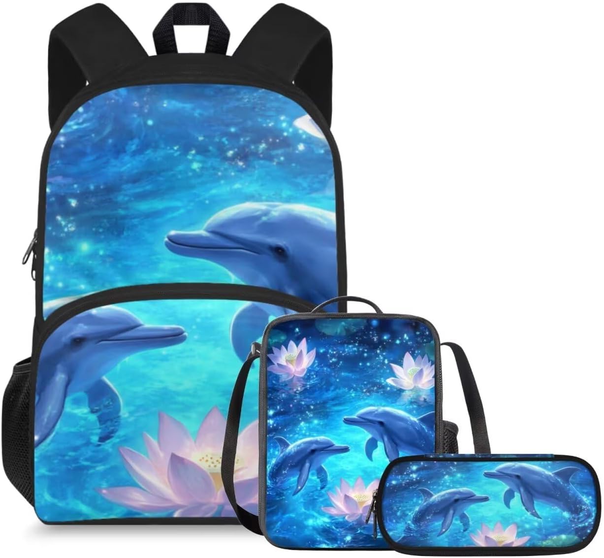 COEQINE Otter Backpack for Girls Kawaii Pre School Bookbag Set for Toddler with Lunch Box Strap Lightweight 3Pcs 15 Inch Book Bag for Kids 6-8 Year Large Penci Holder