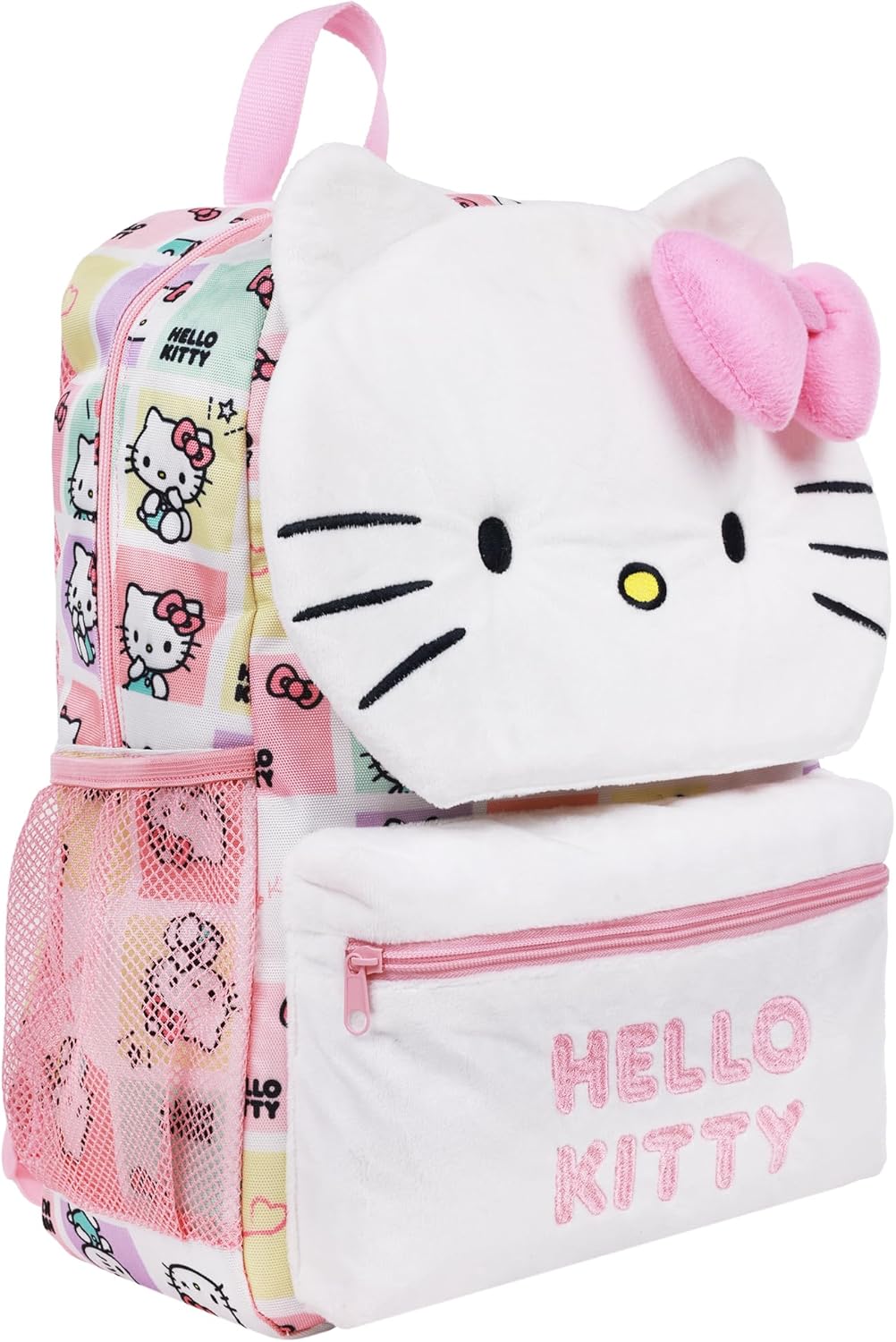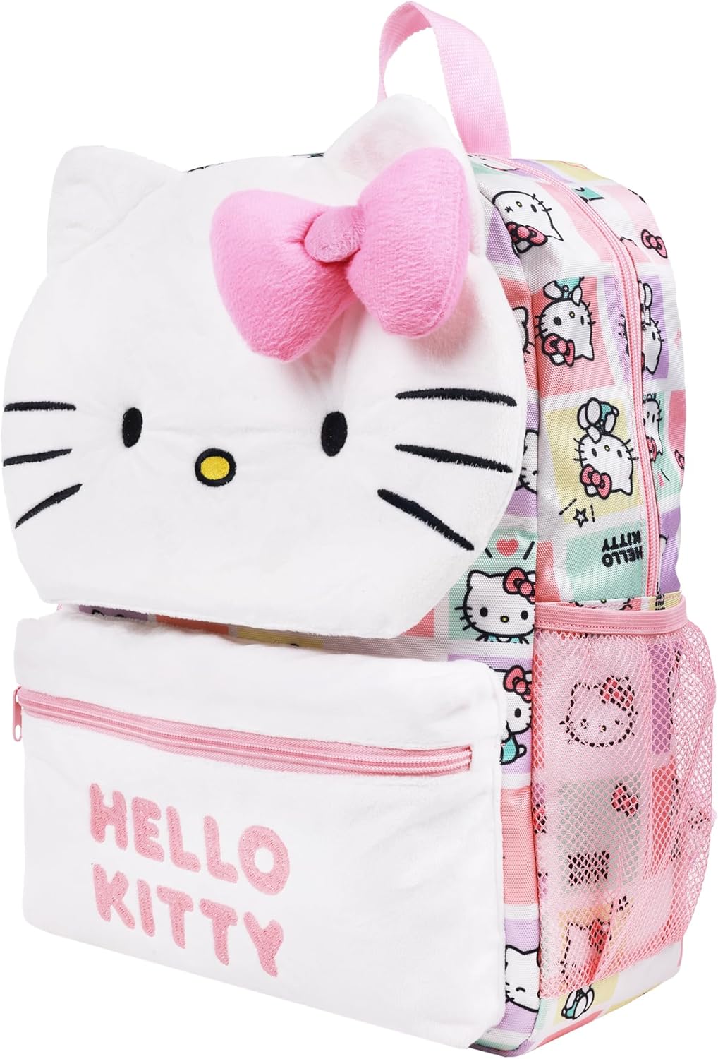 Concept One Hello Kitty Backpack with Plush Face 3D Bow, Kawaii Character Bag, Pink
