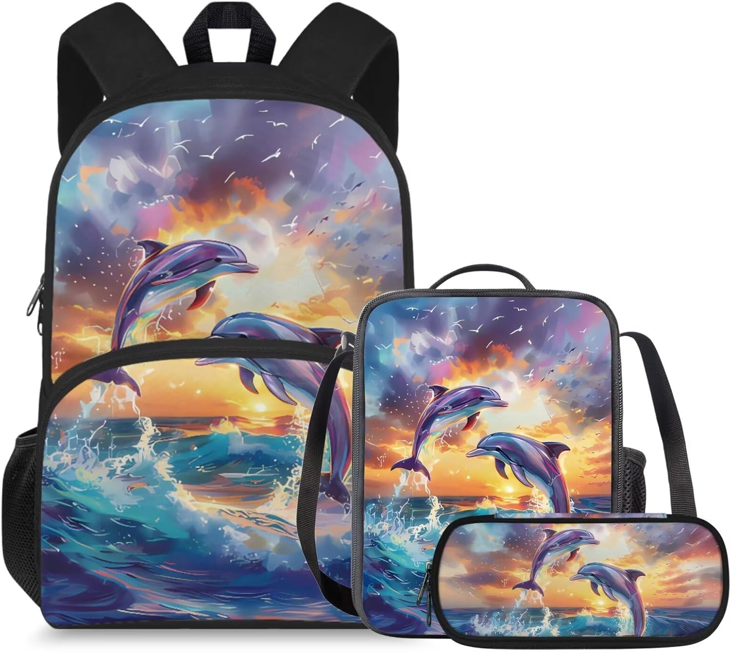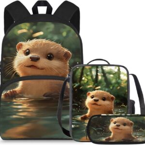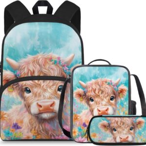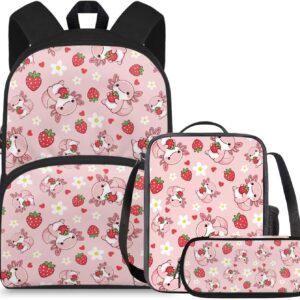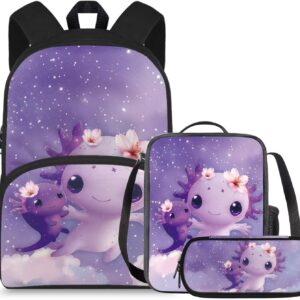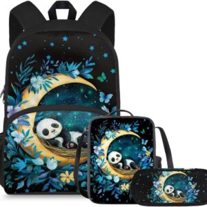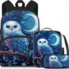 doginthehole Cute Owl Moon Backpack for Girls Kawaii Large Capacity Kids School Bag with Lunch Bag 3 Piece Lightweight Bookbag for Girls 7-8 for Elementary School Casual Travel Book Bags