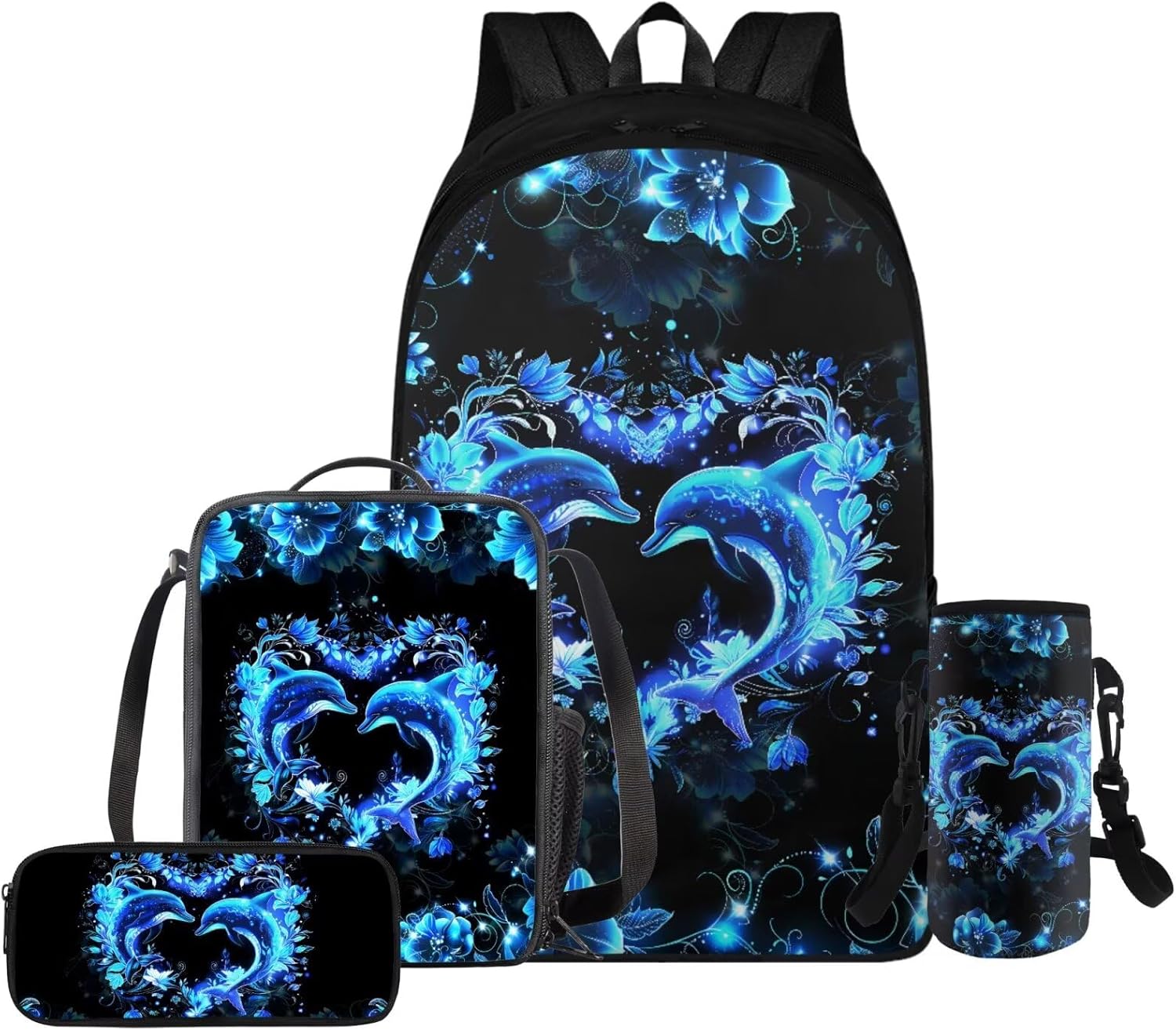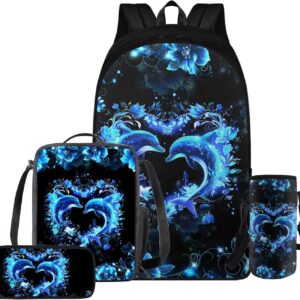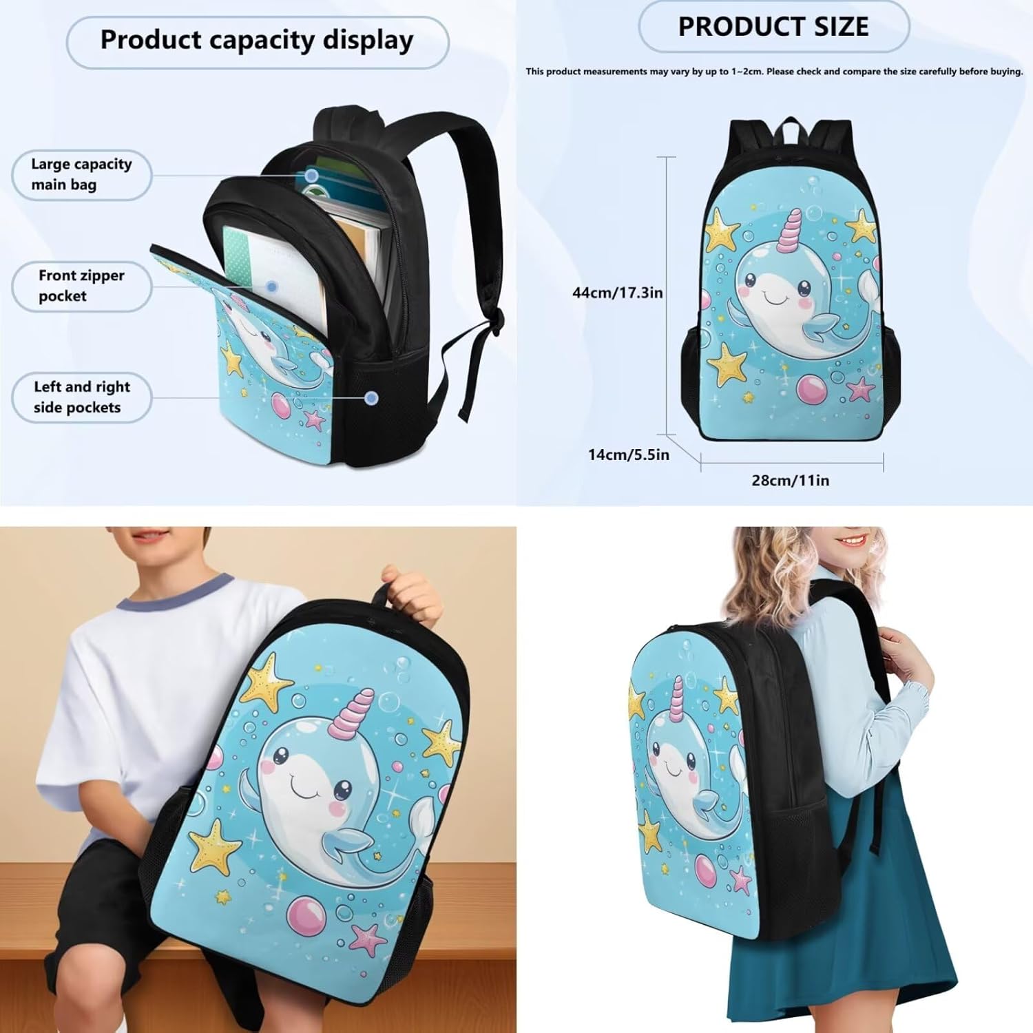 doginthehole Cute Whale Backpack for School Girls Kawaii Girls School Bag with Lunch Bag 4pcs Large Capacity Girls Bookbag Ages 8-10 for Elementary School Kids Casual Travel Book Bags