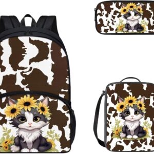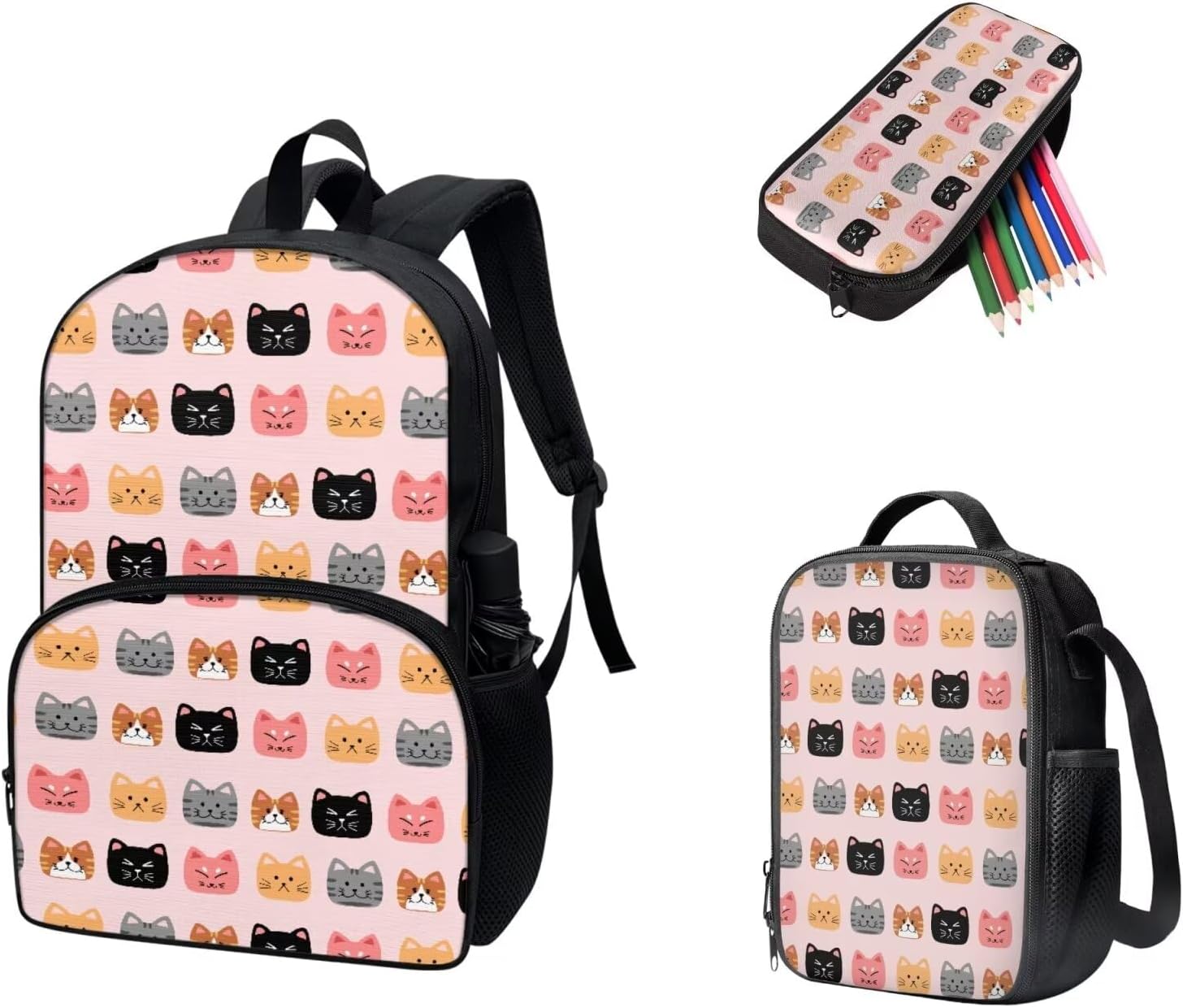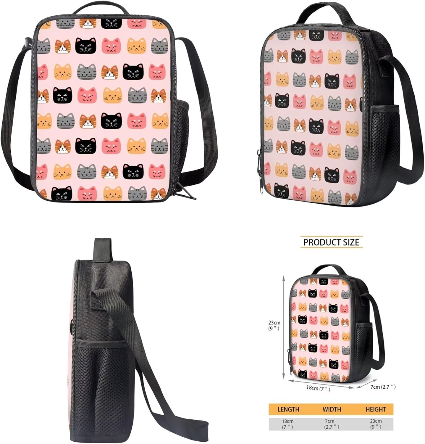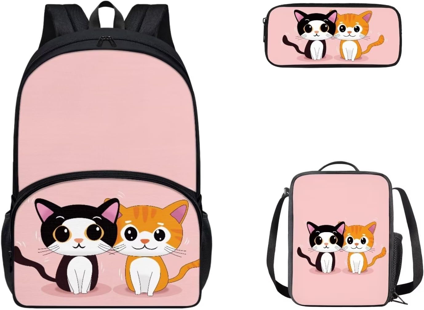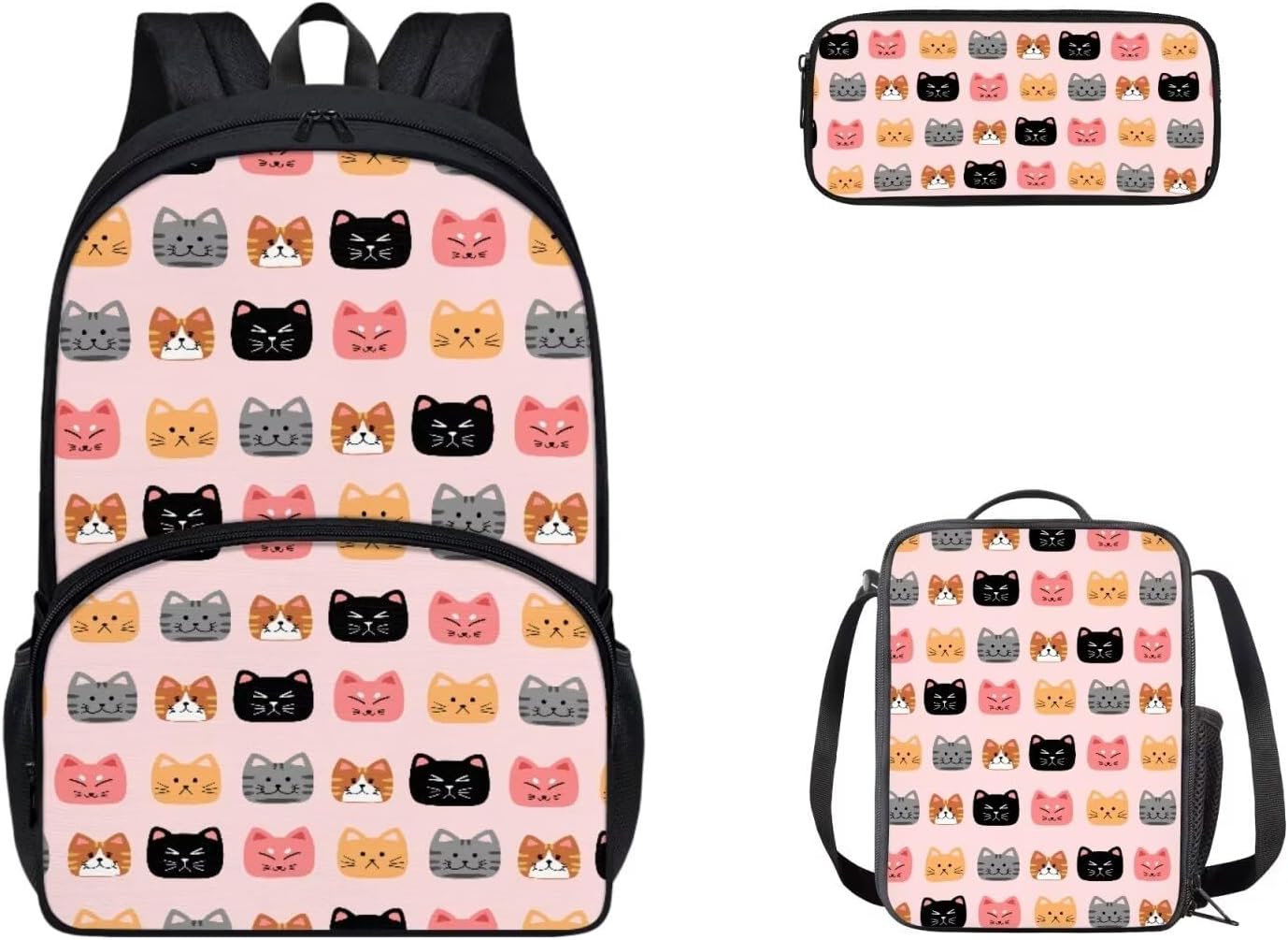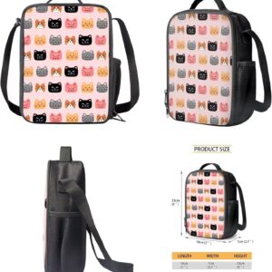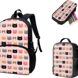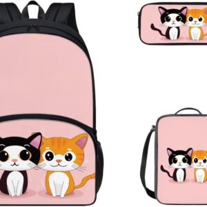 doginthehole Kawaii Cat Print Book Bag Aesthetic School Bags with Insulated Lunch Box & Pencil Case Pink School Backpack Set 3-in-1 Large Capacity Bookbags Travel Daypack Rucksack for Girls 10-12