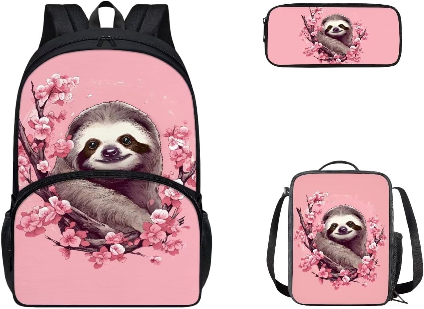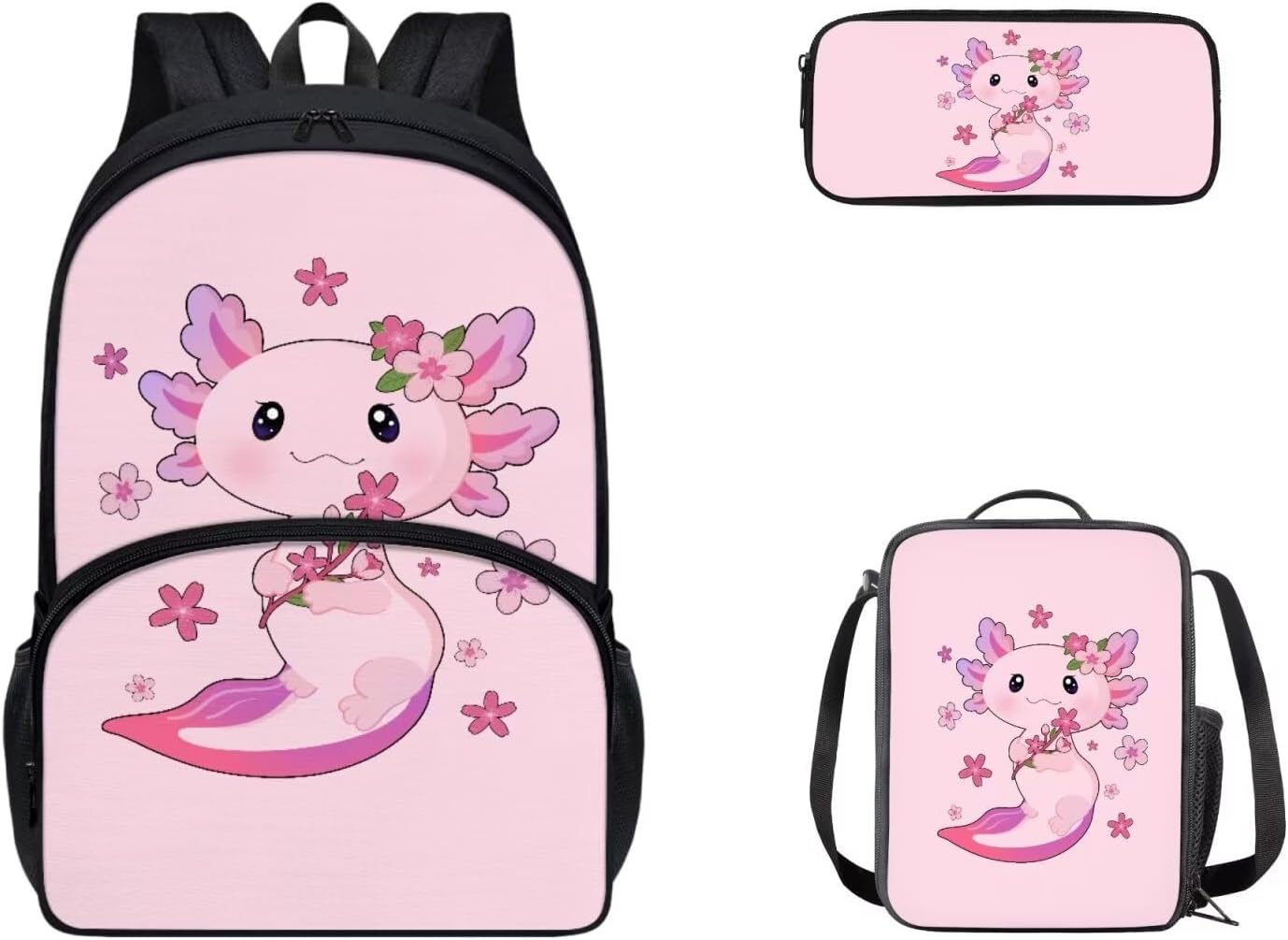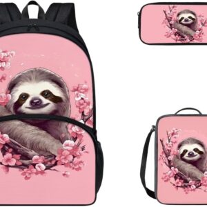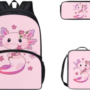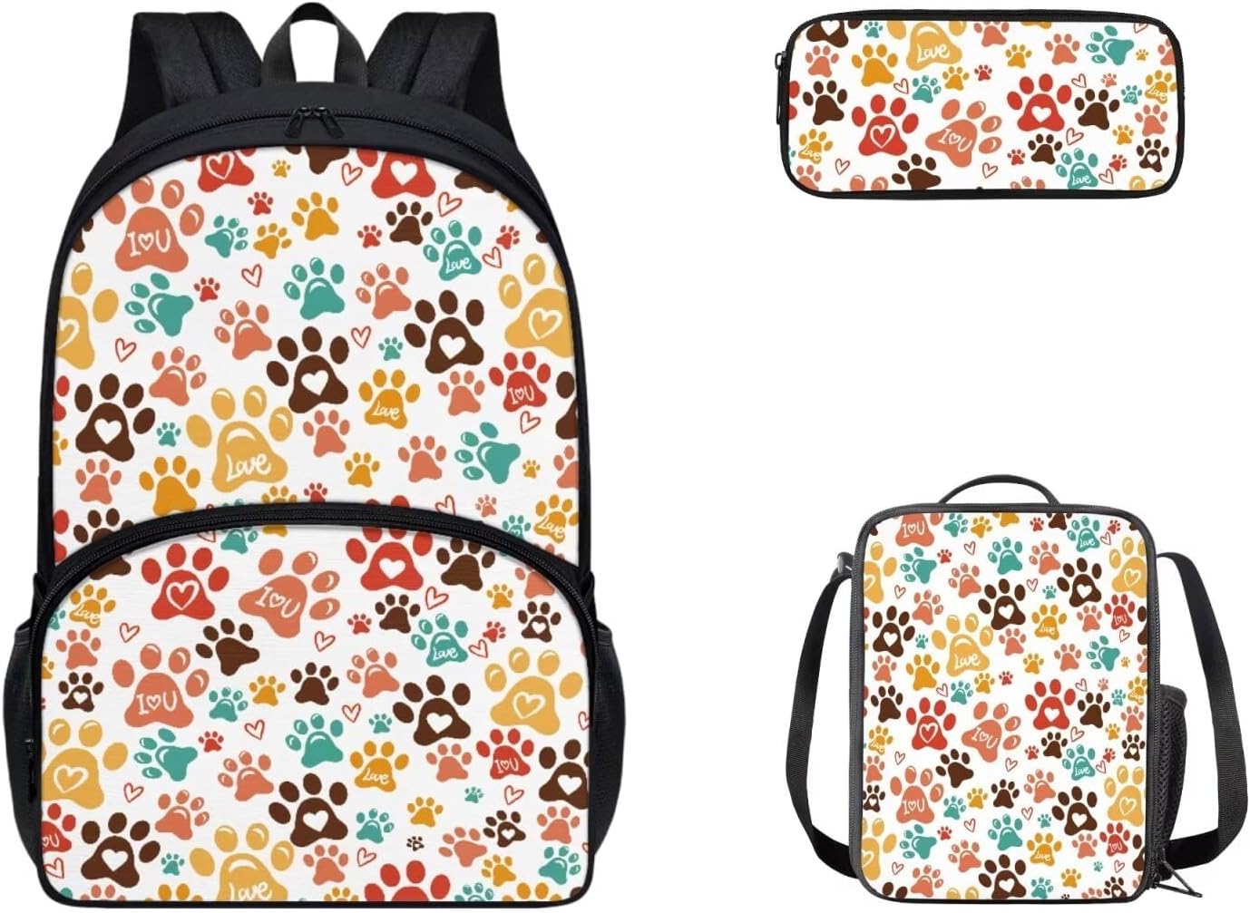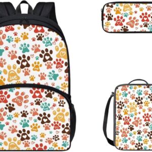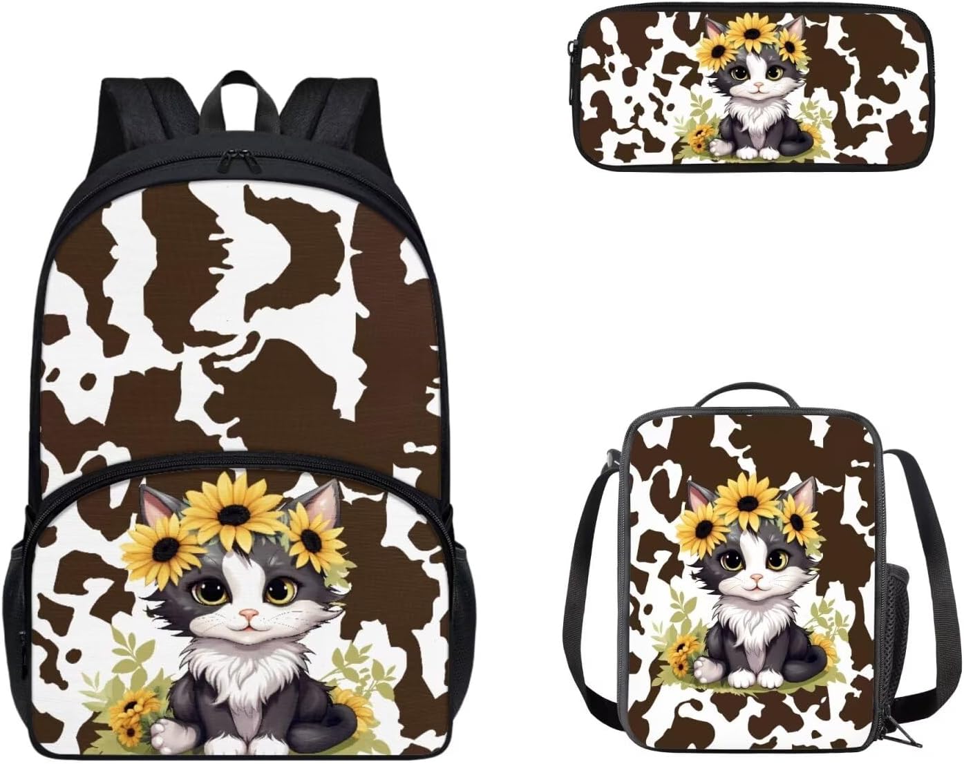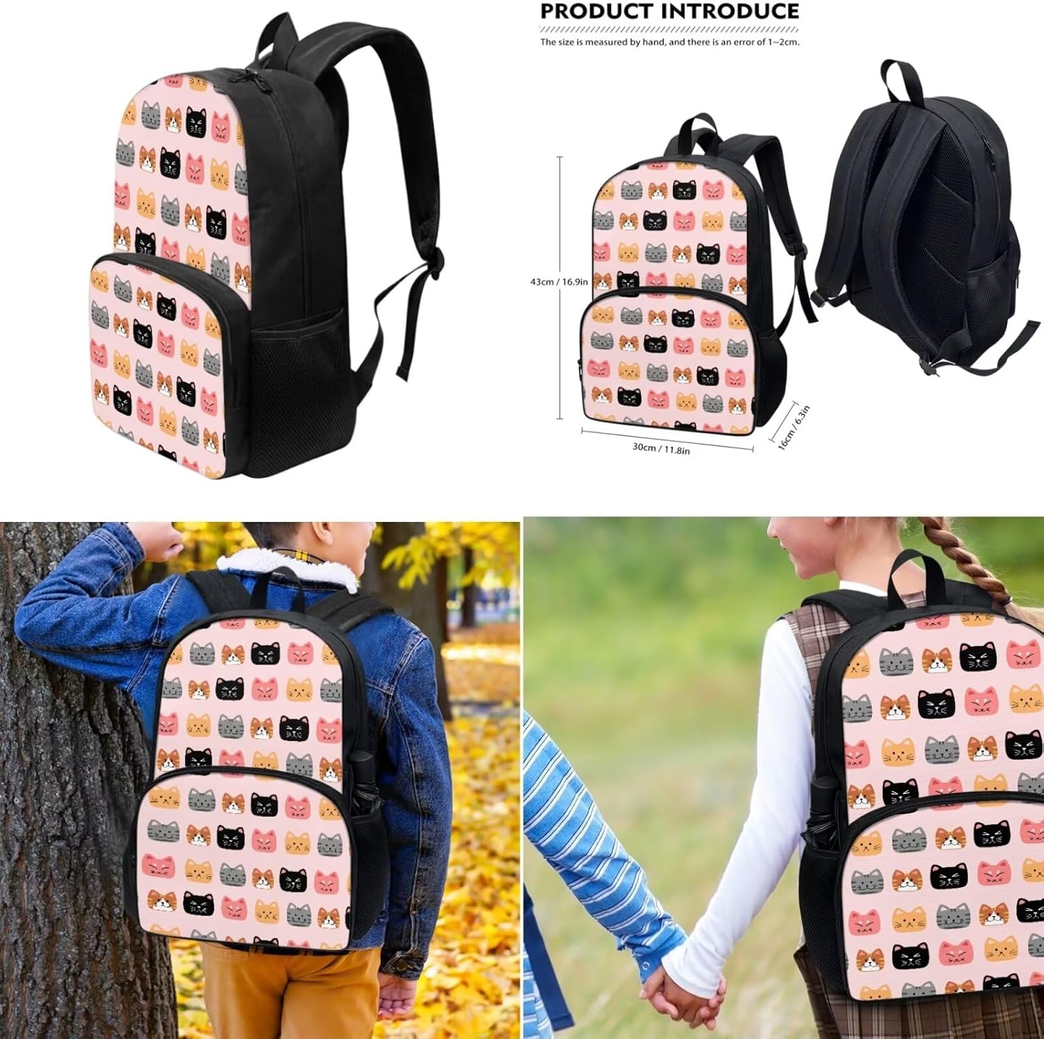 doginthehole Kawaii Cat Print Book Bag Aesthetic School Bags with Insulated Lunch Box & Pencil Case Pink School Backpack Set 3-in-1 Large Capacity Bookbags Travel Daypack Rucksack for Girls 10-12