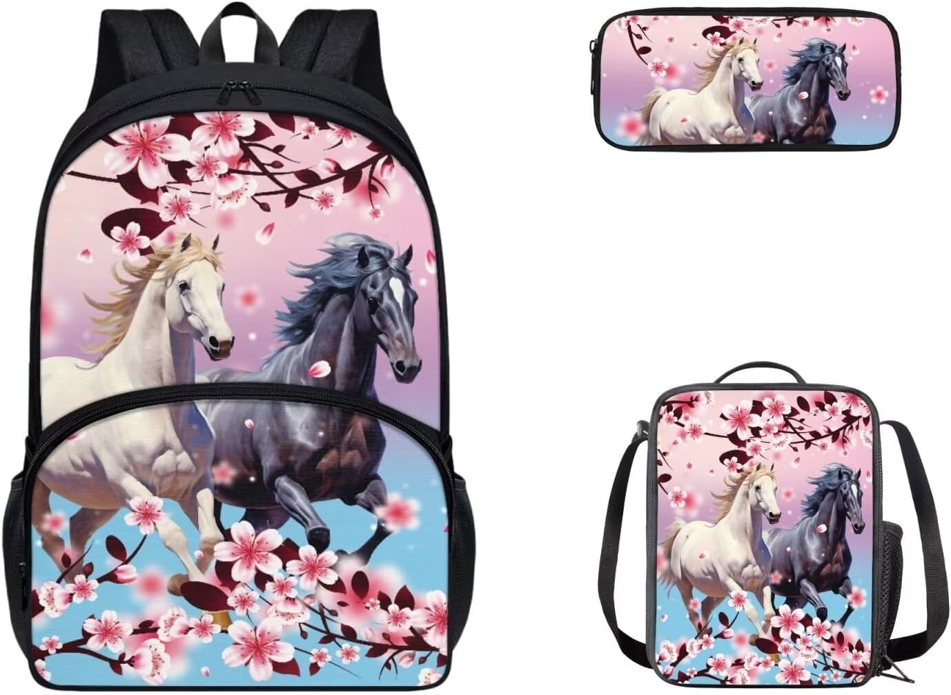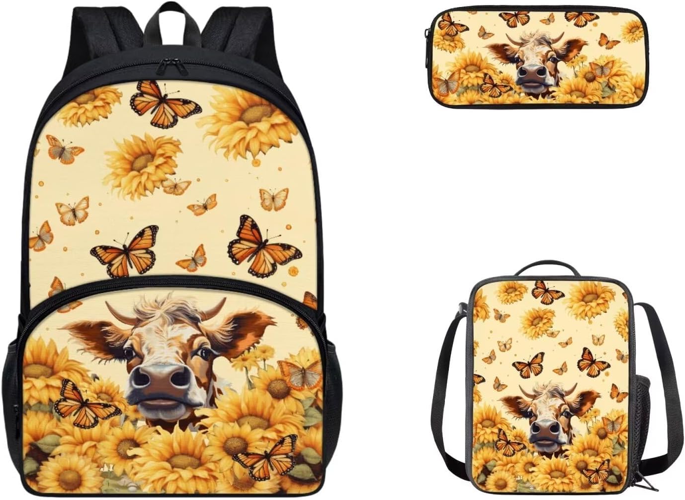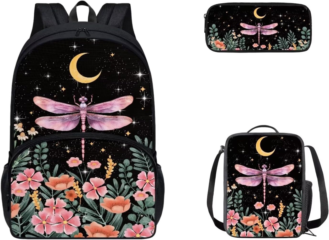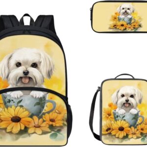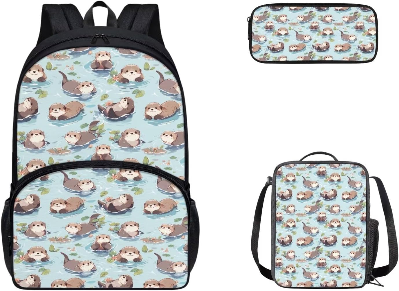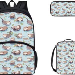doginthehole Kawaii Cat Print Book Bag Aesthetic School Bags with Insulated Lunch Box & Pencil Case Pink School Backpack Set 3-in-1 Large Capacity Bookbags Travel Daypack Rucksack for Girls 10-12