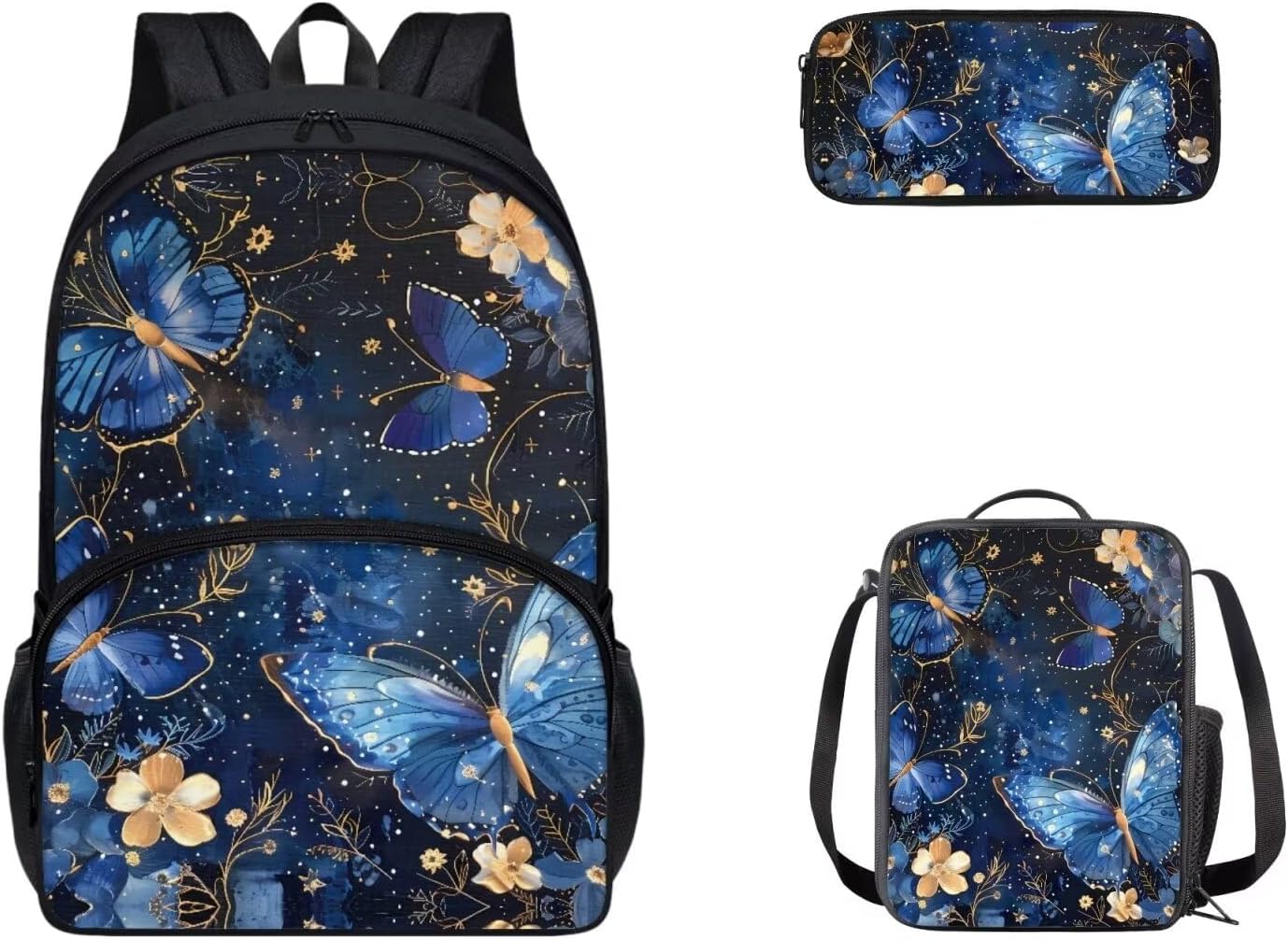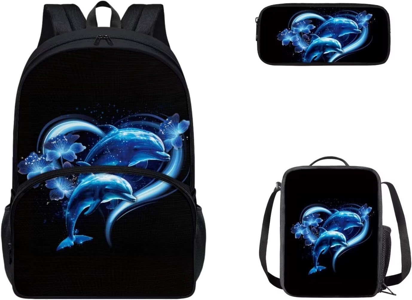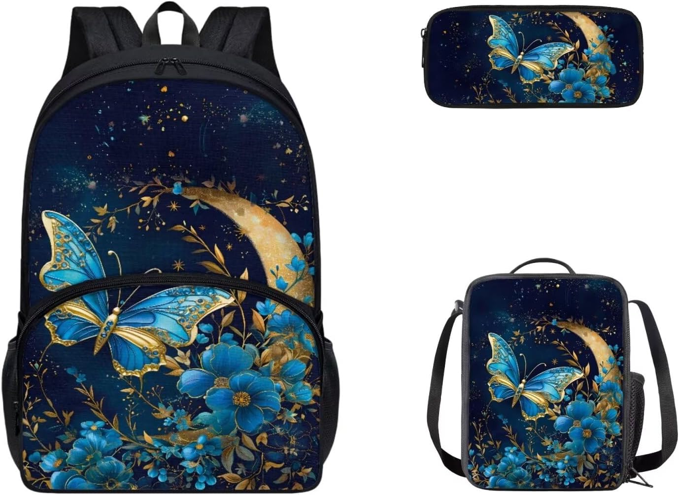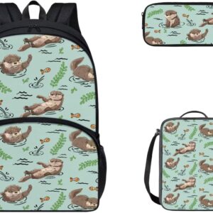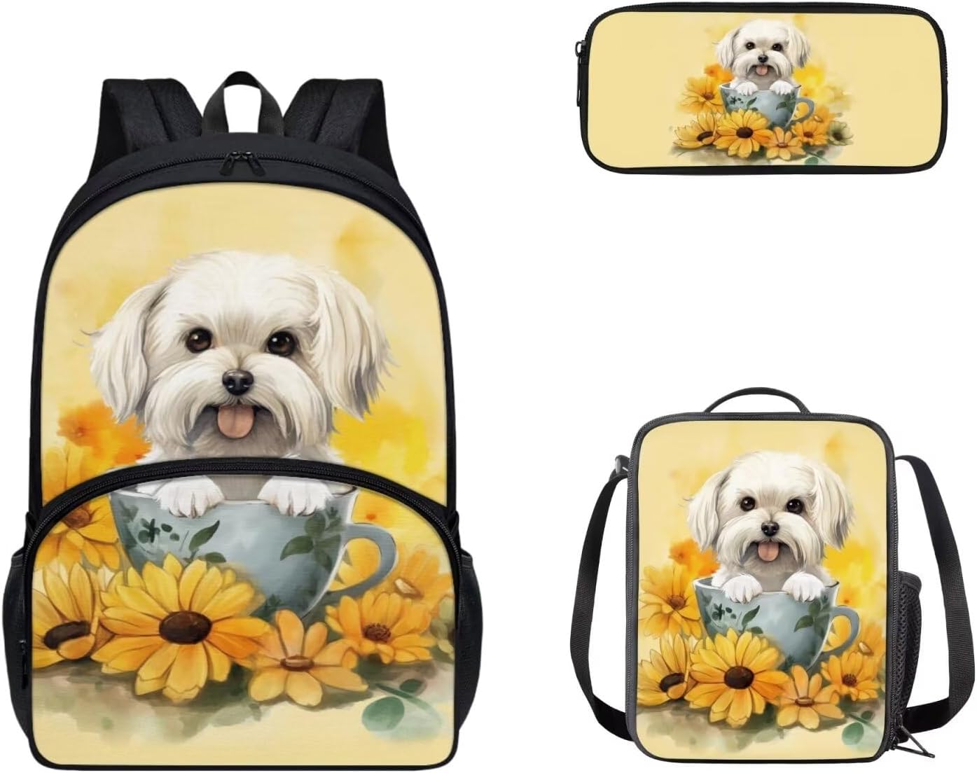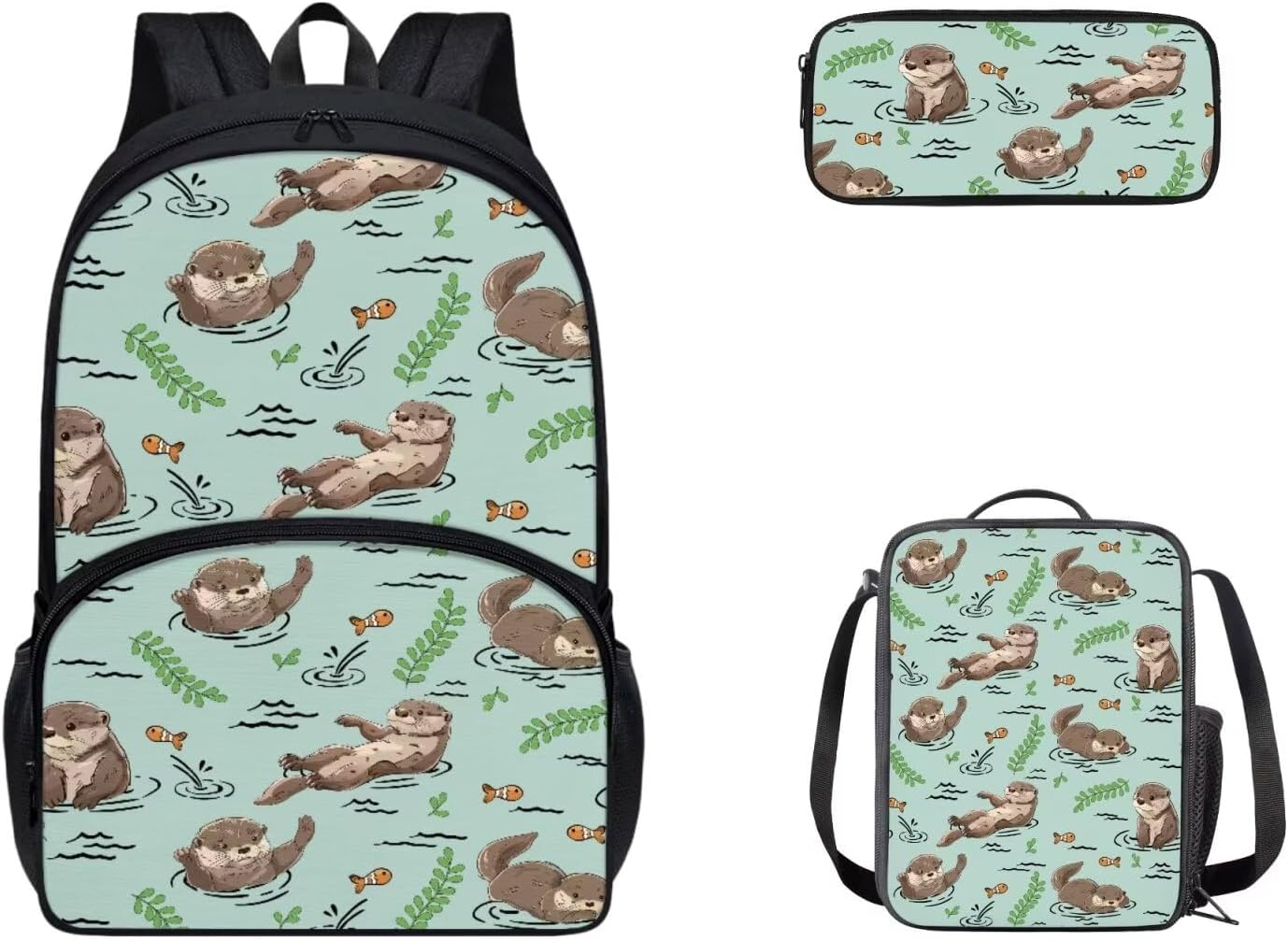 doginthehole Kawaii Cat Print Book Bag Aesthetic School Bags with Insulated Lunch Box & Pencil Case Pink School Backpack Set 3-in-1 Large Capacity Bookbags Travel Daypack Rucksack for Girls 10-12