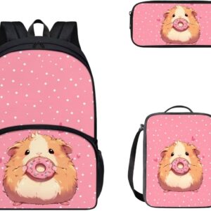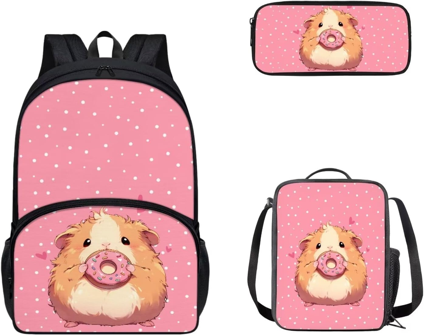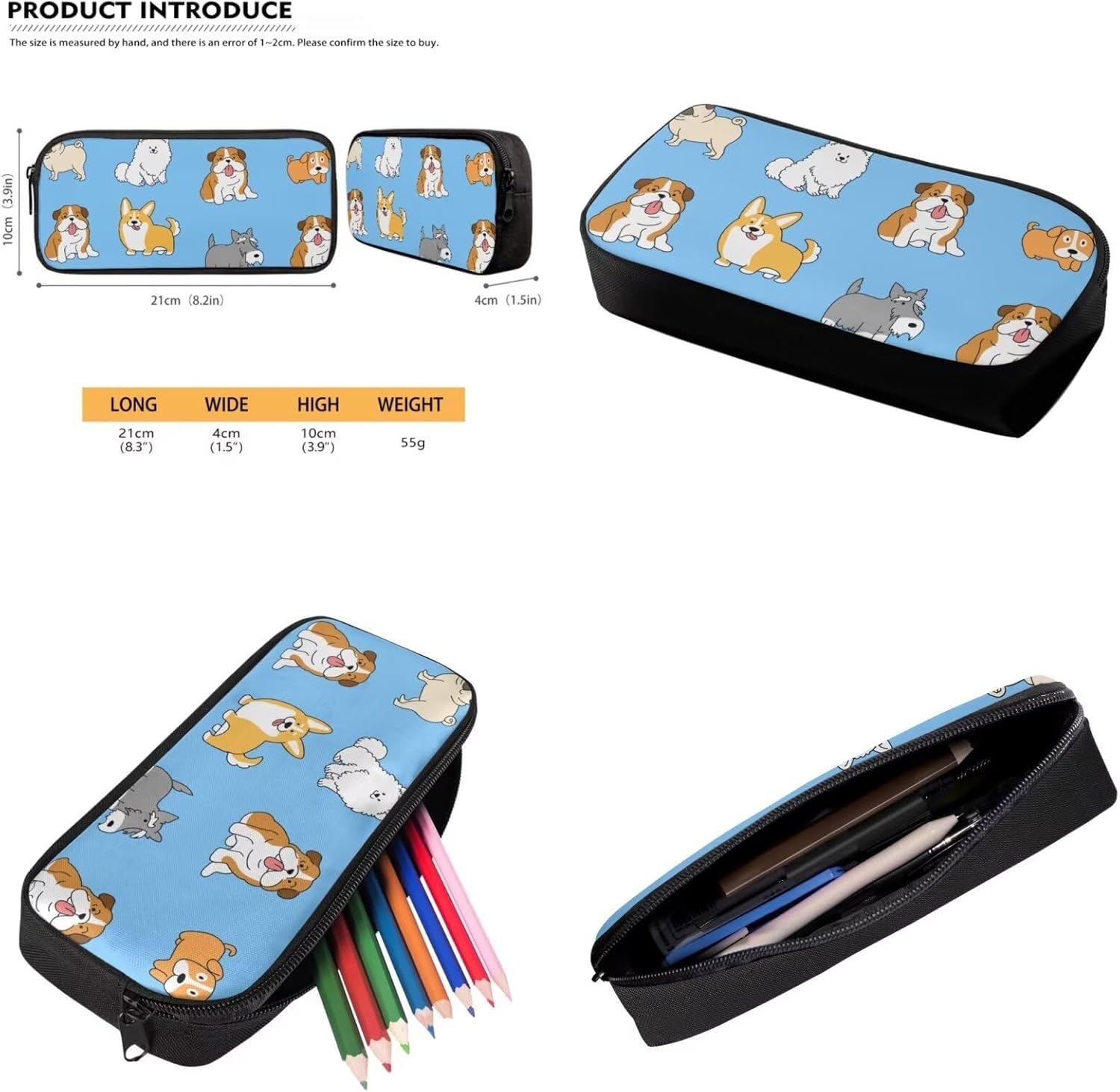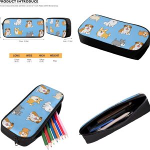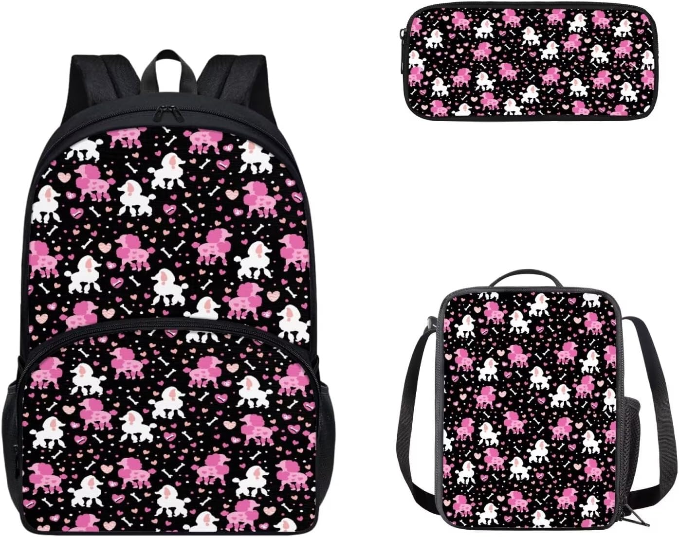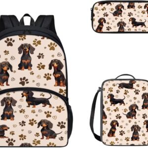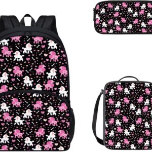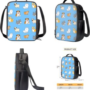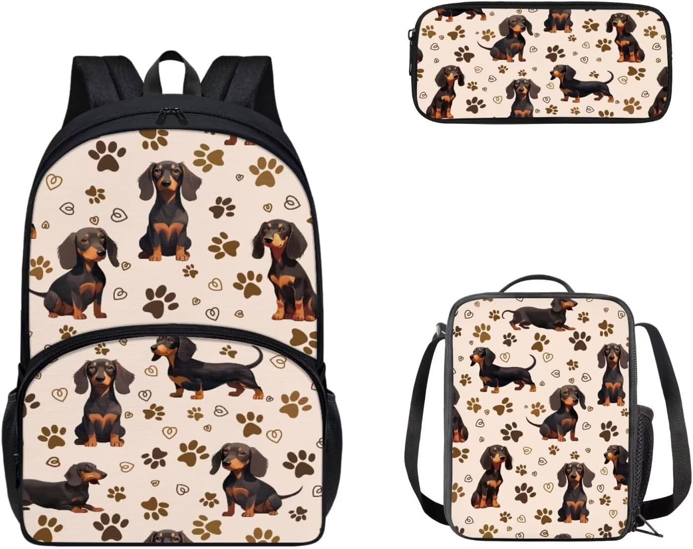 doginthehole School Backpack for Girls Boys 17inch School Bag Kawaii Dogs Pattern Bookbag 3 in 1 Set with Lunch Box and Pencil Bag Cute Animal Print