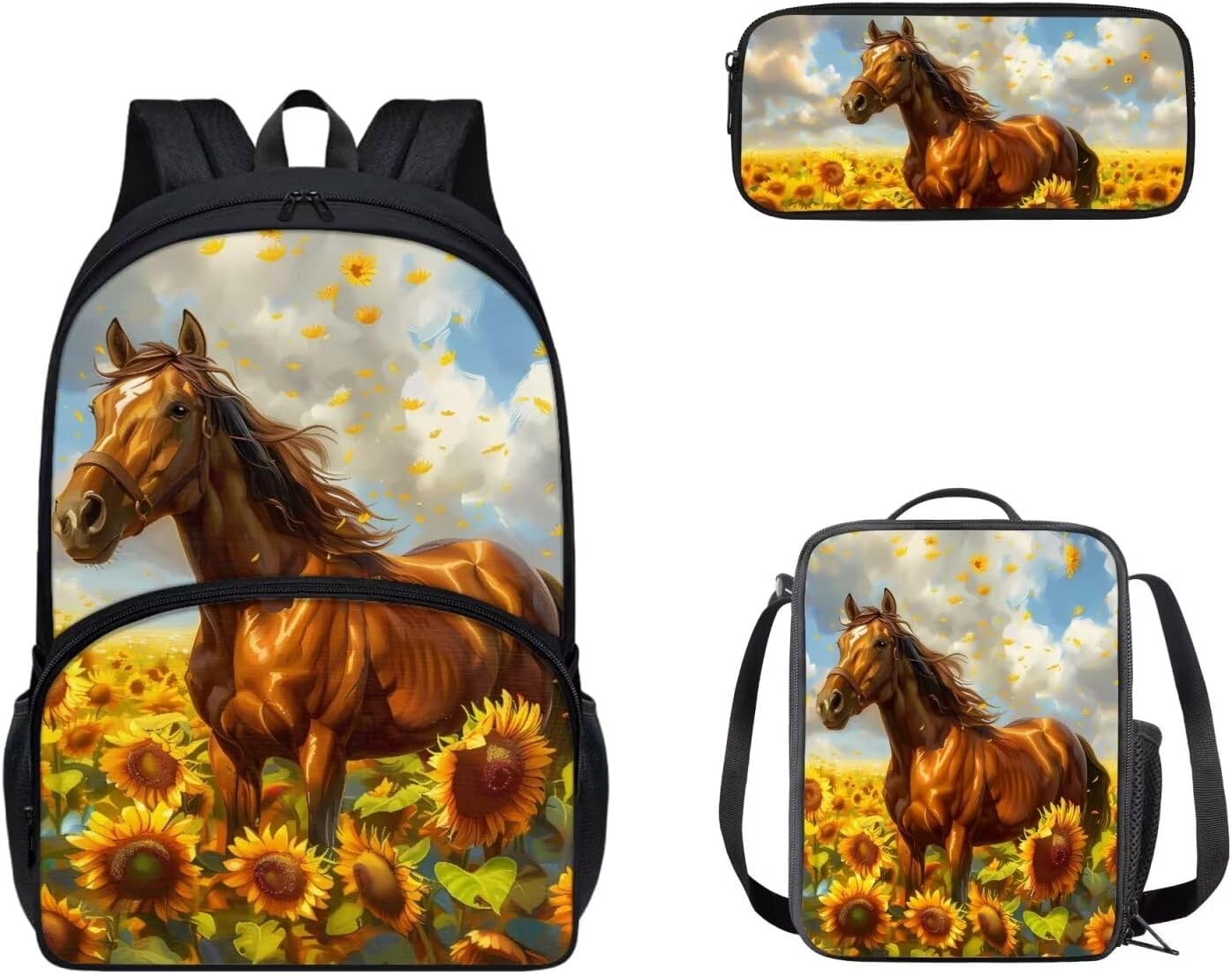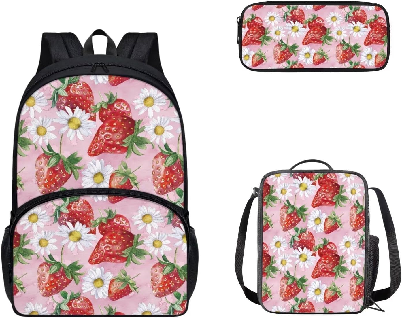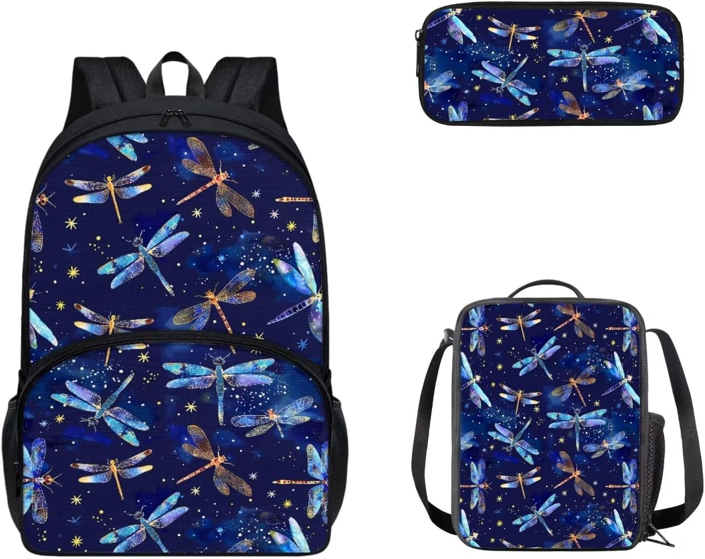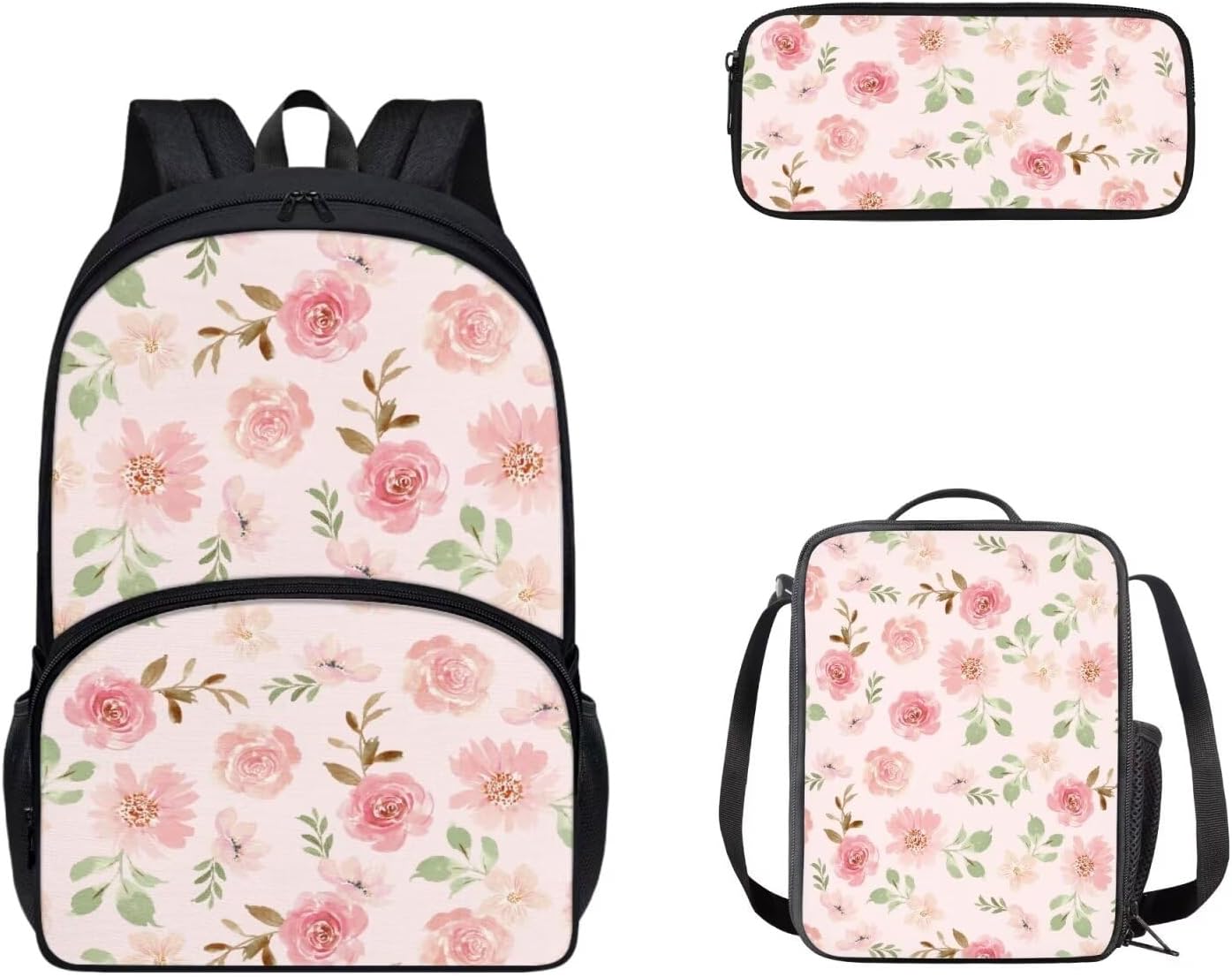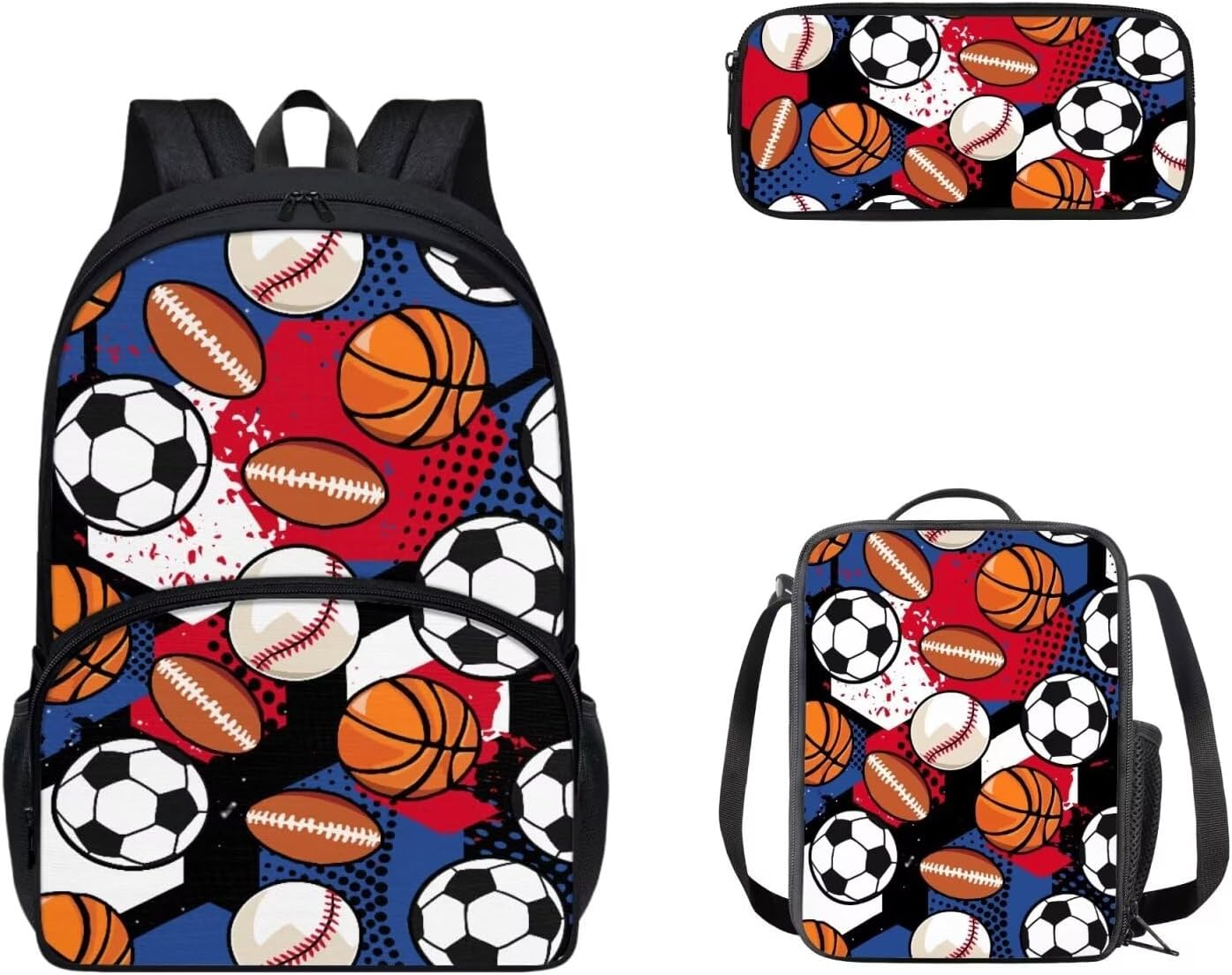 doginthehole School Backpack for Girls Boys 17inch School Bag Kawaii Dogs Pattern Bookbag 3 in 1 Set with Lunch Box and Pencil Bag Cute Animal Print