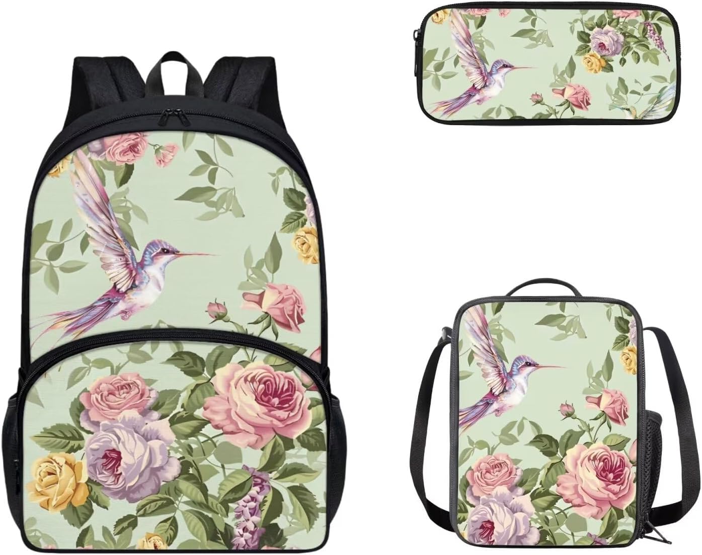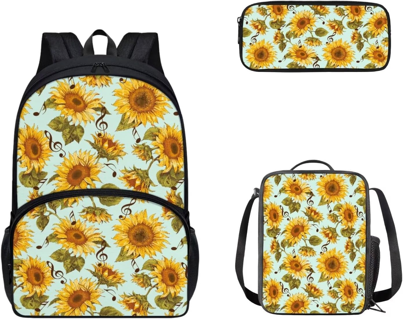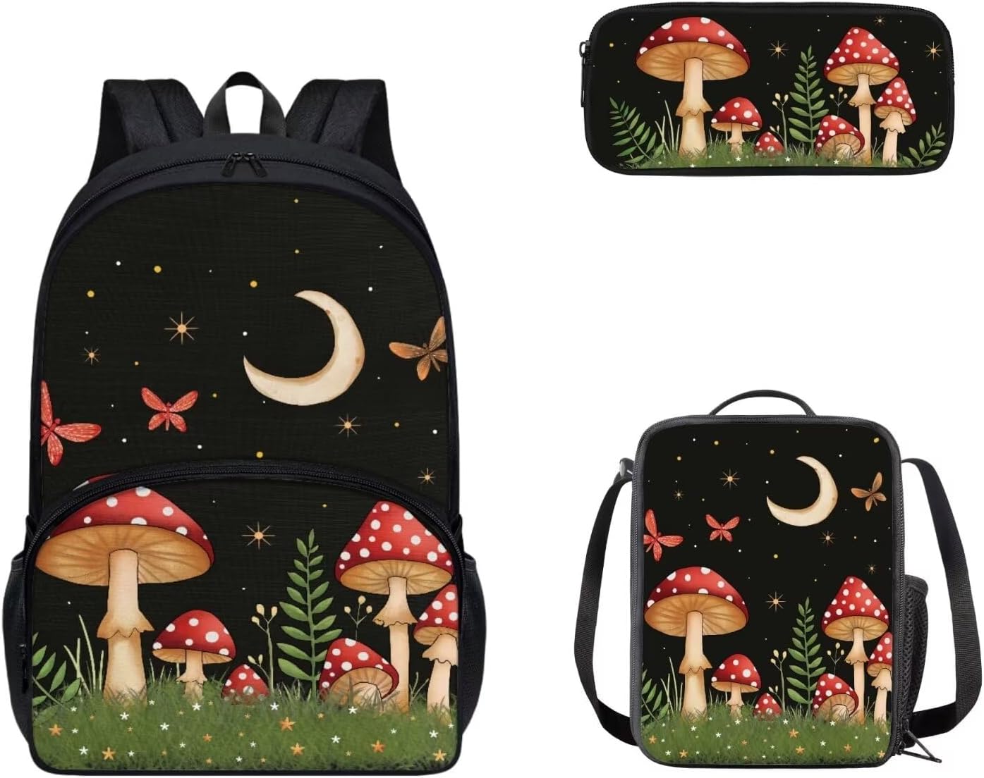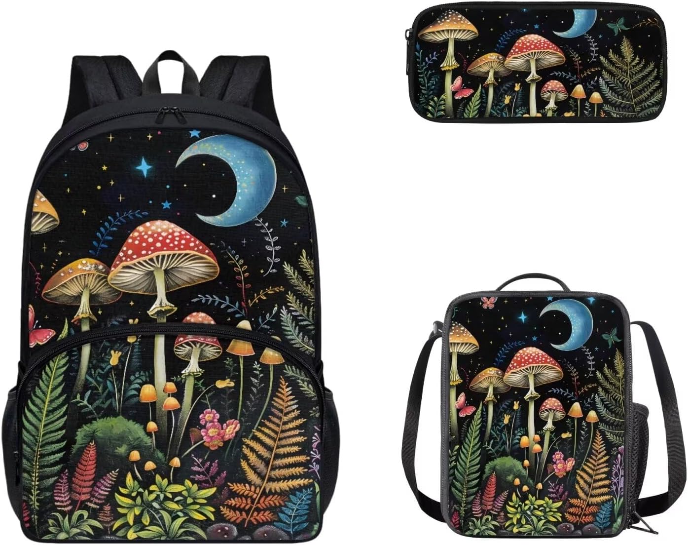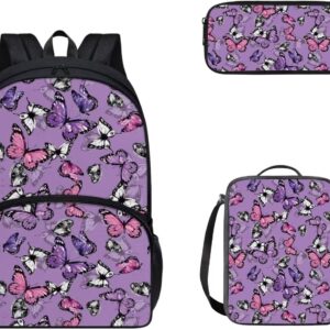 doginthehole School Backpack for Girls Boys 17inch School Bag Kawaii Dogs Pattern Bookbag 3 in 1 Set with Lunch Box and Pencil Bag Cute Animal Print