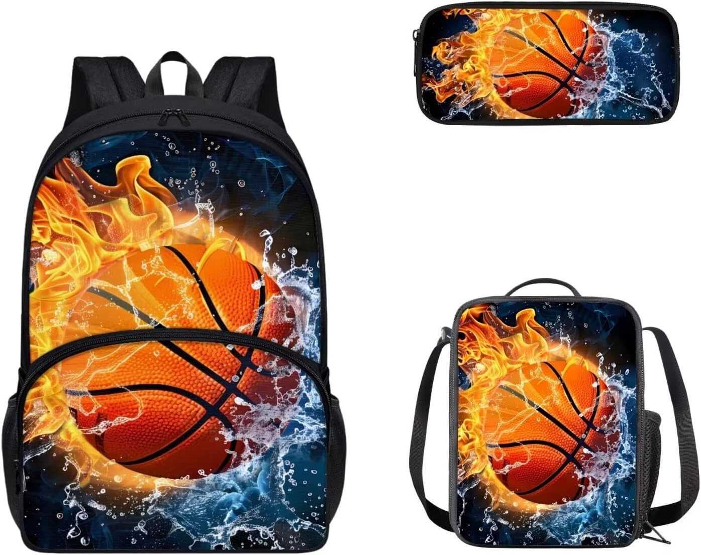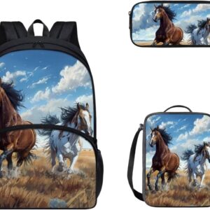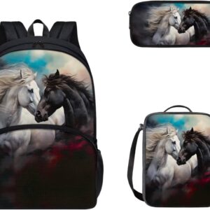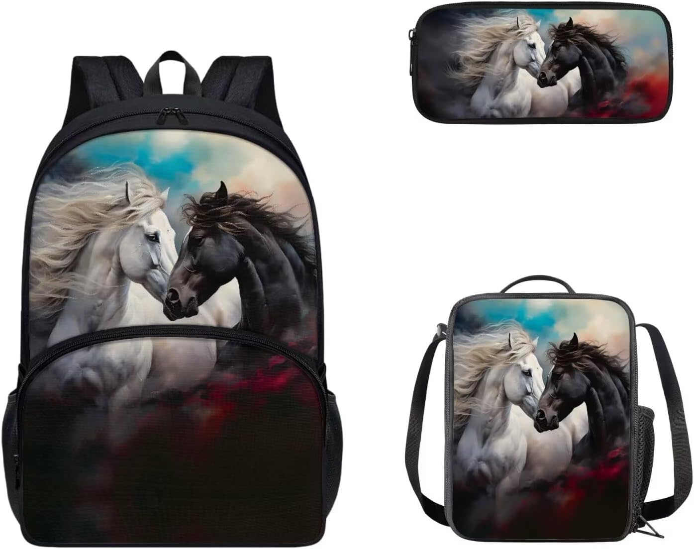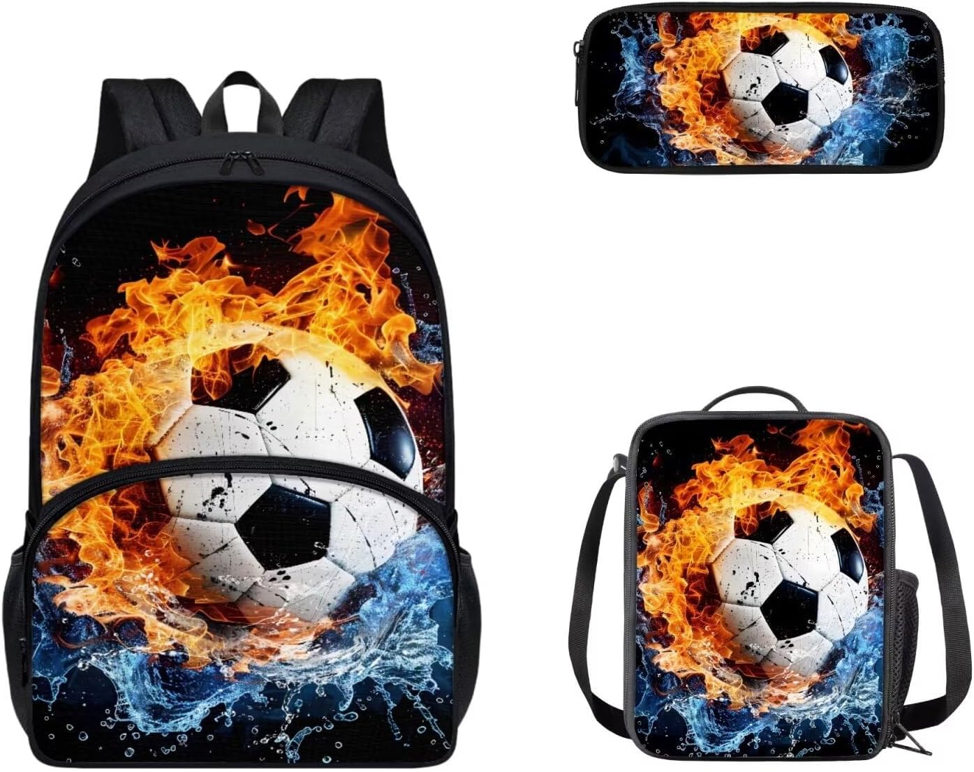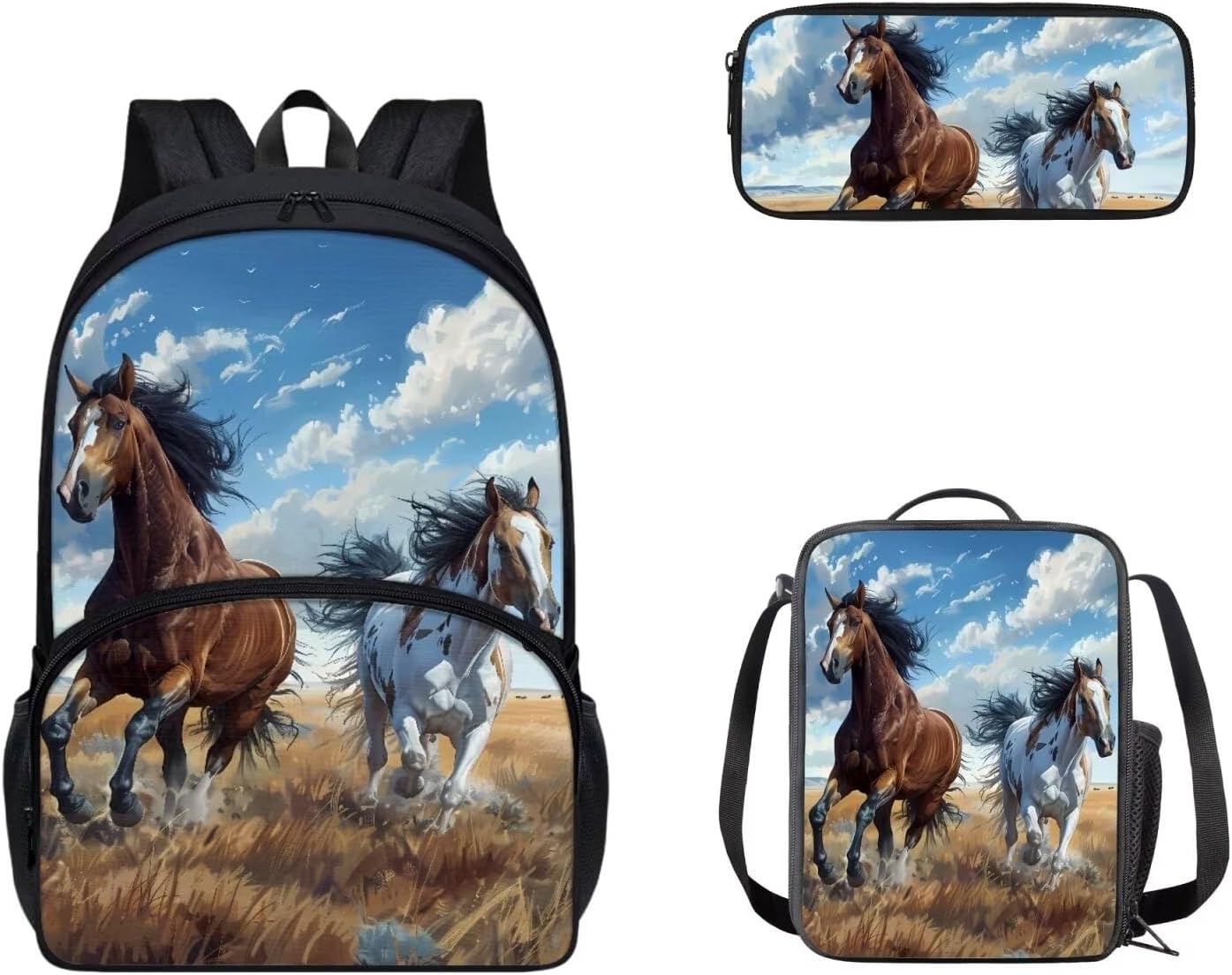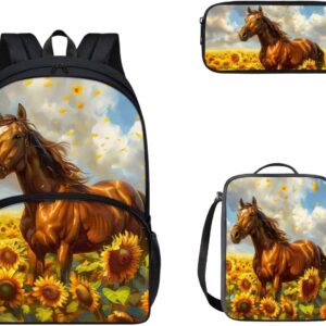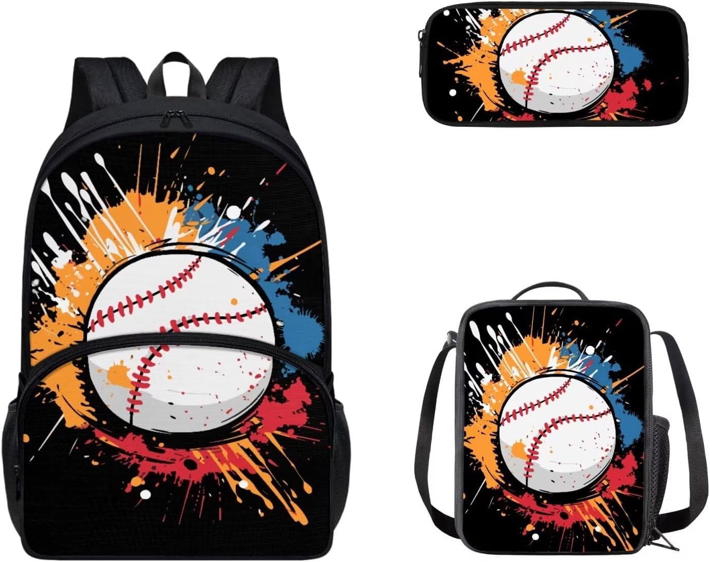 doginthehole School Backpack for Girls Boys 17inch School Bag Kawaii Dogs Pattern Bookbag 3 in 1 Set with Lunch Box and Pencil Bag Cute Animal Print