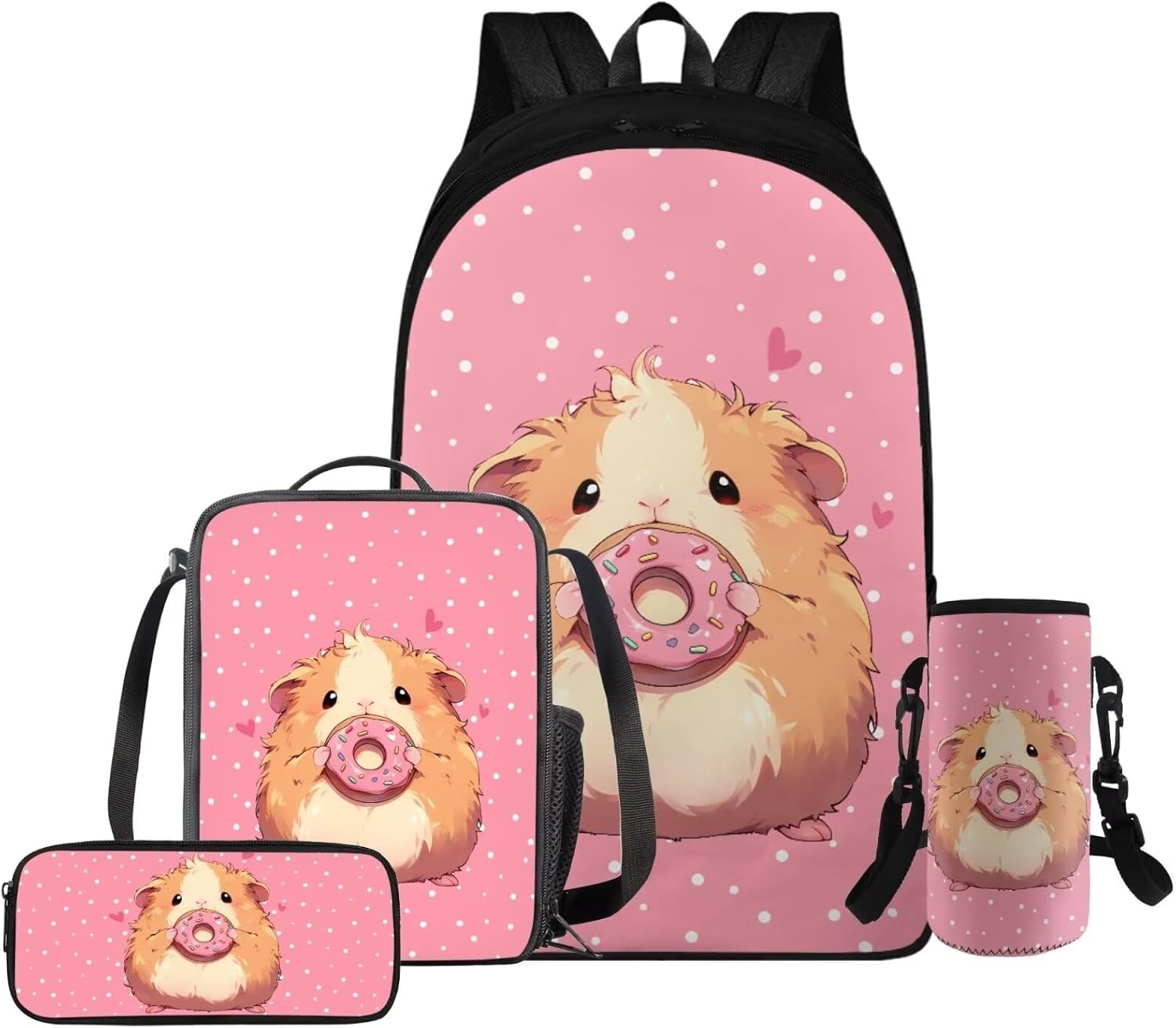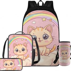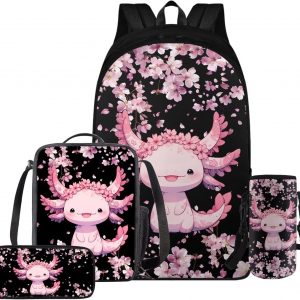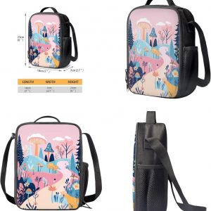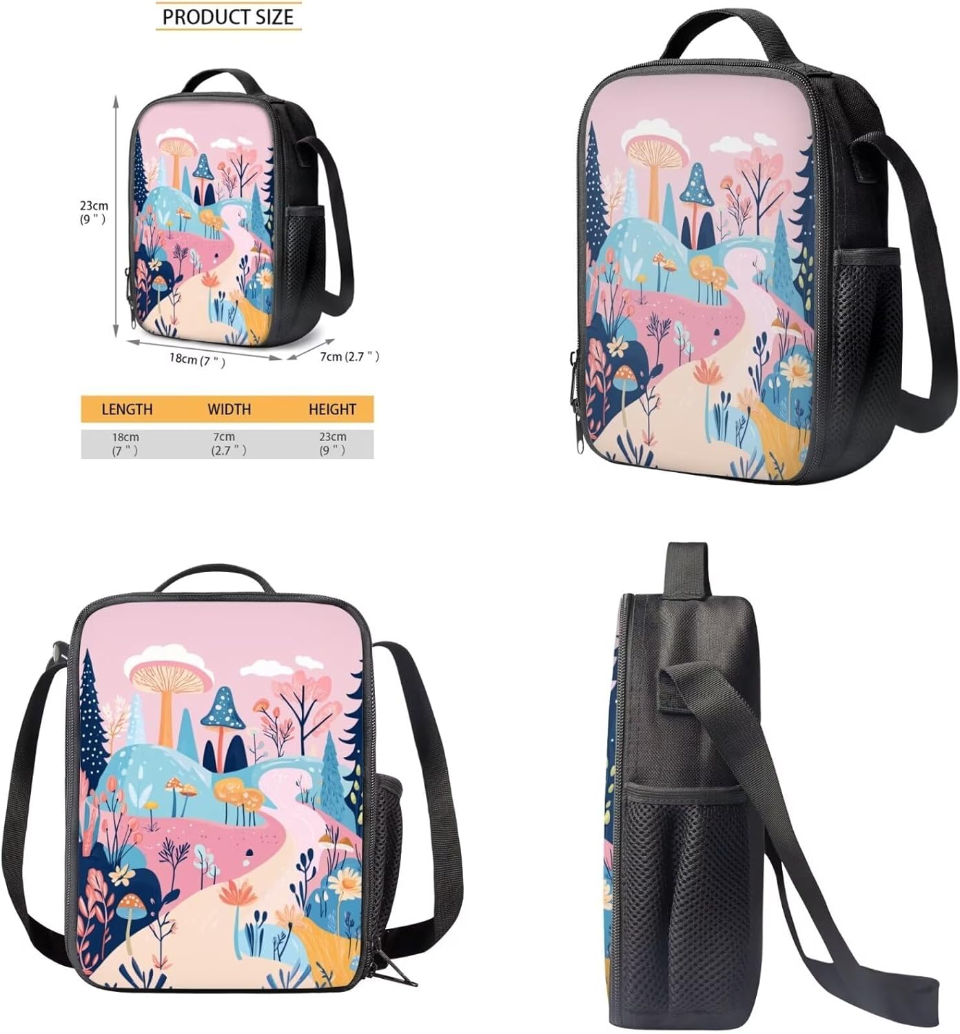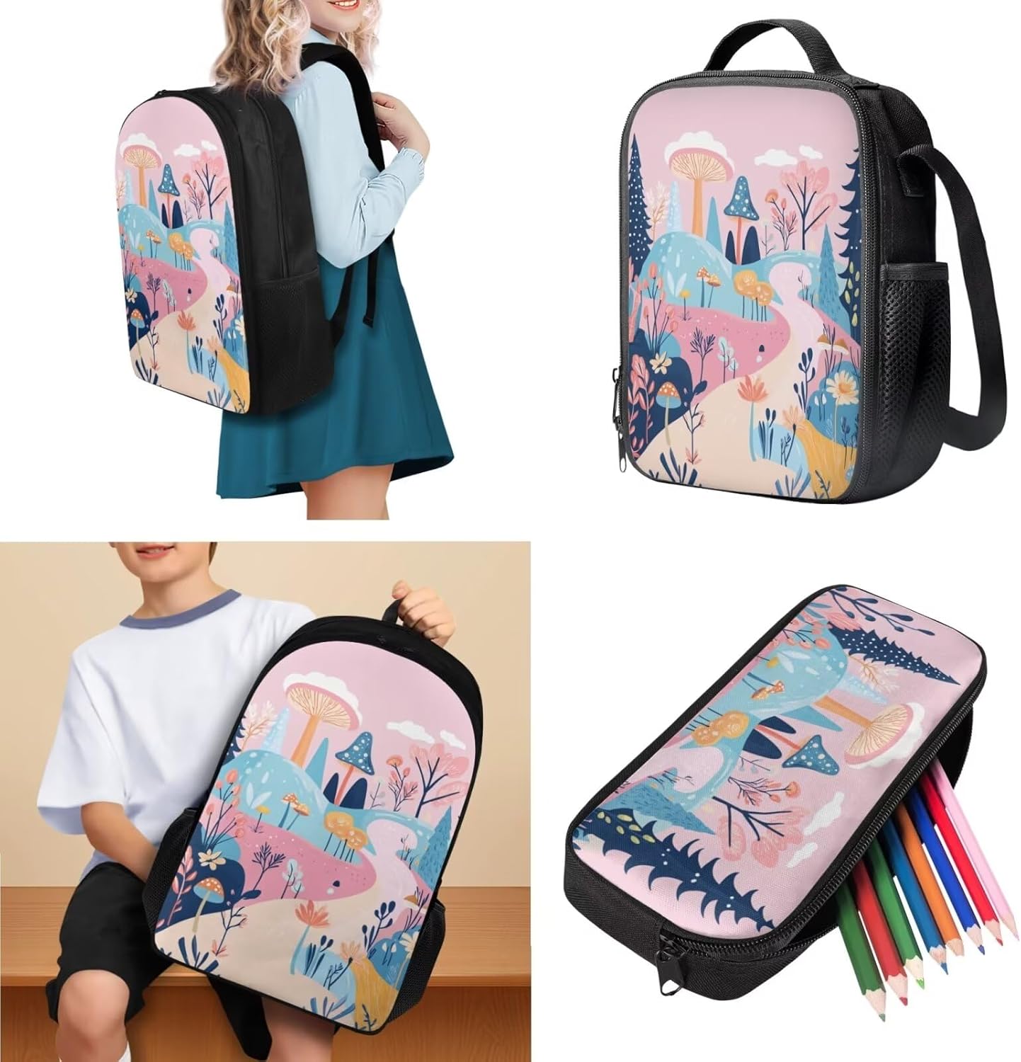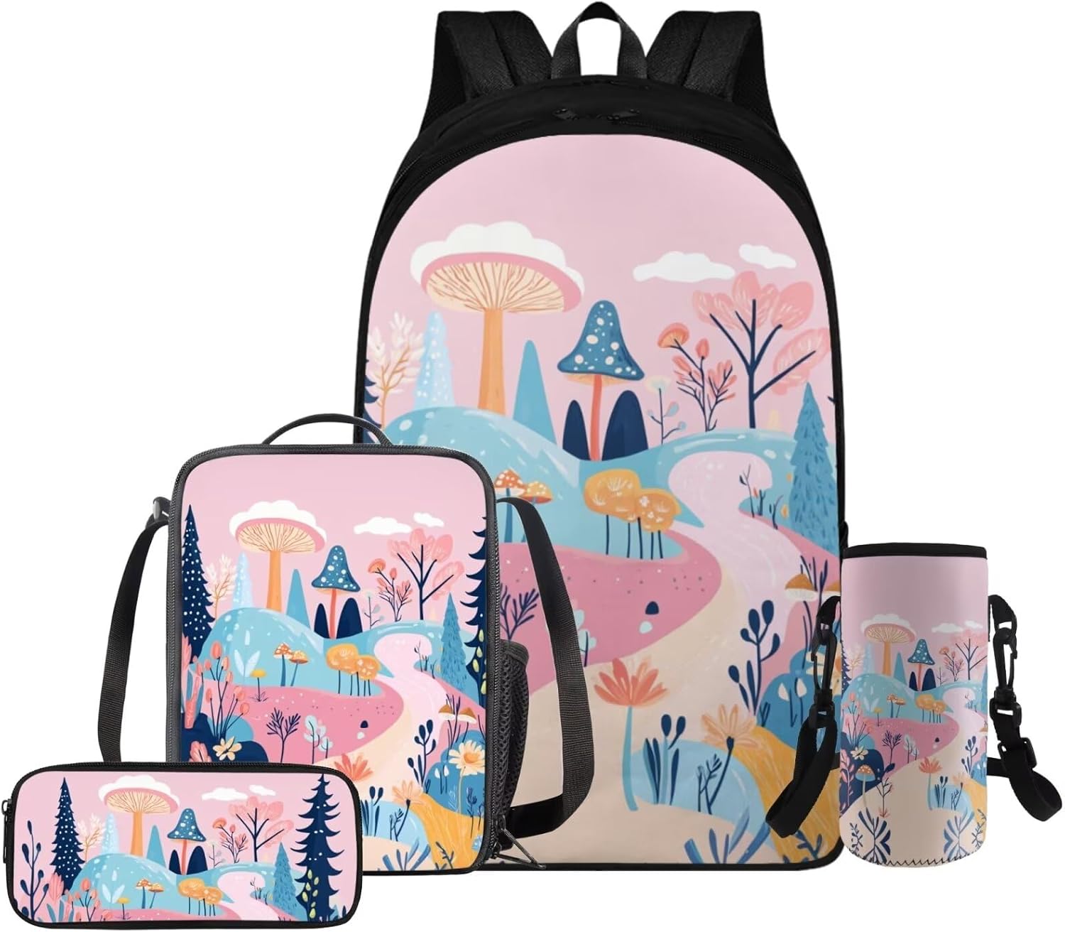 FOR U DESIGNS Cute Mushroom School Bag Set for Girls Kawaii Kindergarten Backpacks 4 Piece Large Capacity Bookbag Set with Lunch Box 4th Grade Travel Daypack