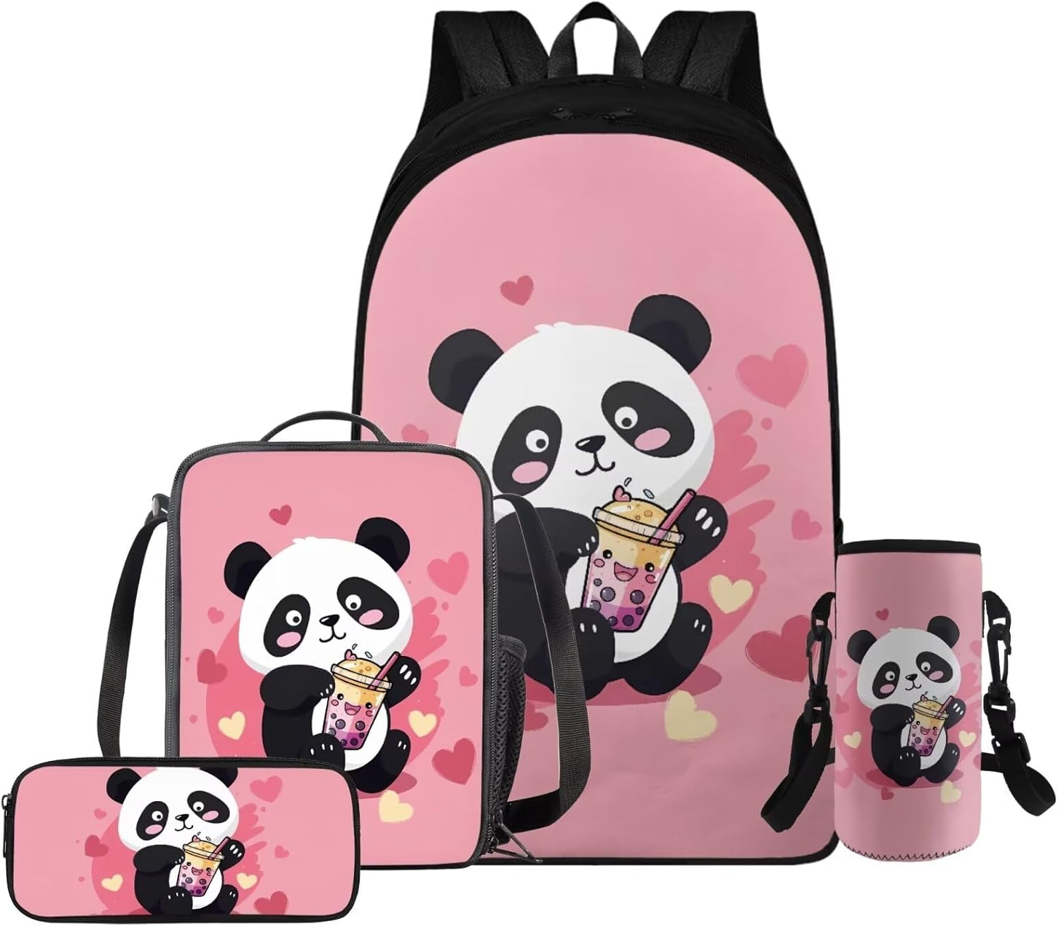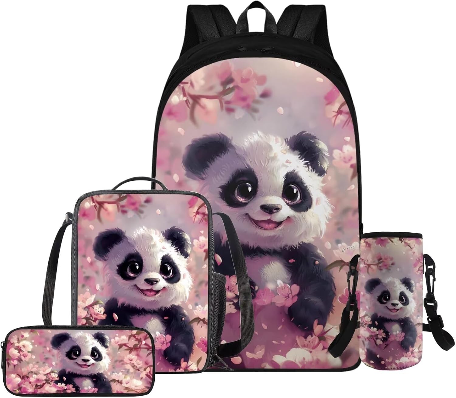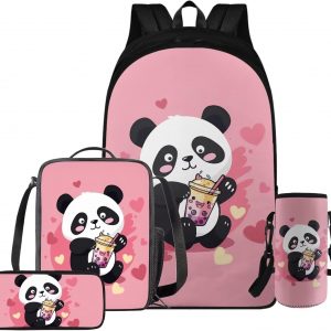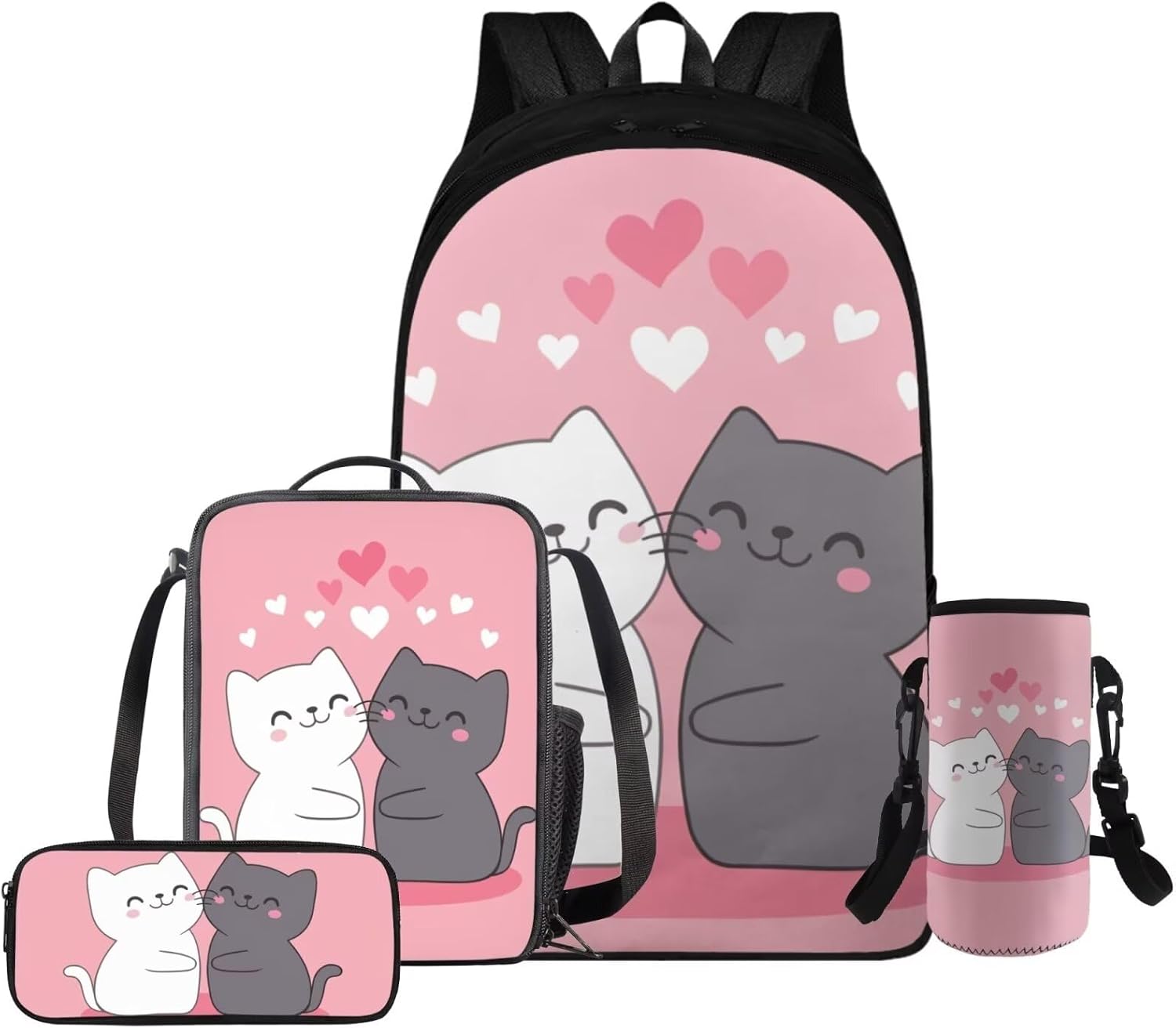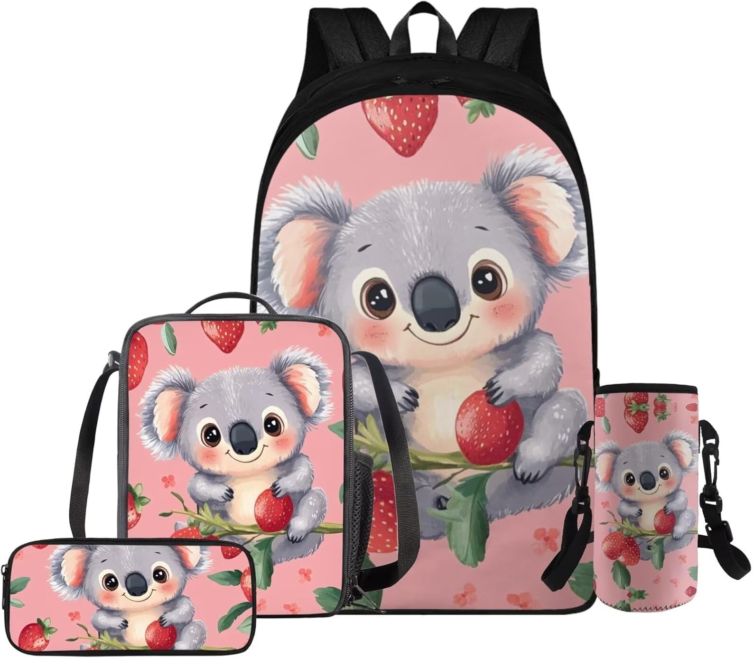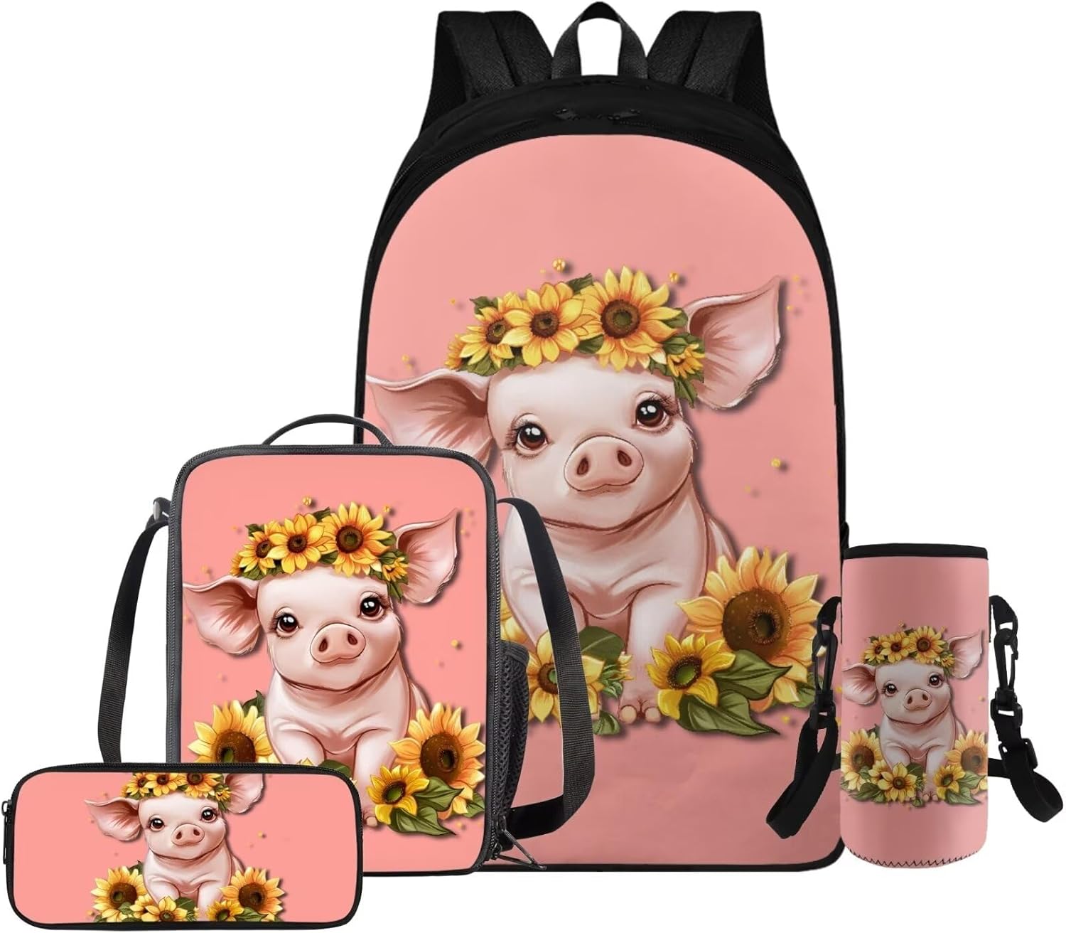 FOR U DESIGNS Cute Mushroom School Bag Set for Girls Kawaii Kindergarten Backpacks 4 Piece Large Capacity Bookbag Set with Lunch Box 4th Grade Travel Daypack