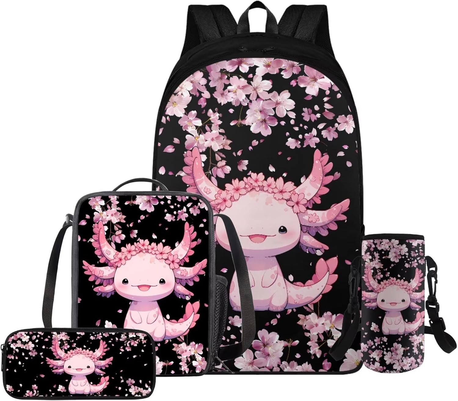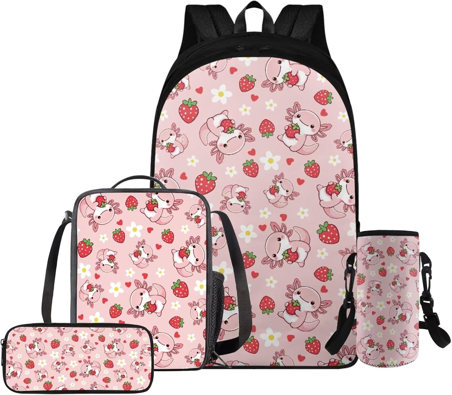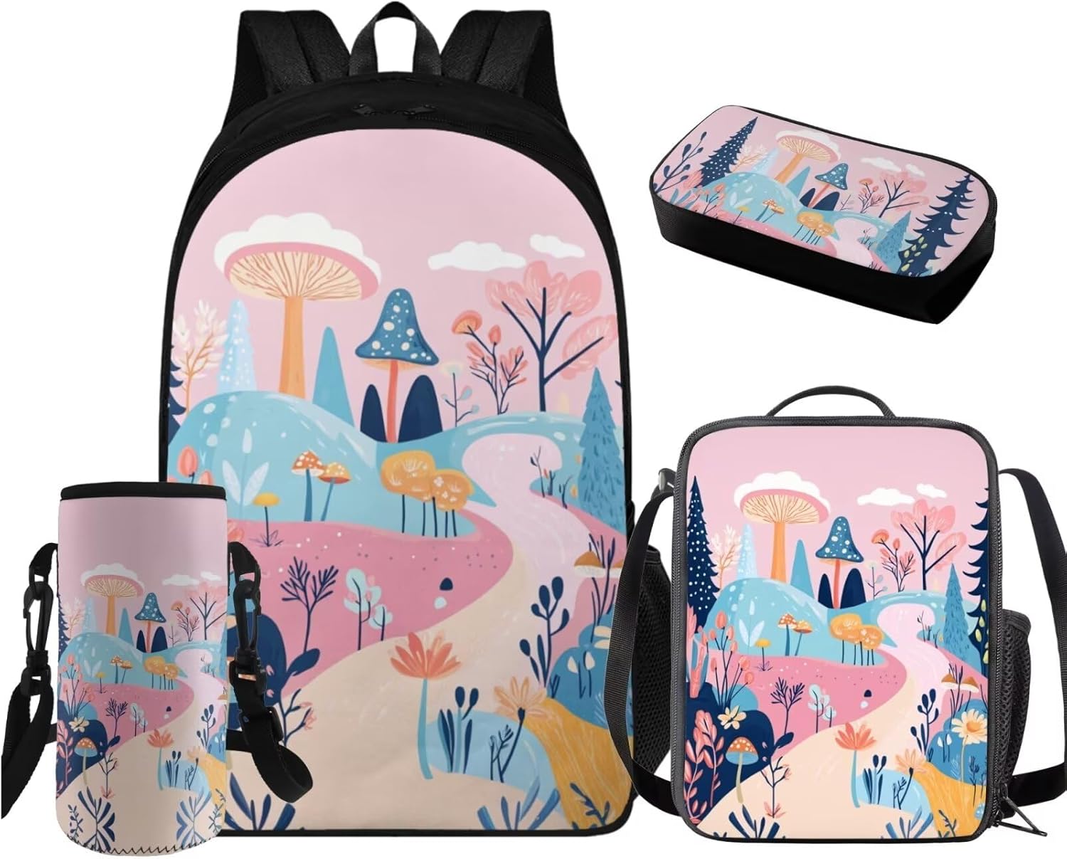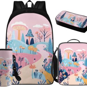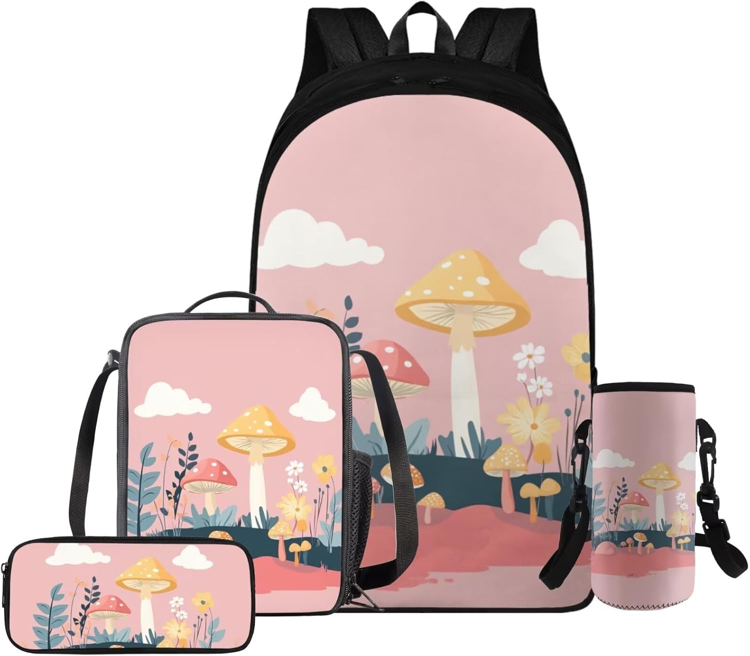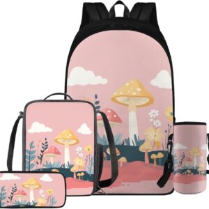 FOR U DESIGNS Cute Mushroom School Bag Set for Girls Kawaii Kindergarten Backpacks 4 Piece Large Capacity Bookbag Set with Lunch Box 4th Grade Travel Daypack quantity