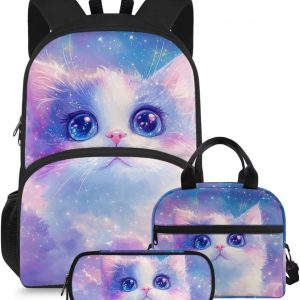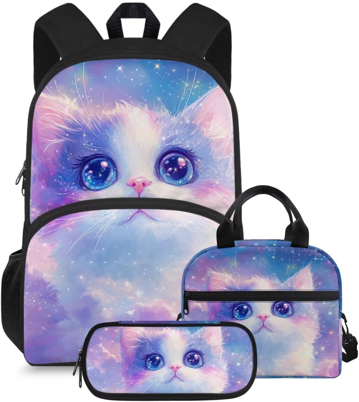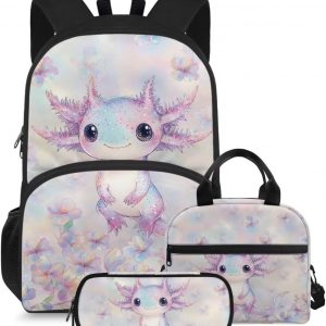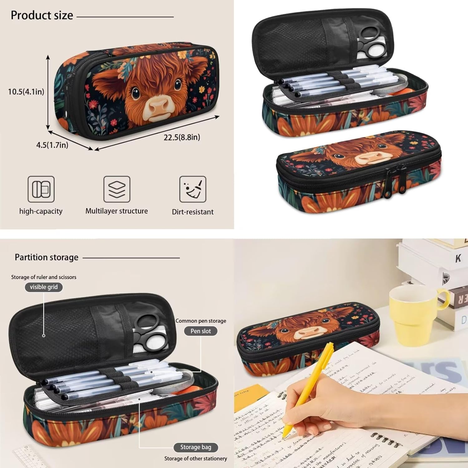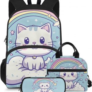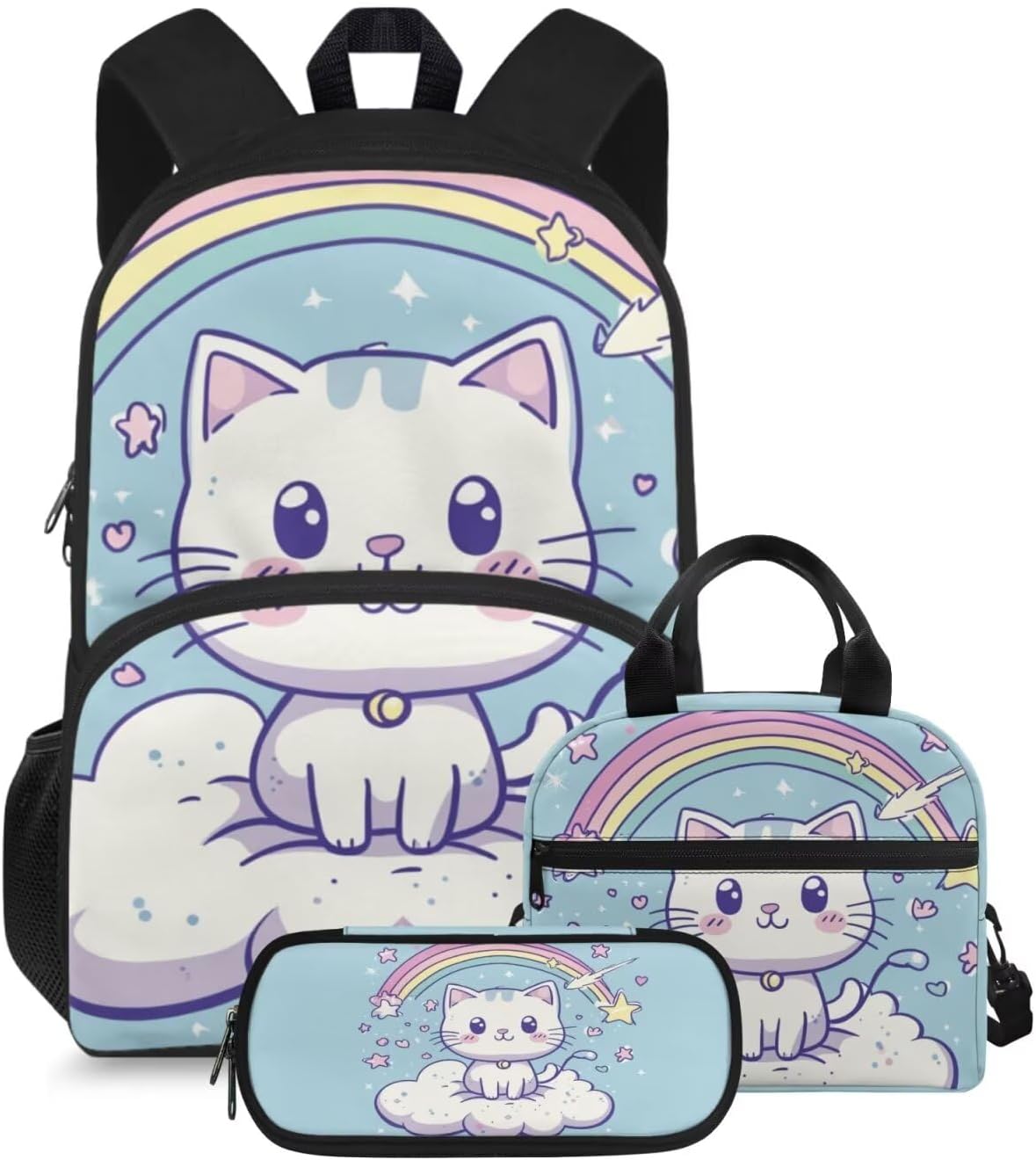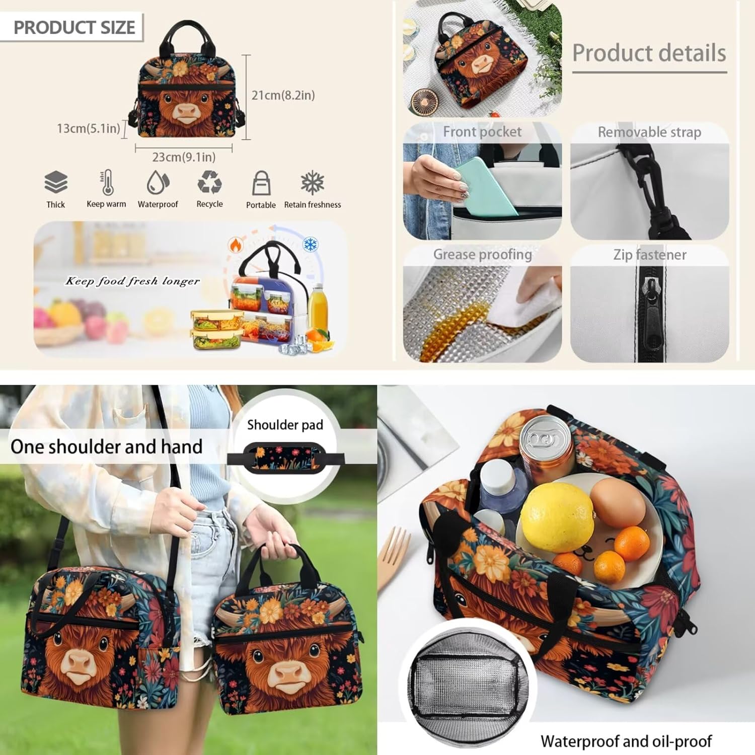 FOR U DESIGNS Girls Highland Cow School Backpack Set 15 Inch Lightweight Cartoon Bookbag with Lunchbox for Ages 6-8 Kawaii Kindergarten School Bag 2nd Grade
