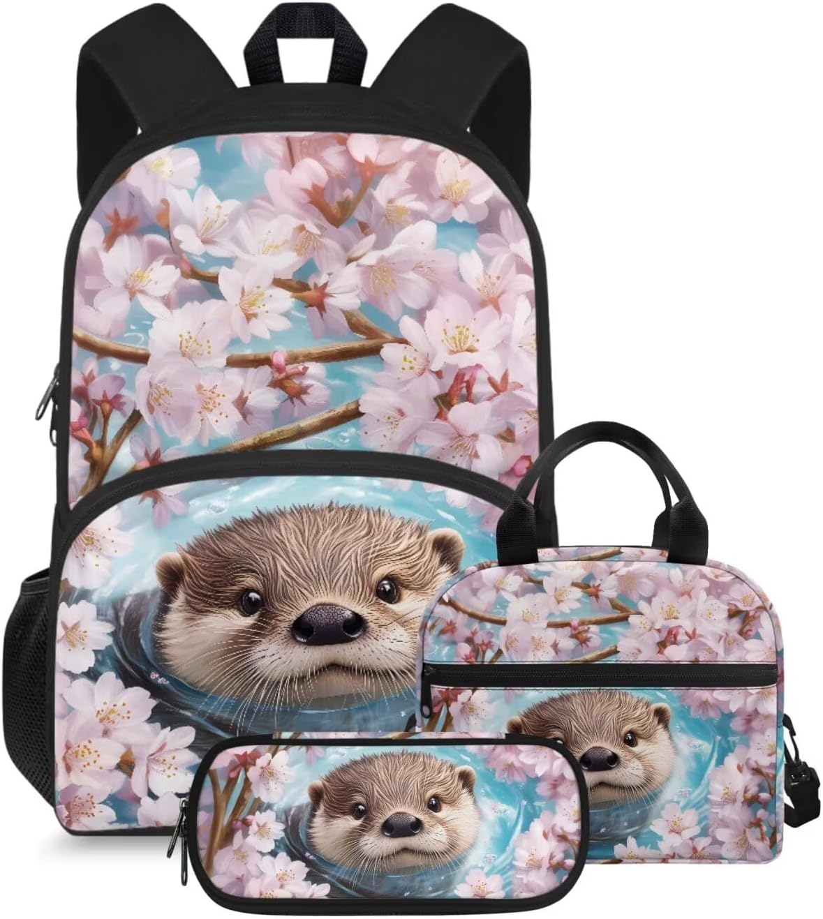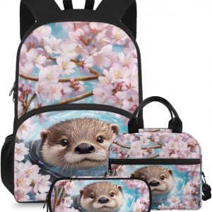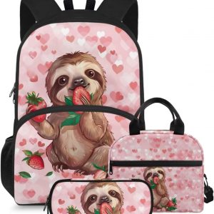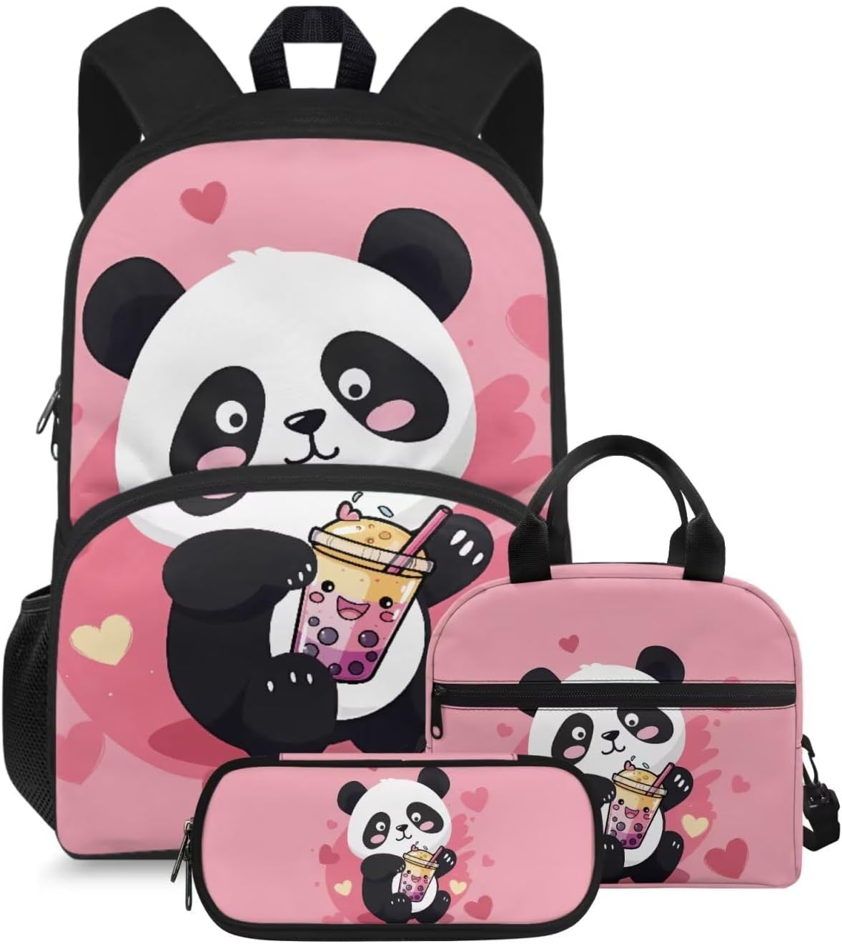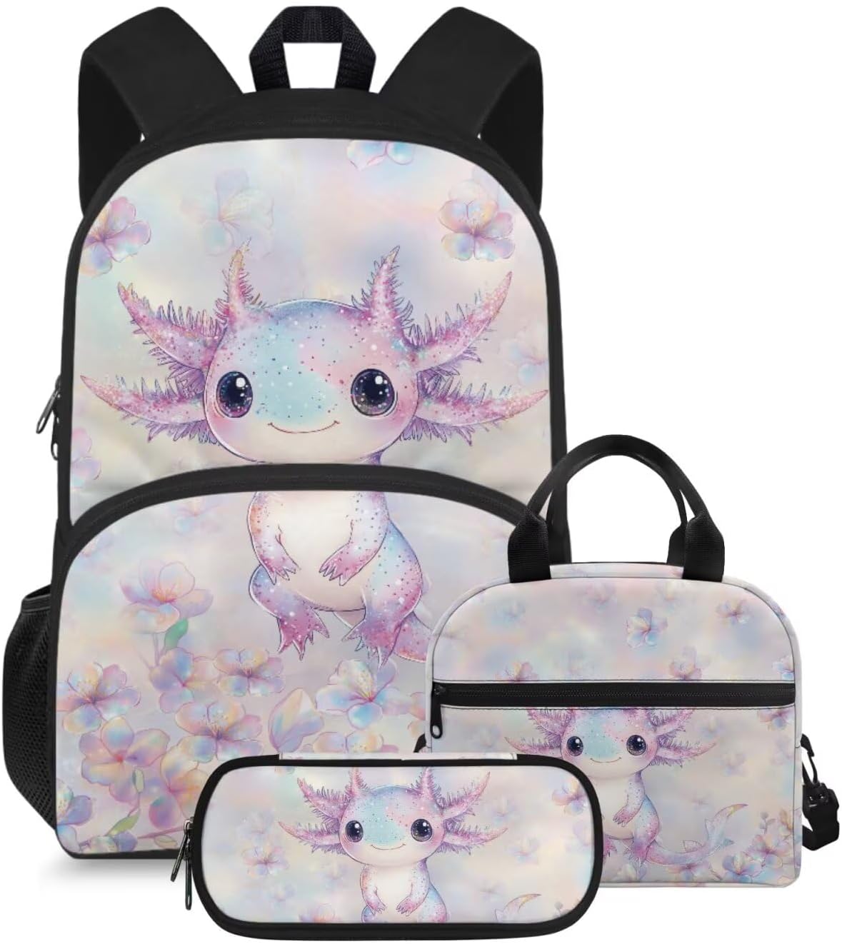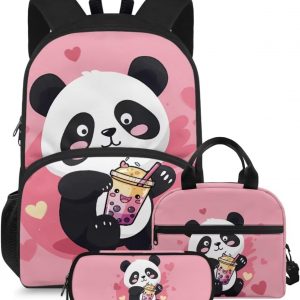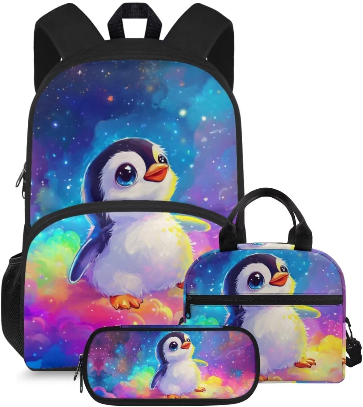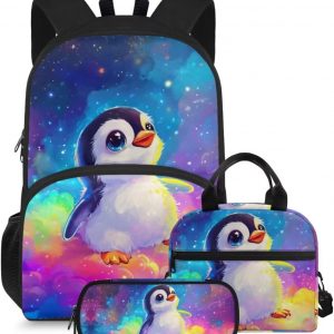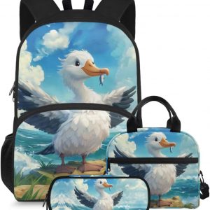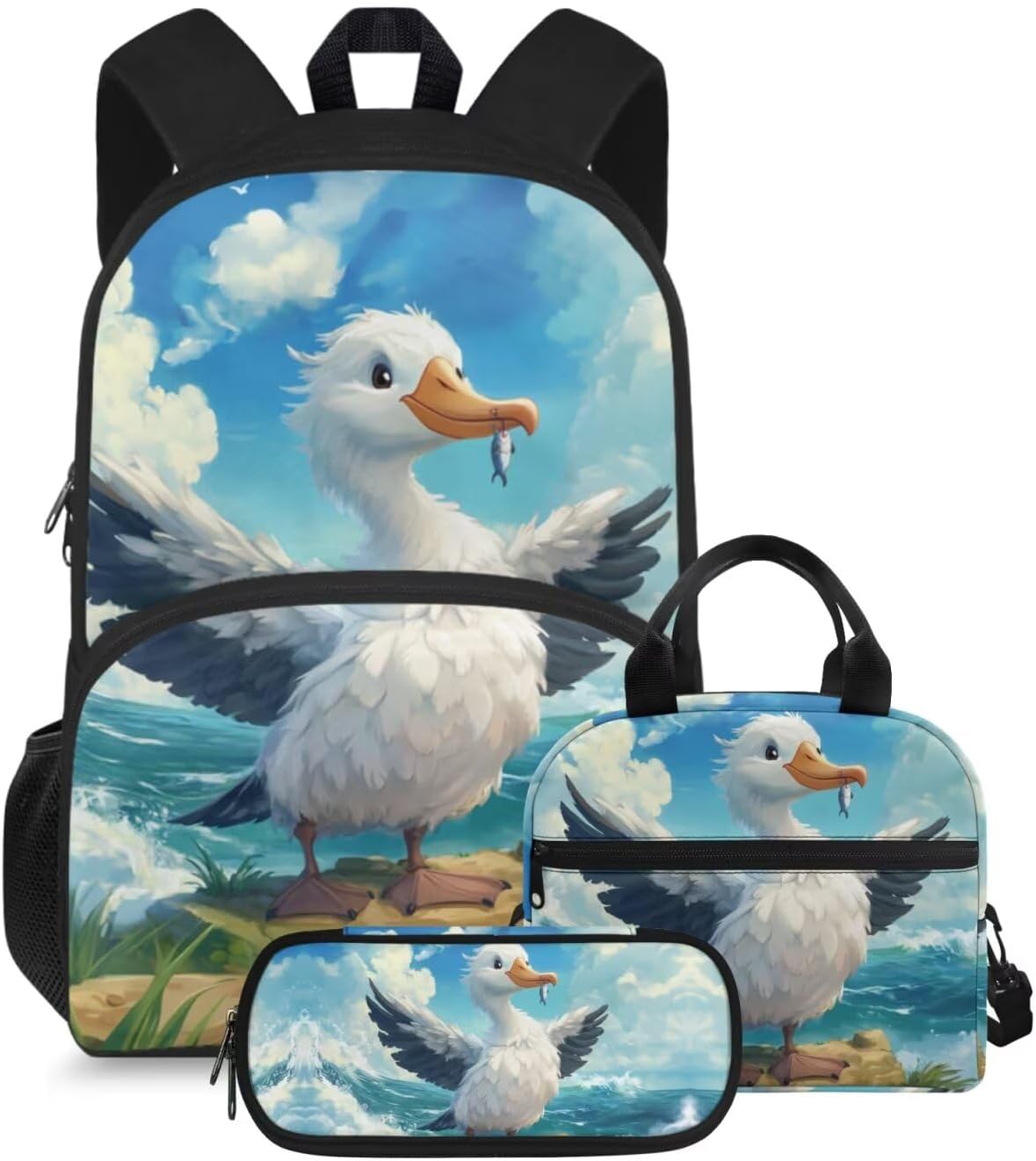 FOR U DESIGNS Girls Highland Cow School Backpack Set 15 Inch Lightweight Cartoon Bookbag with Lunchbox for Ages 6-8 Kawaii Kindergarten School Bag 2nd Grade