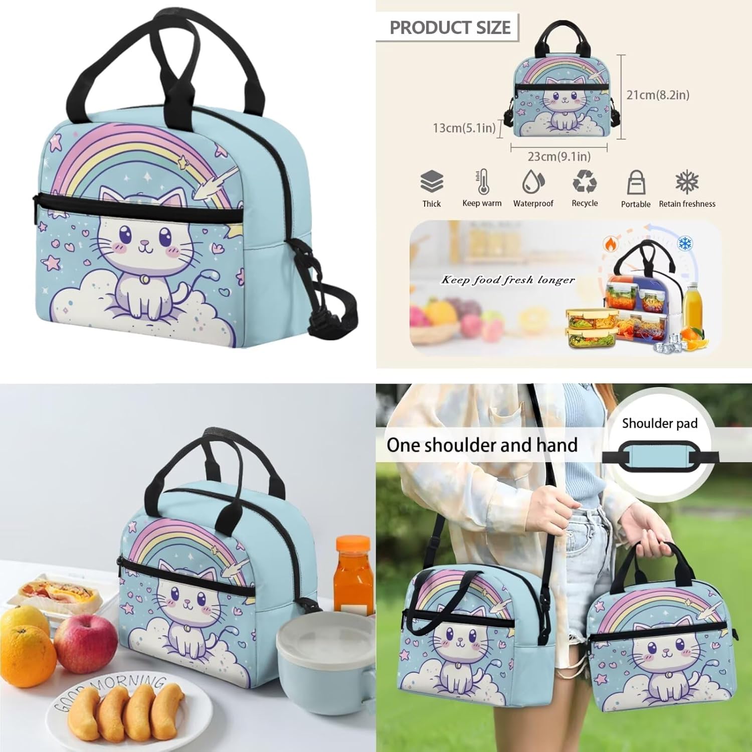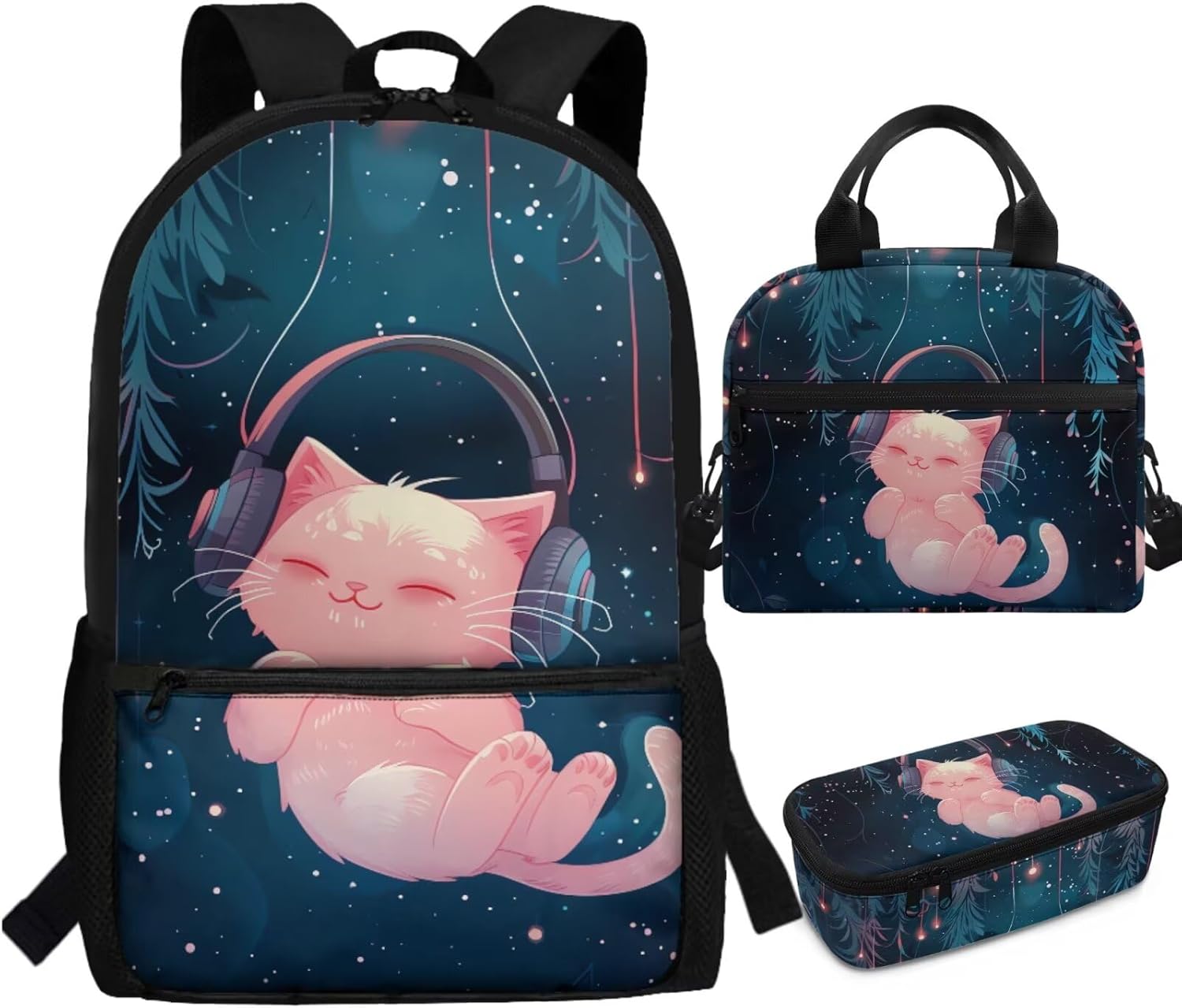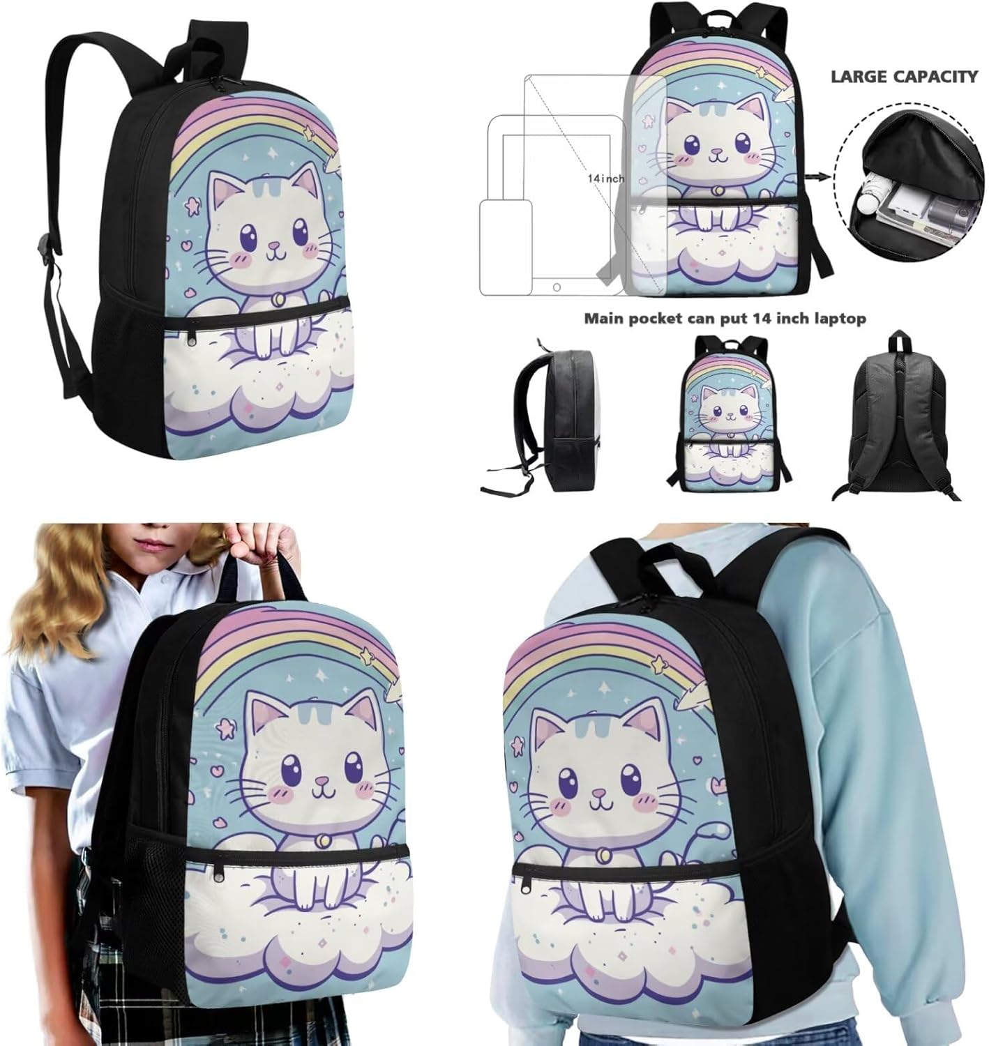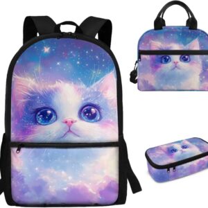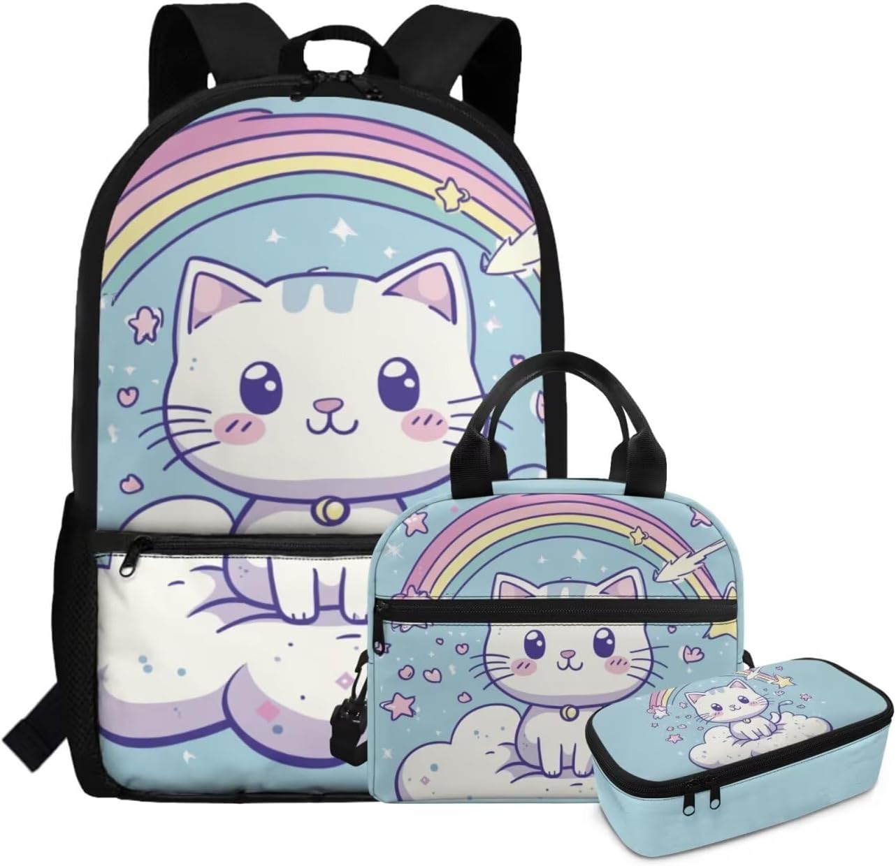 FOR U DESIGNS Kawaii Cat Pattern Backpack with Insulated Lunch Bag Zipper Pouch Ergonomic 17 Inch School Bookbag for Grade 3 Lightweight Backpack for Girls 8-12 quantity
