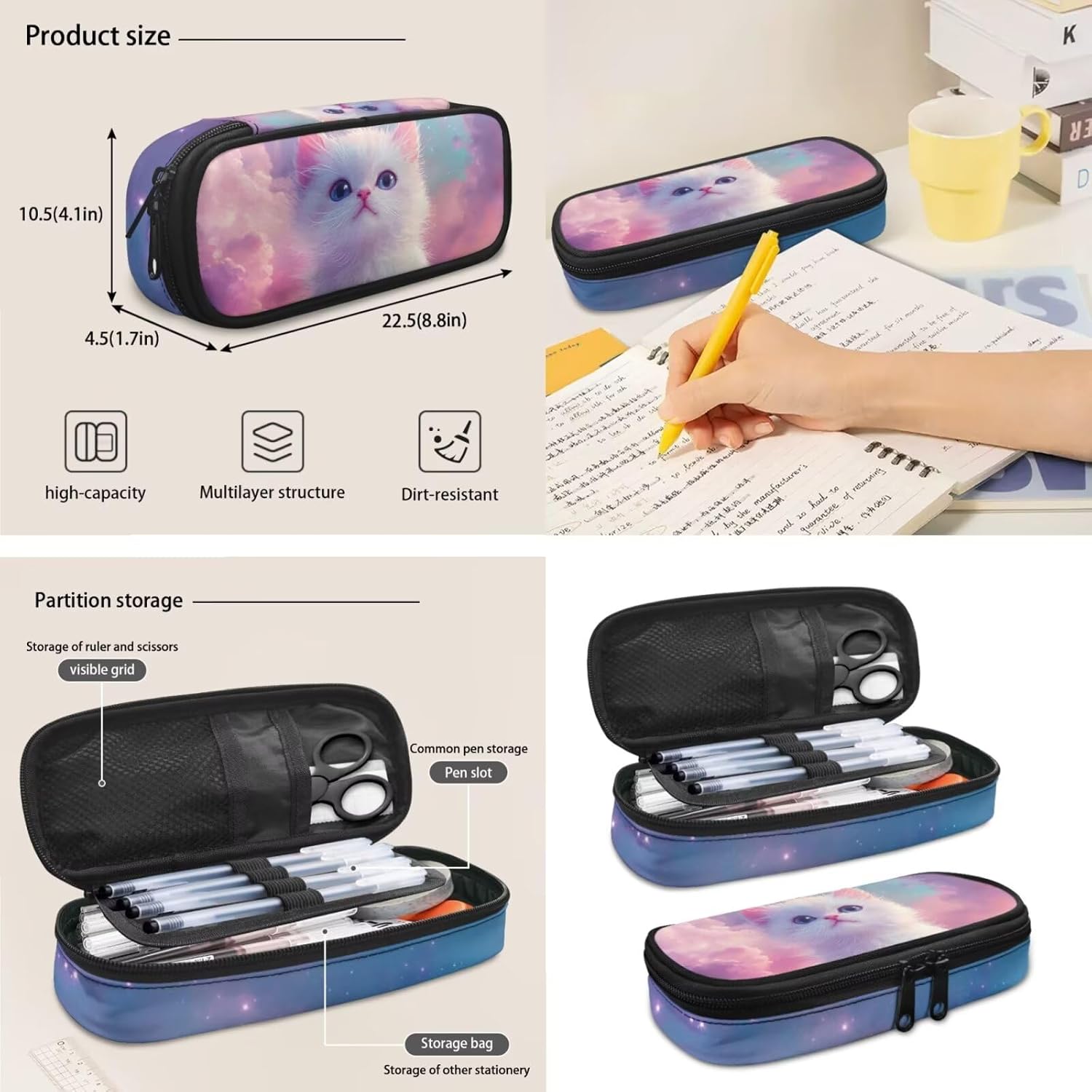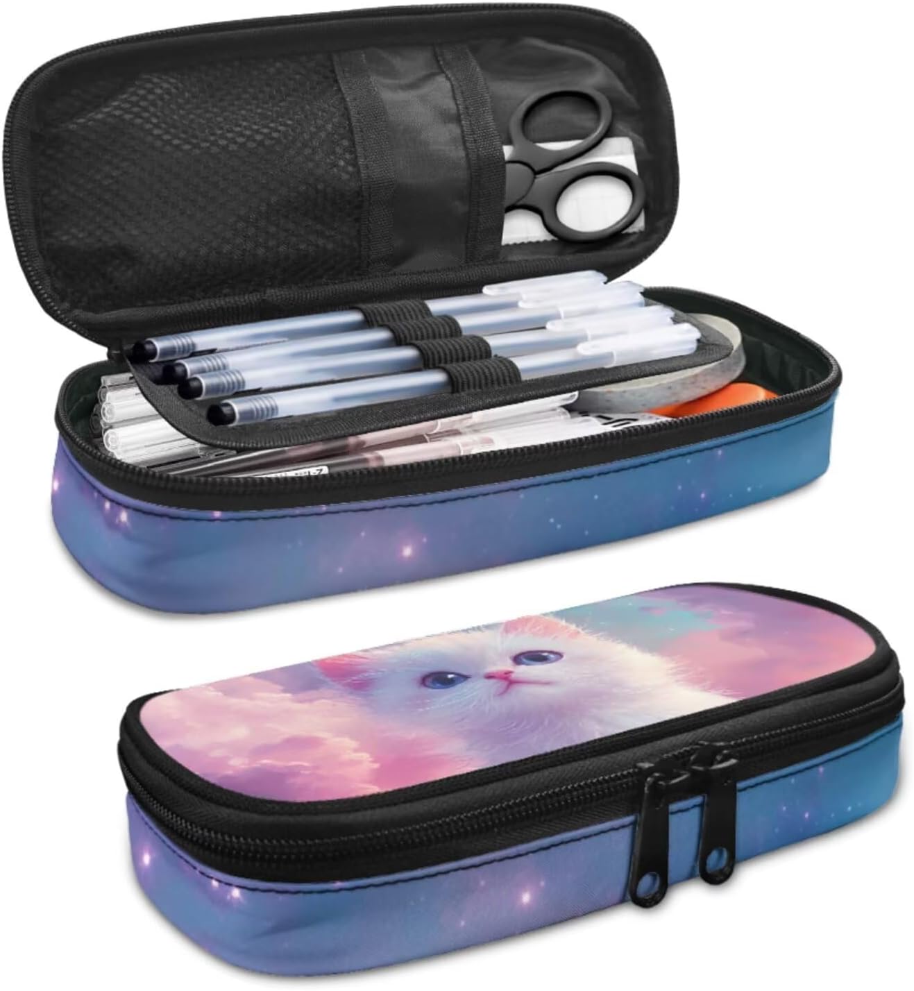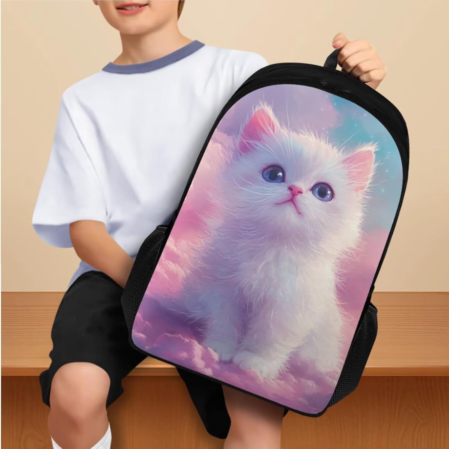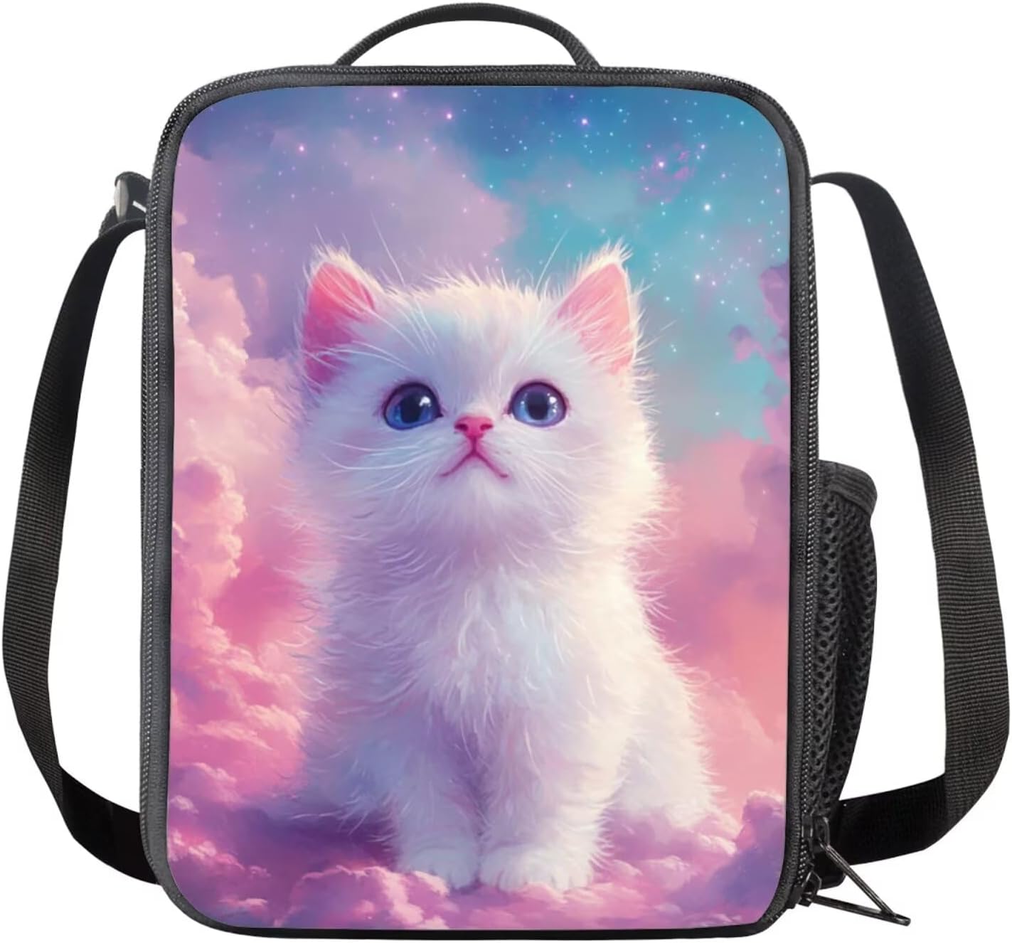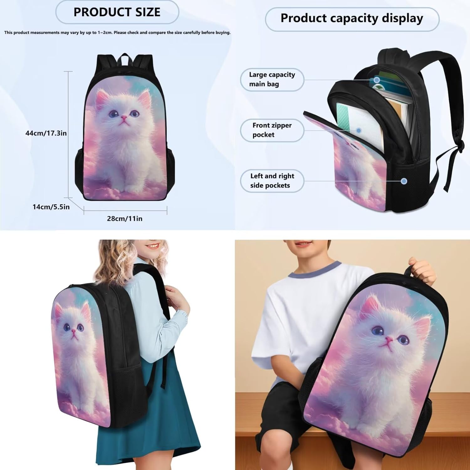 Glorowreny Cat Backpack for Kids School Lightweight 17 Inch Bookbag for Teen Girls with Lunch Box Kawaii Insulated Lunch Bag with Pockets 3 Pcs Back to School Gifts