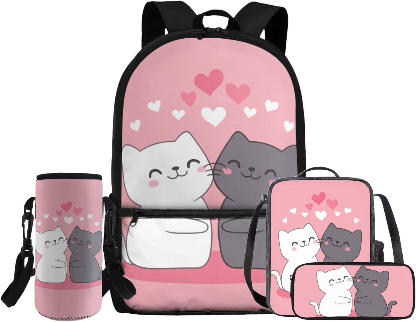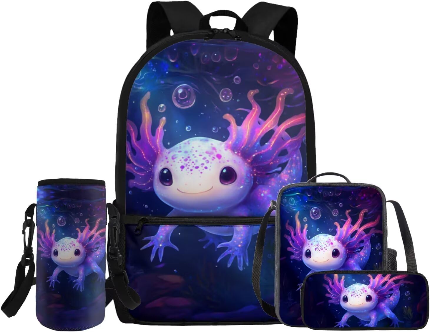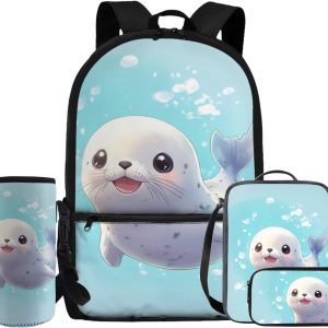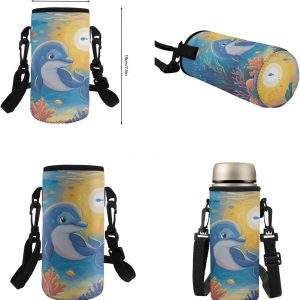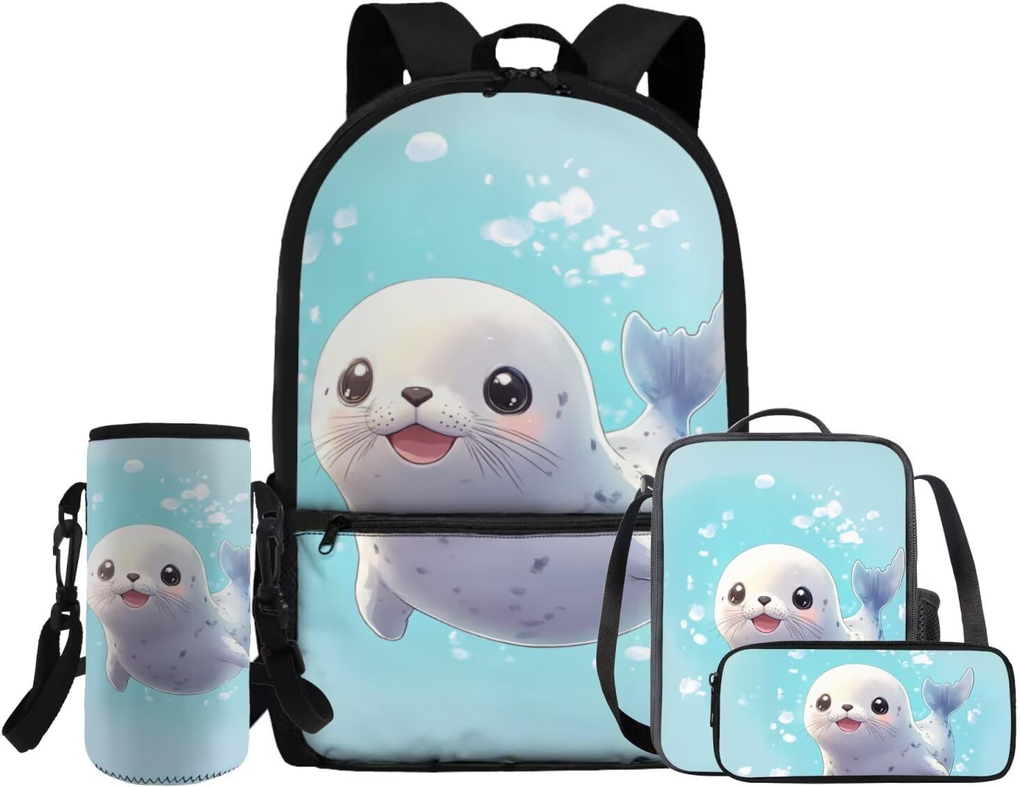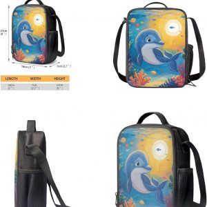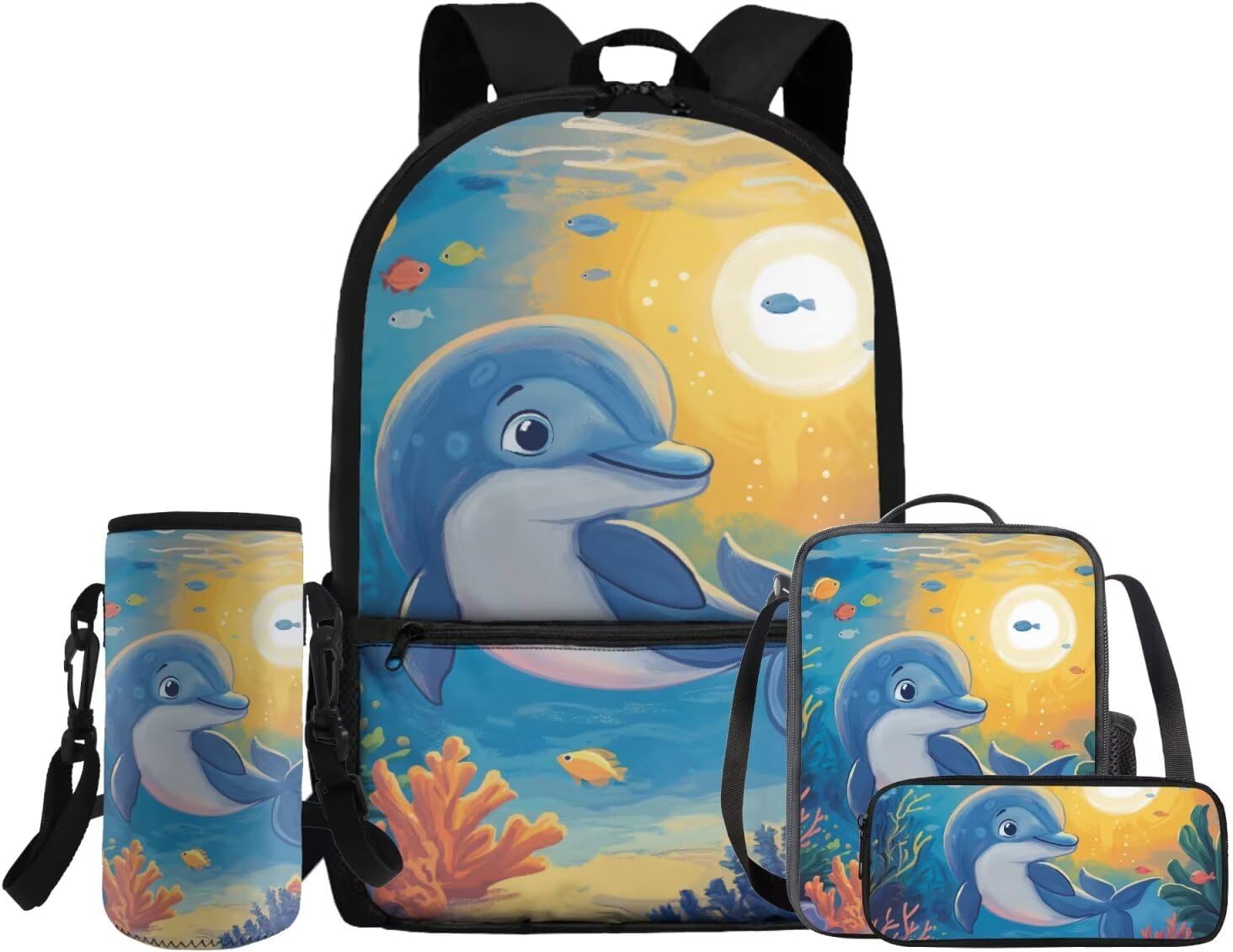 Glorowreny Dolphin Girls Backpack with Lunch Bag Kawaii Kids Lunch Bags for Girls Small Lightweight Water Bottle Sleeves with Strap Set of 4 Classic 17 Inch School Knapsack Book Bags for School