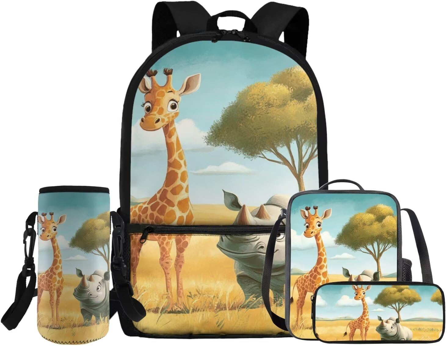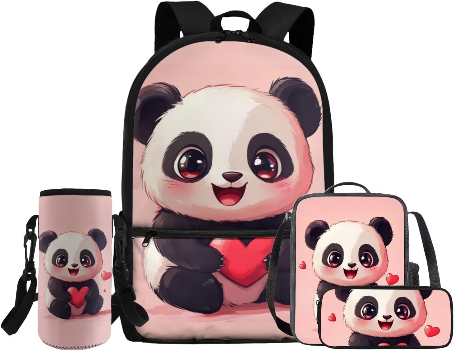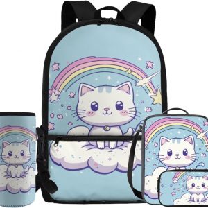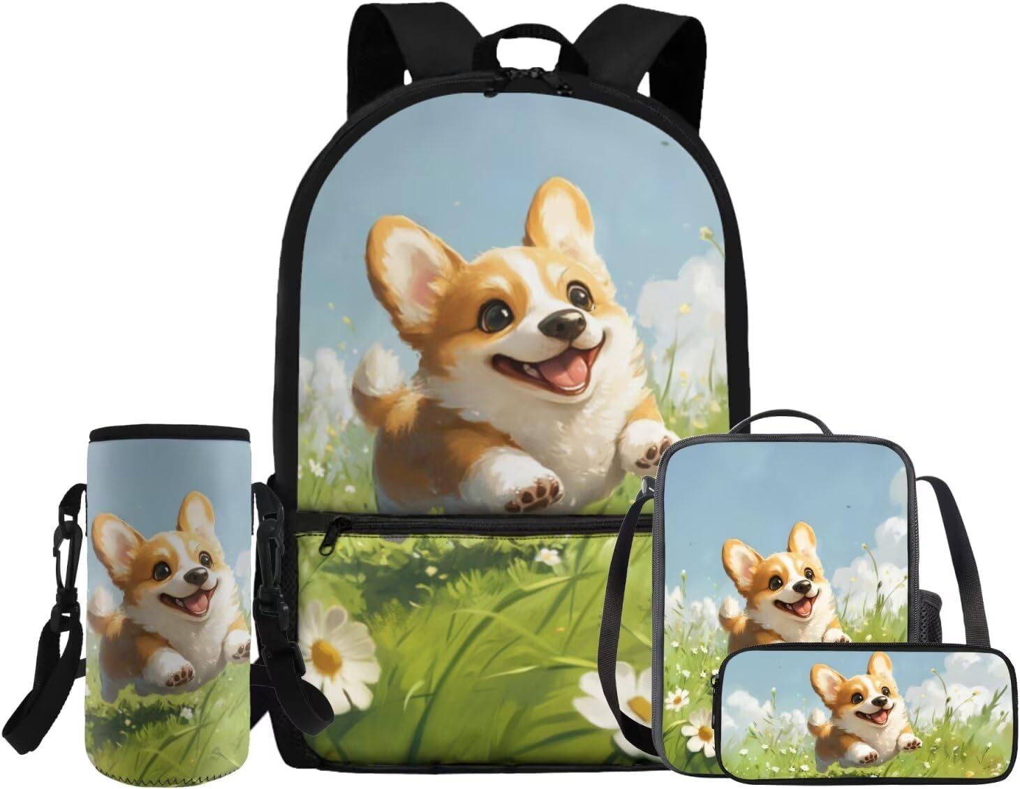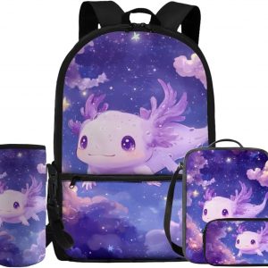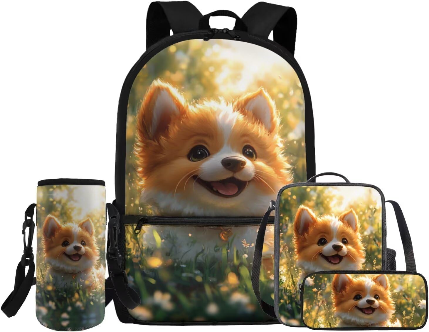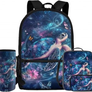 Glorowreny Dolphin Girls Backpack with Lunch Bag Kawaii Kids Lunch Bags for Girls Small Lightweight Water Bottle Sleeves with Strap Set of 4 Classic 17 Inch School Knapsack Book Bags for School