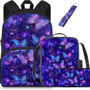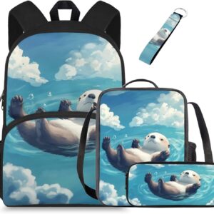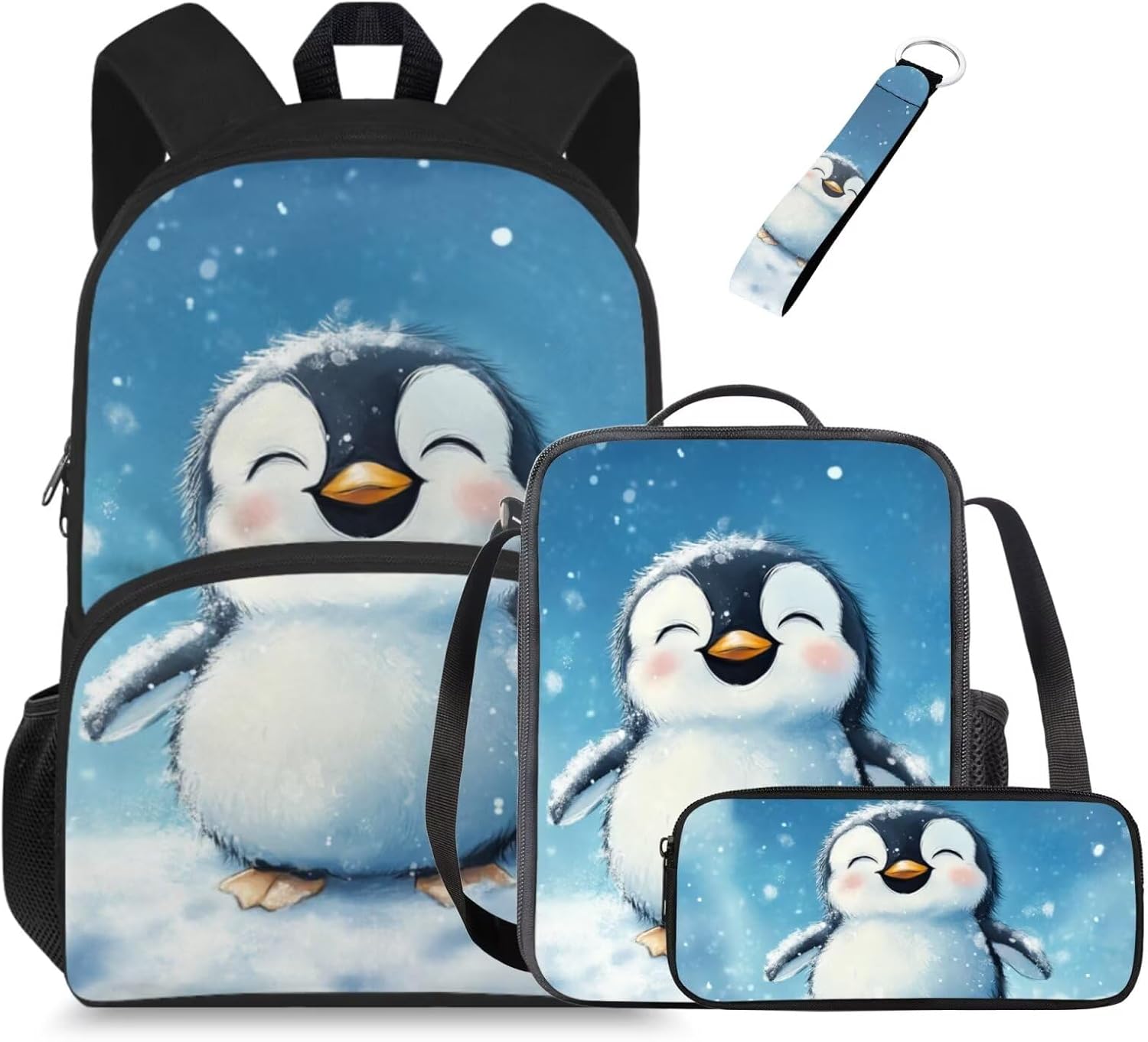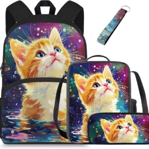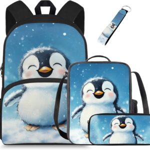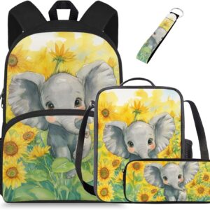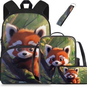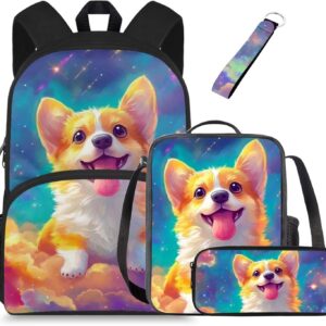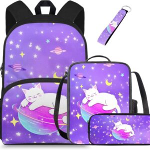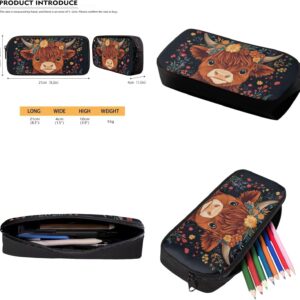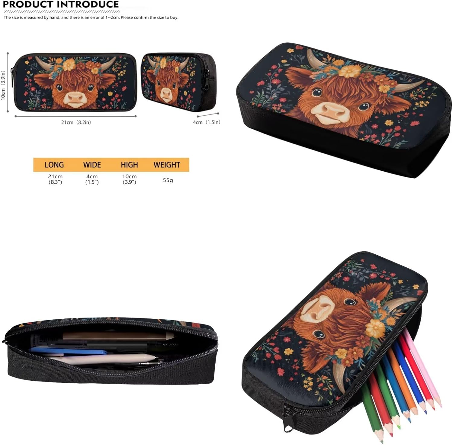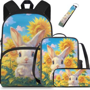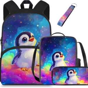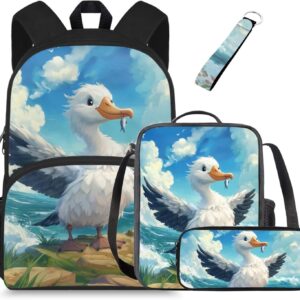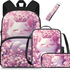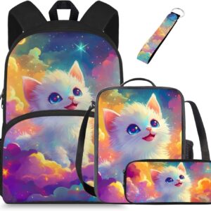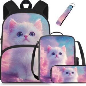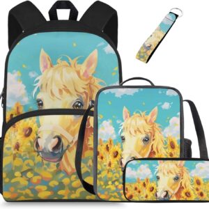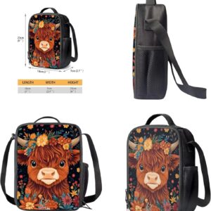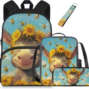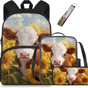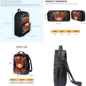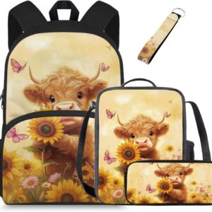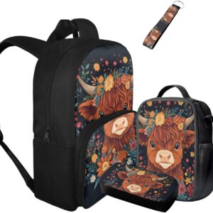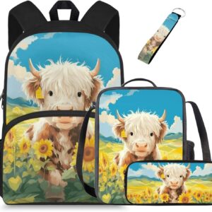 Glorowreny Highland Cow Girls Backpack with Lunch Box Kawaii 15 Inch Bookbag for Girls 7-8 Ages Lightweight School Lunch Bag for Kids 4 Piece Casual Daycare Bags