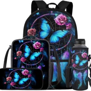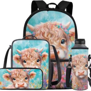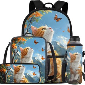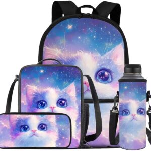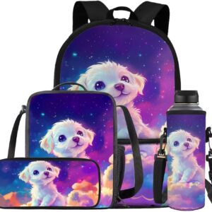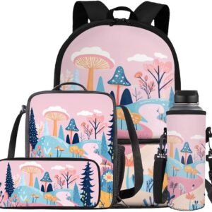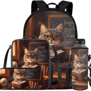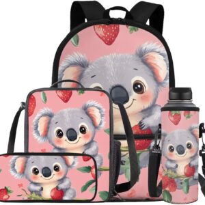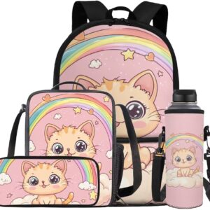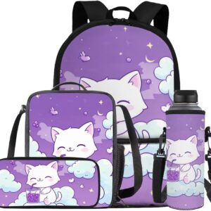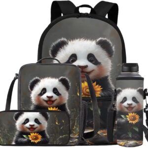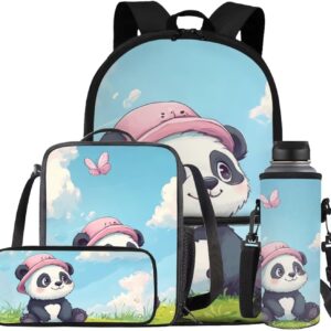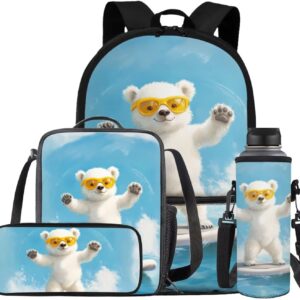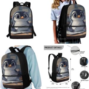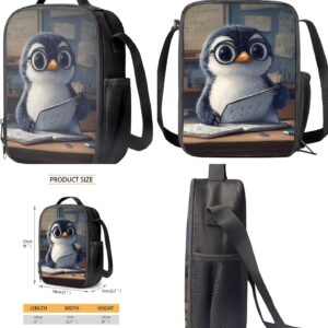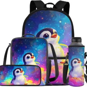 Glorowreny Penguin Backpack Kids Kawaii Animal Girls Bookbag Age 10-12 Lightweight Cute Insulated Lunch Bag Portable Water Bottle Sleeve with Strap 4 PCS Casual School Daycare Bags