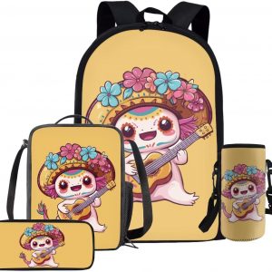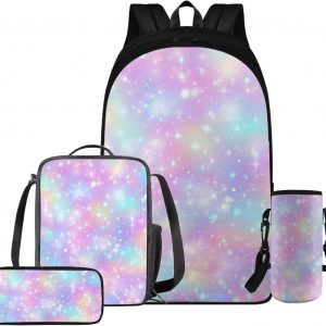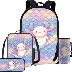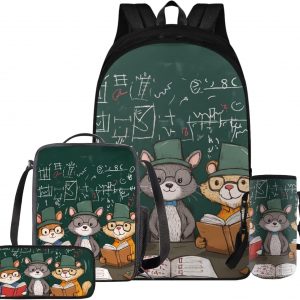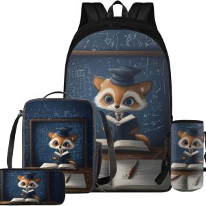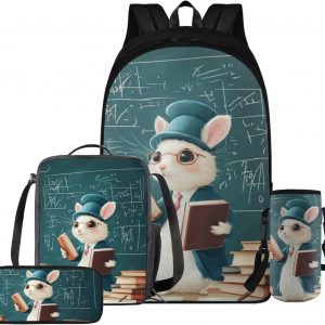 Glorowreny Squirrel Backpacks for Girls Personalized Kawaii Insulated Lunch Bag for Kids 4 in 1 Lightweight Pencil Case17 Inch Large Capacity School Knapsack for Students