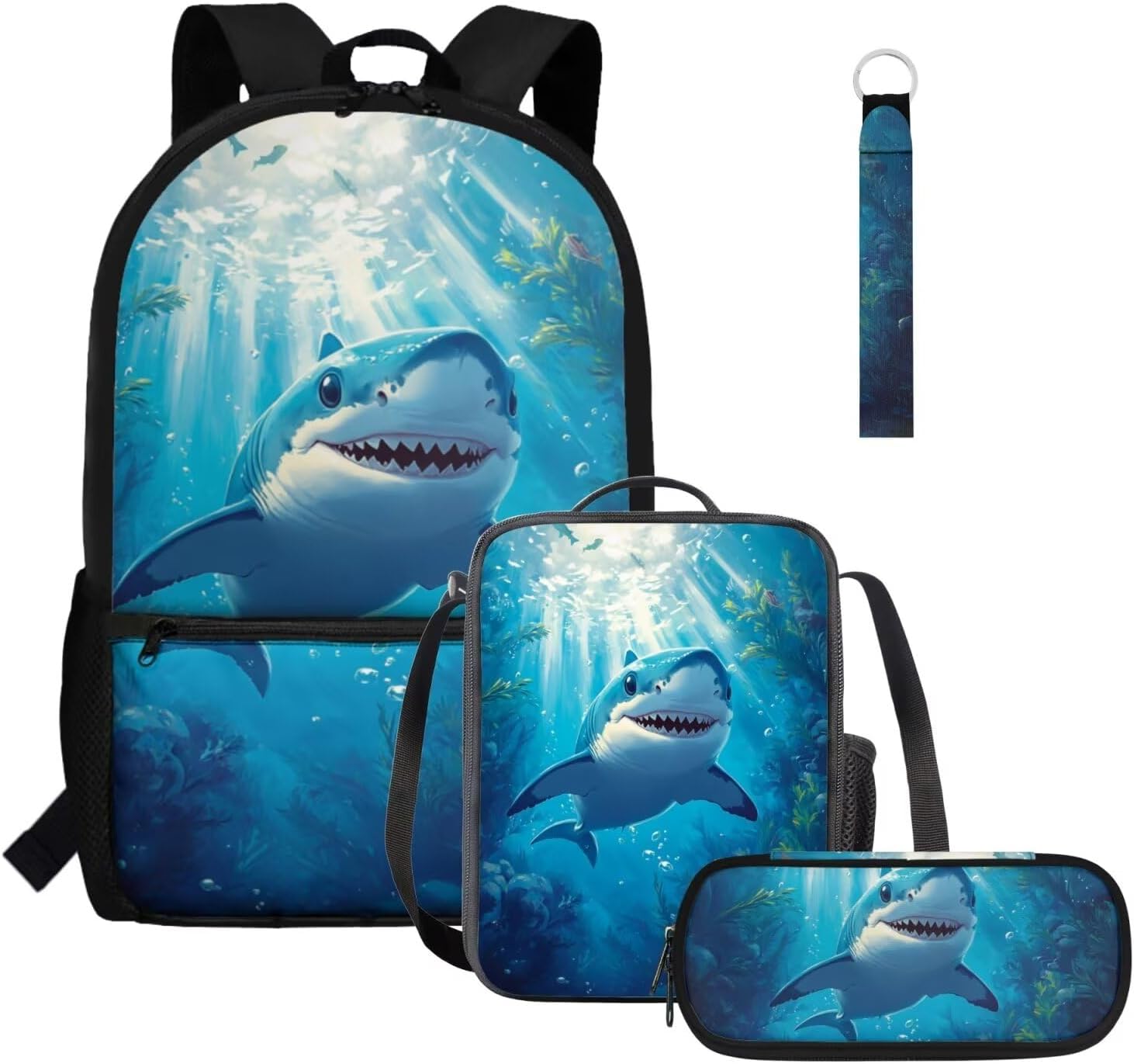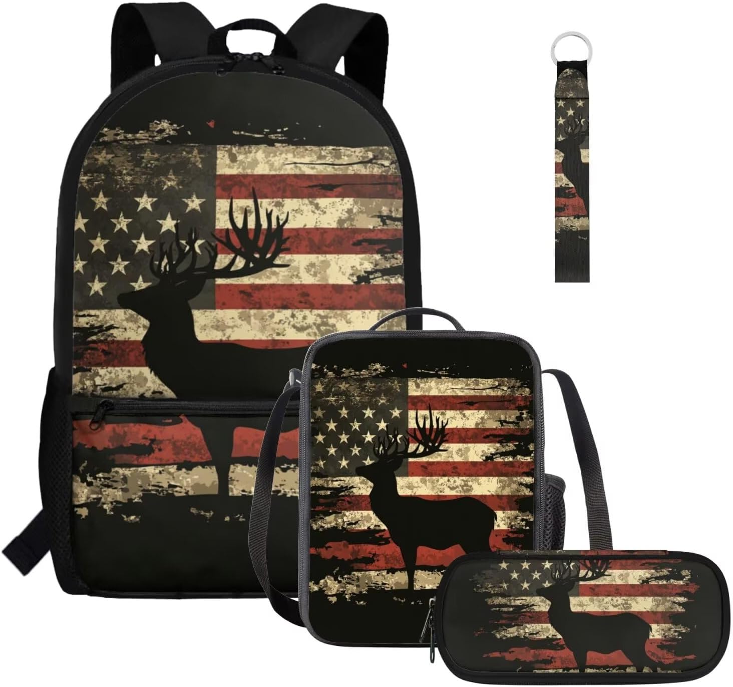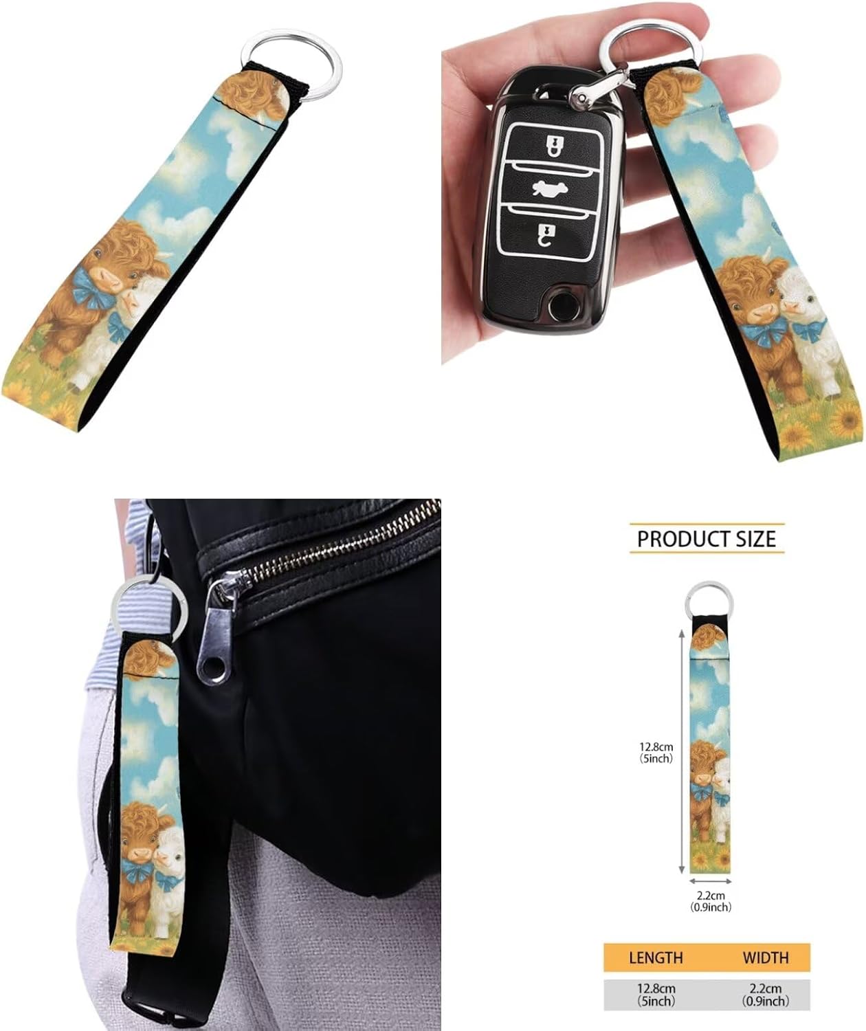 Gomyblomy Highland Cow Lamb Bookbag for Girls 6-8 8-10 Kawaii Kids Boys Backpack with Lunch Box Keychain Pencil Case Cute School Bag Set of 4 Pcs for Kindergarten Elementary Students Rucksack