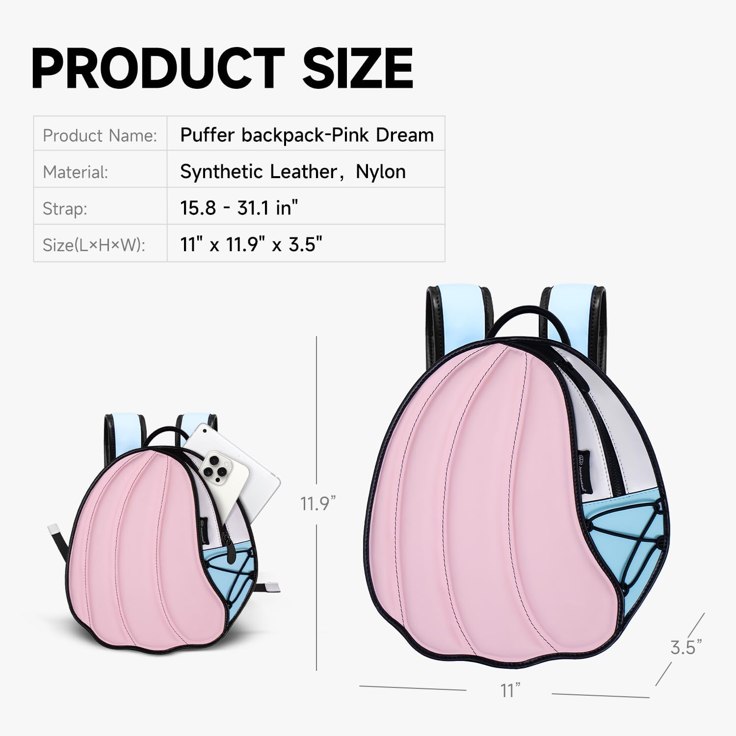 JUMPFROMPAPER Original 2D Cartoon Backpack (Puffer), Fun Novelty Backpacks Bags for Women, Adults and Senior Year, for Campus, Daily Use and Travel (Pink Dream)
