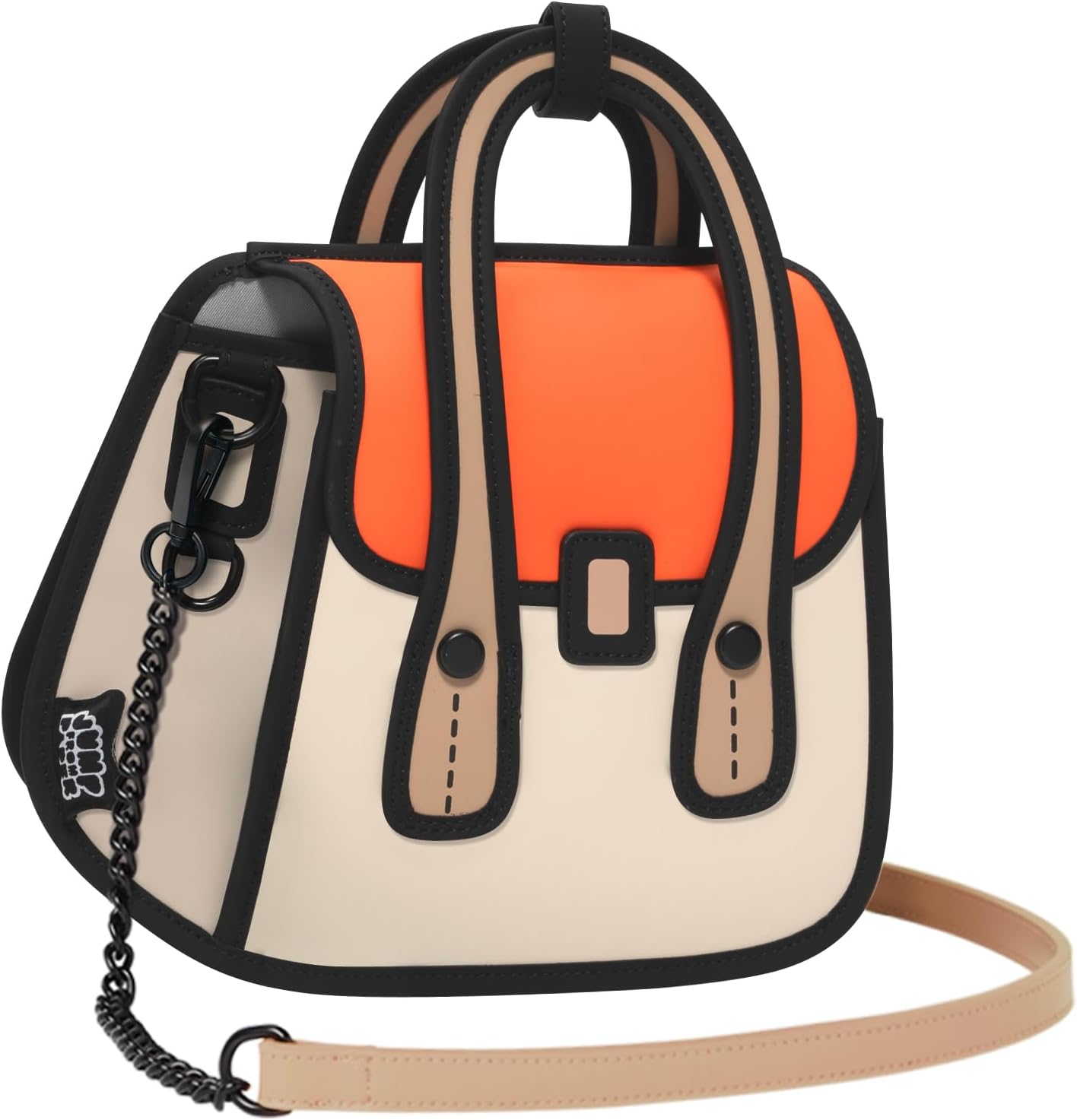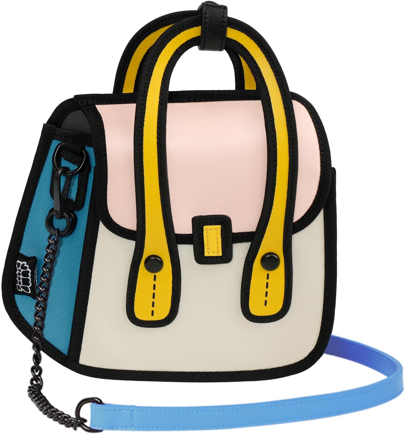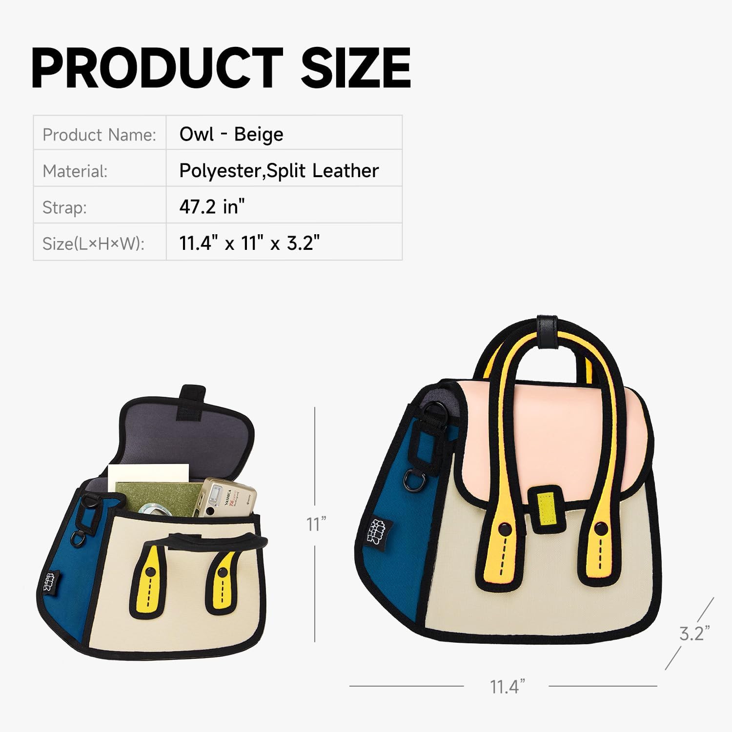 Original 2D Cartoon Crossbody Bag Purse (Owl), Jump From Paper Fun Novelty Cross Body Funny Purse for Women,Carries Essentials for Daily and Travel (Beige, Medium – Classic)