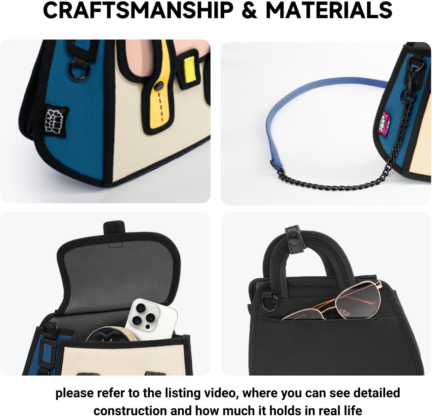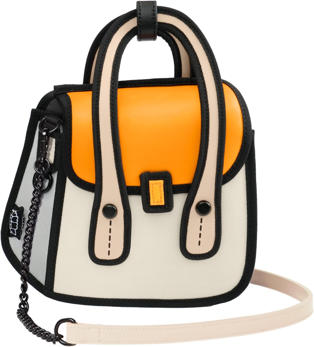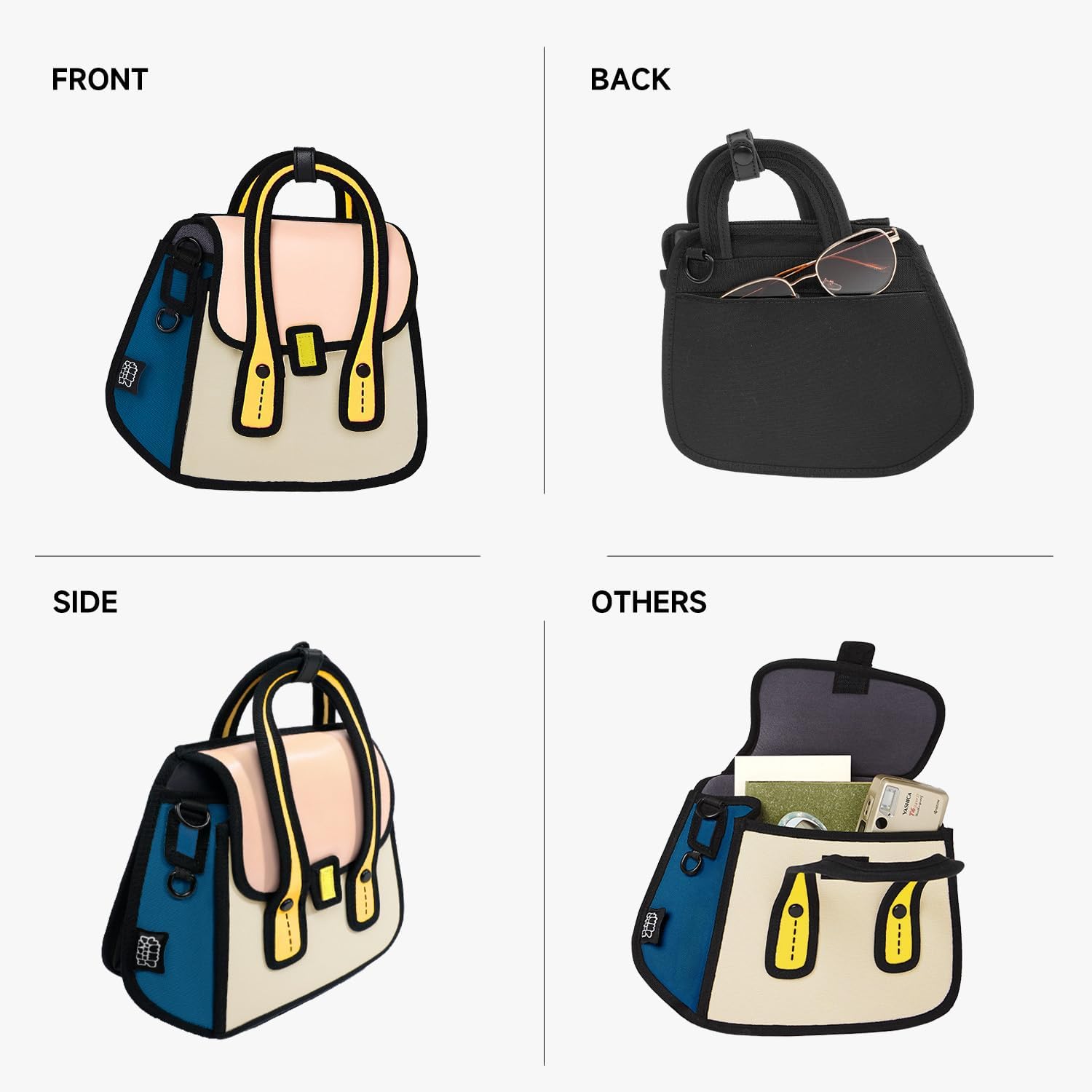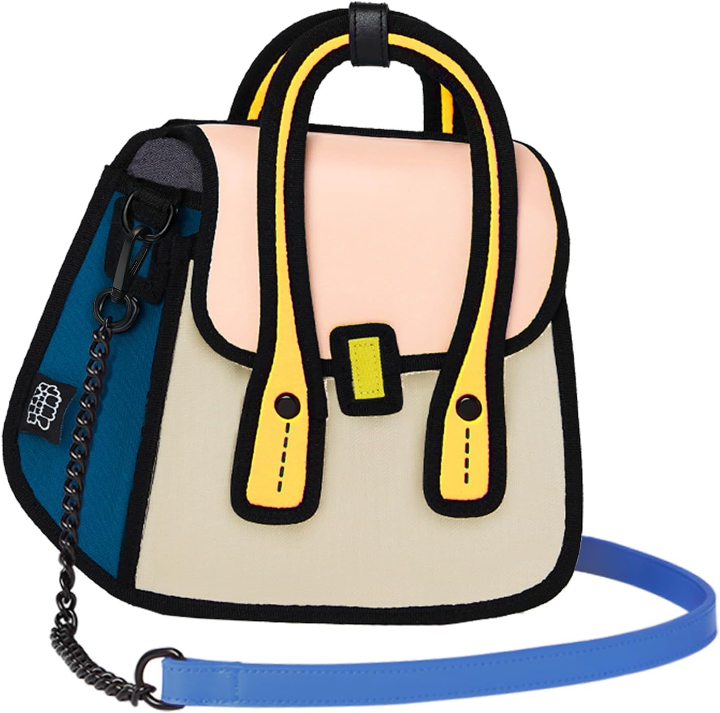 Original 2D Cartoon Crossbody Bag Purse (Owl), Jump From Paper Fun Novelty Cross Body Funny Purse for Women,Carries Essentials for Daily and Travel (Beige, Medium – Classic)
