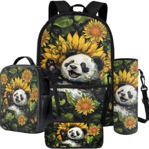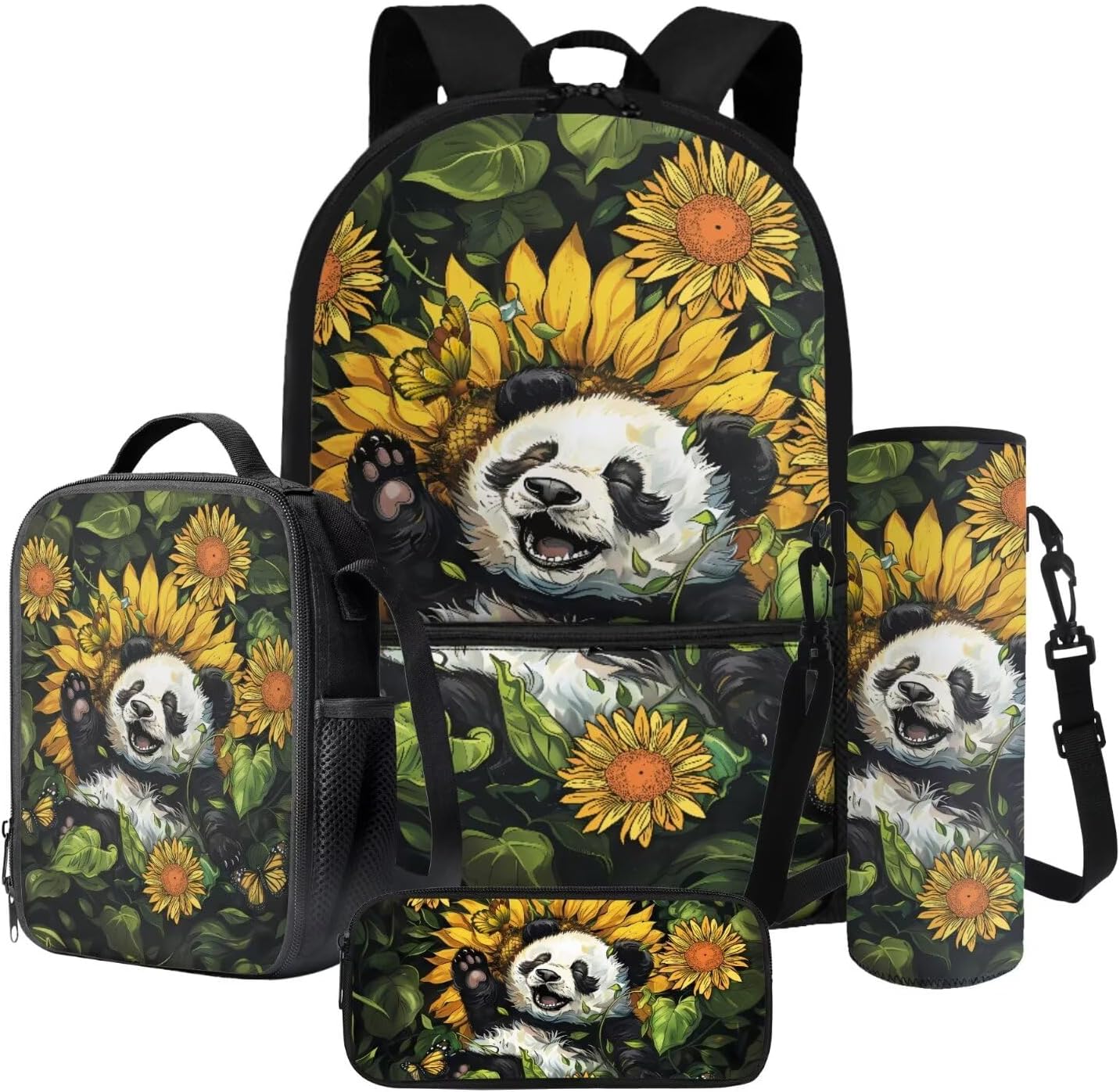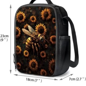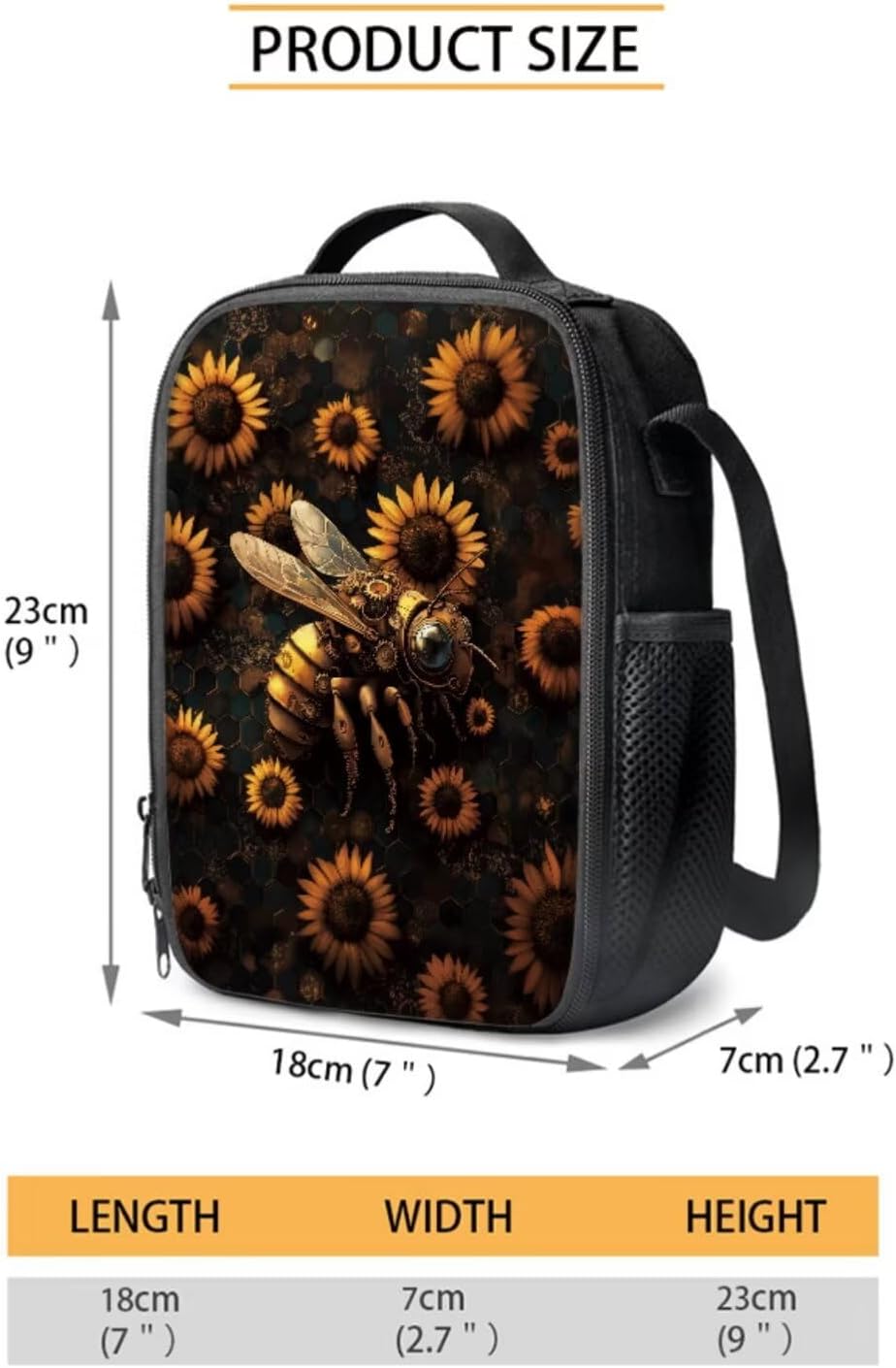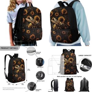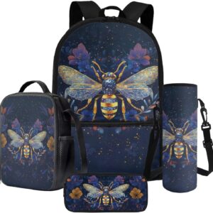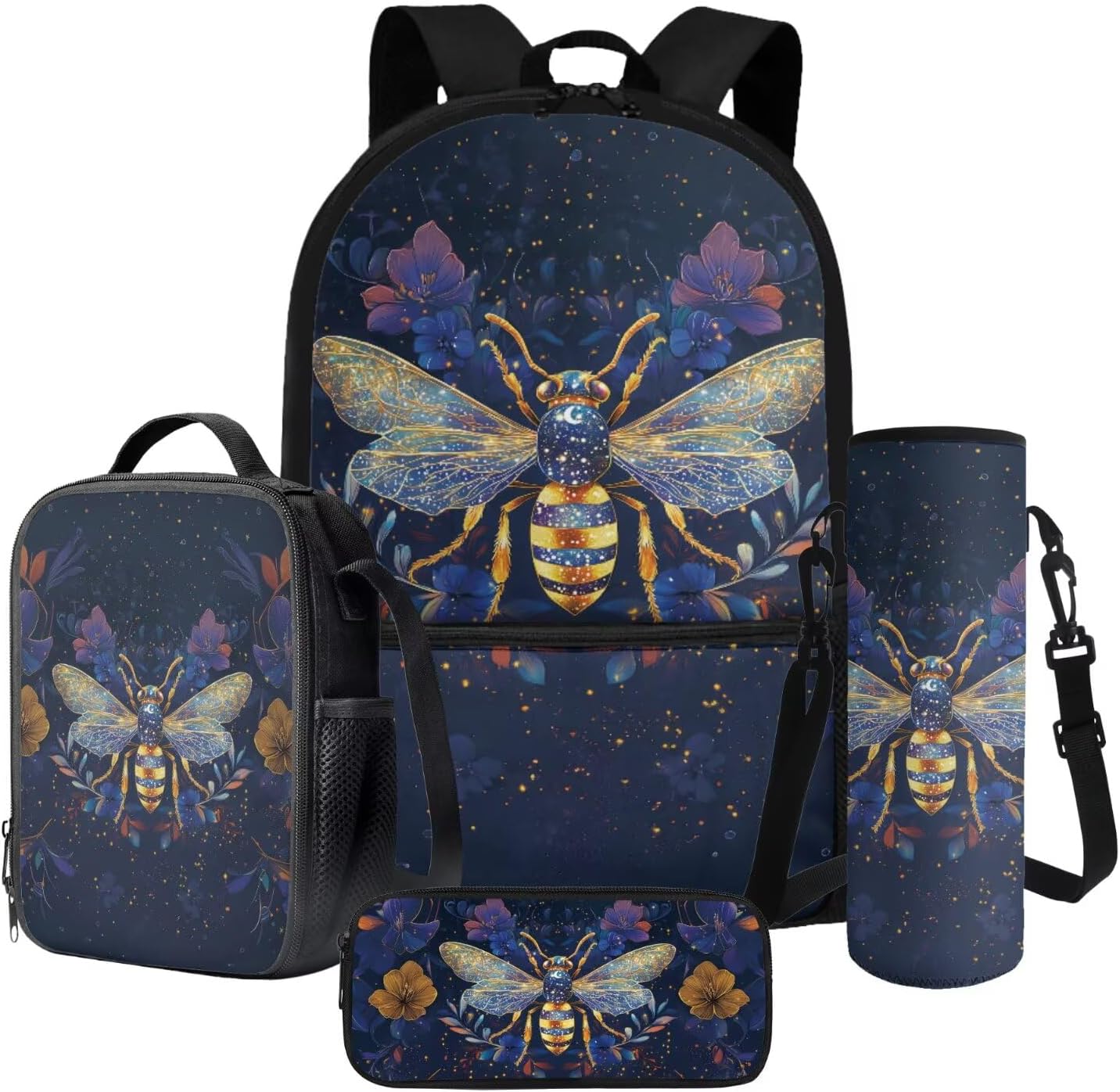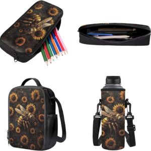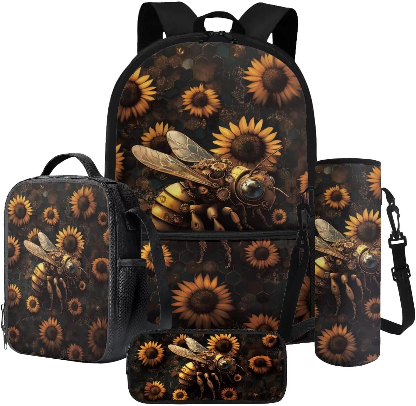 Poceacles 4 Pieces Backpack Sets for Girls Boys, Including Kawaii Rucksack Pencil Case Lunch Box Bag Bottle Sleeve for Primary Junior High School, Travel, Picnic, Sunflower Mechanical Bee