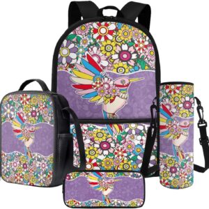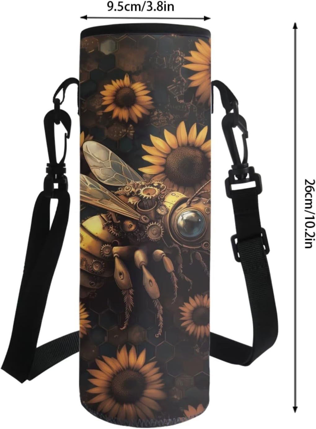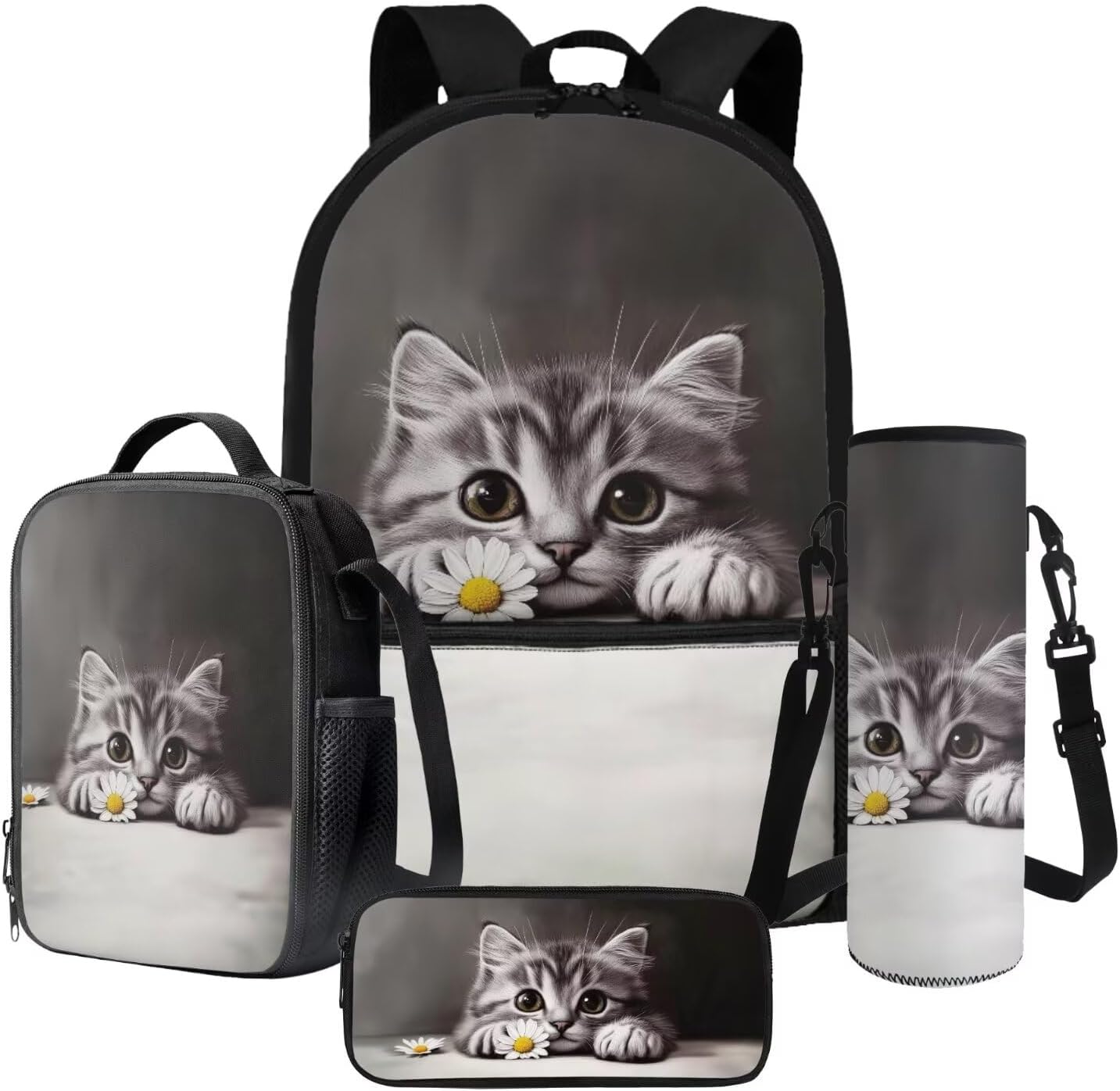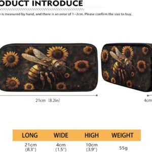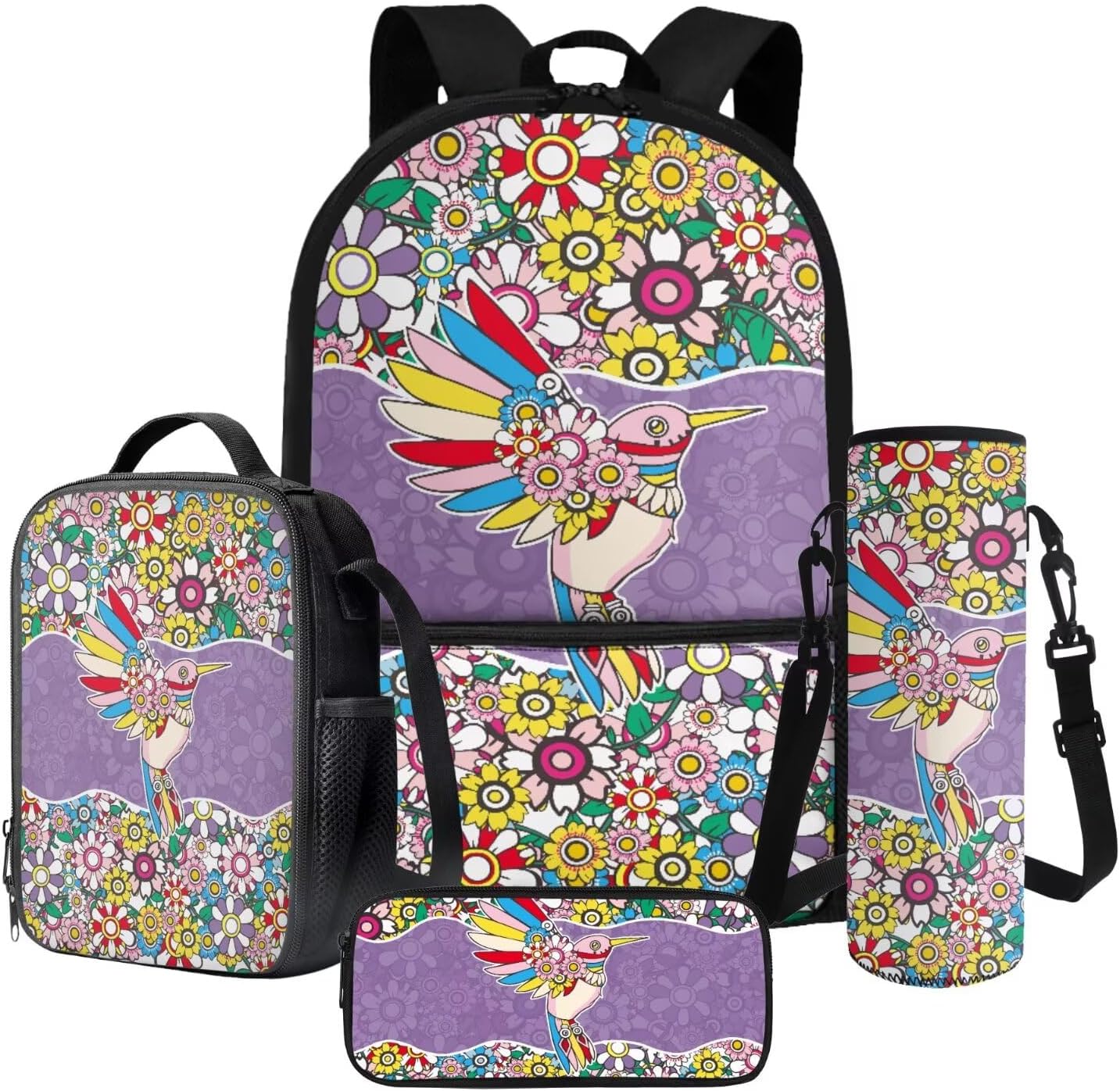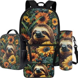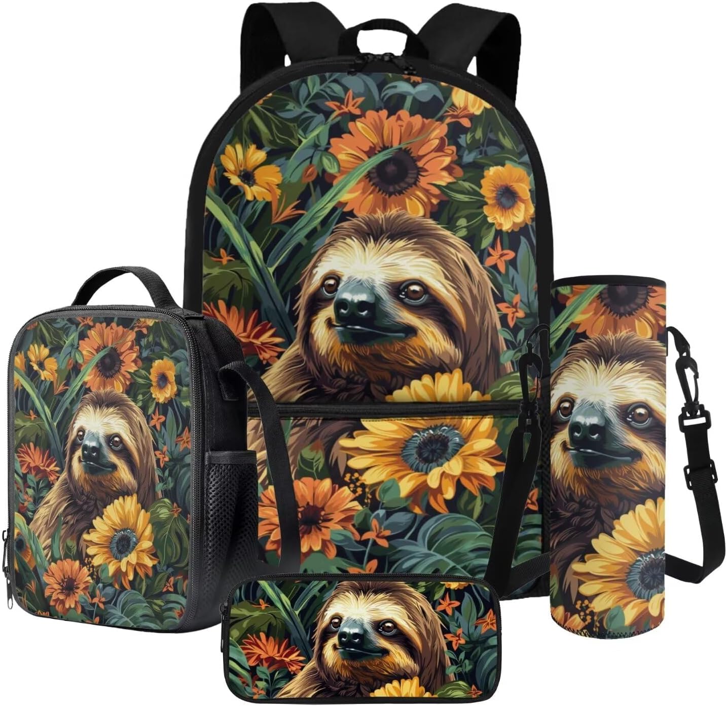 Poceacles 4 Pieces Backpack Sets for Girls Boys, Including Kawaii Rucksack Pencil Case Lunch Box Bag Bottle Sleeve for Primary Junior High School, Travel, Picnic, Sunflower Mechanical Bee