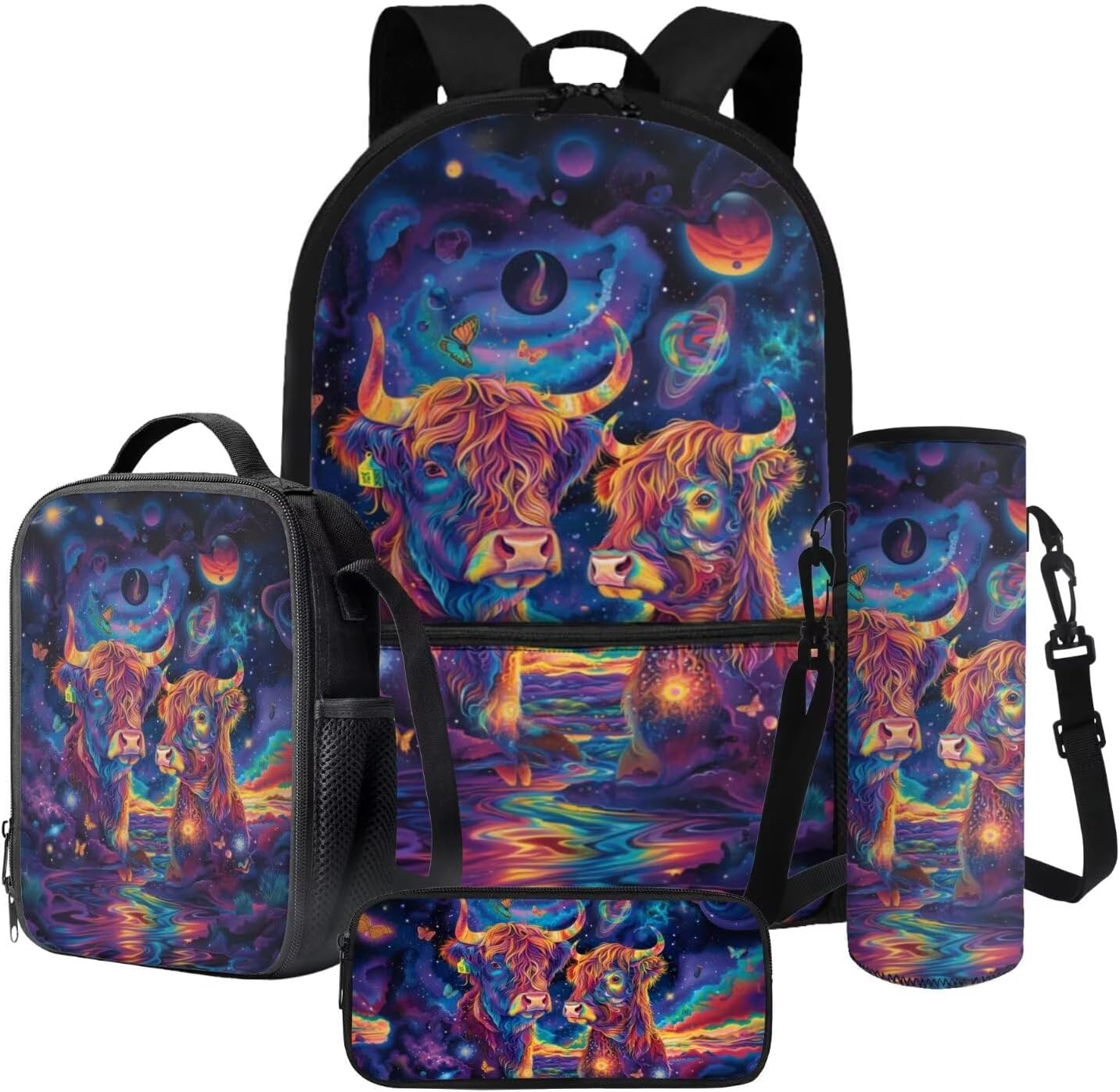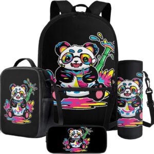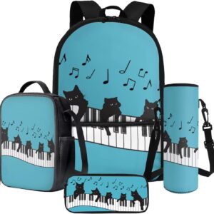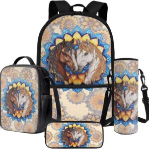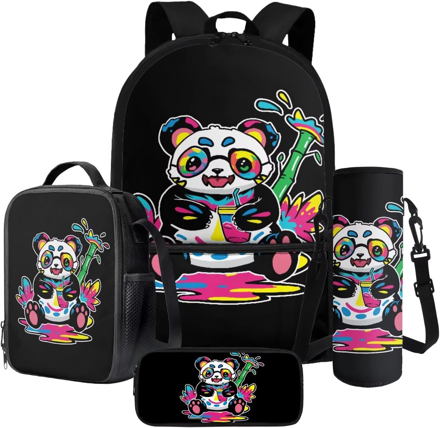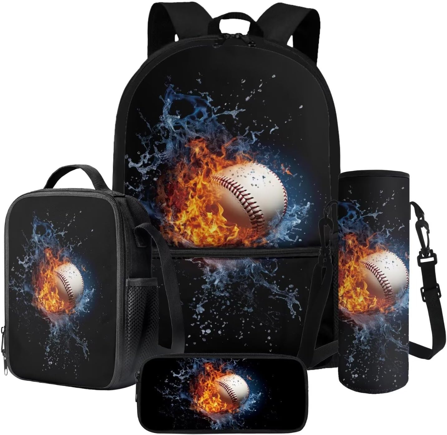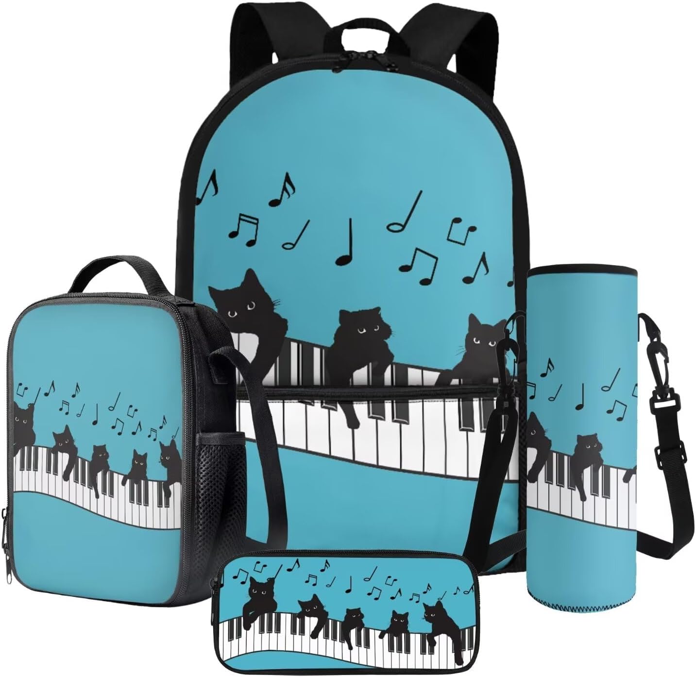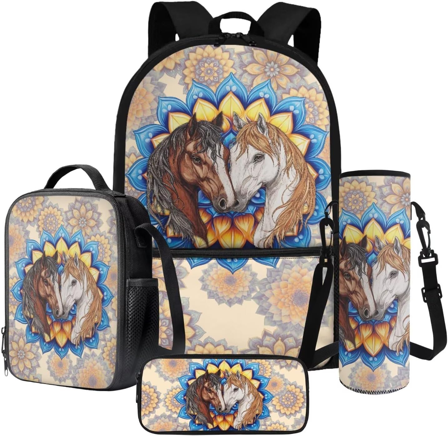 Poceacles 4 Pieces Backpack Sets for Girls Boys, Including Kawaii Rucksack Pencil Case Lunch Box Bag Bottle Sleeve for Primary Junior High School, Travel, Picnic, Sunflower Mechanical Bee