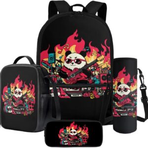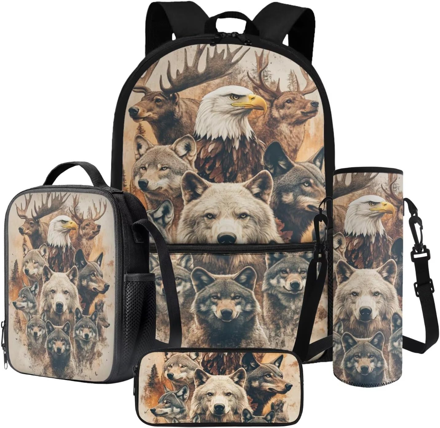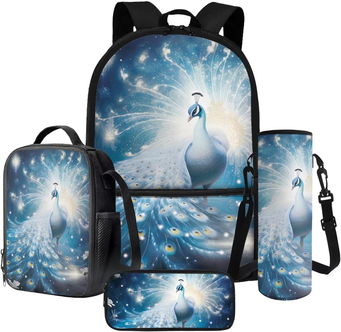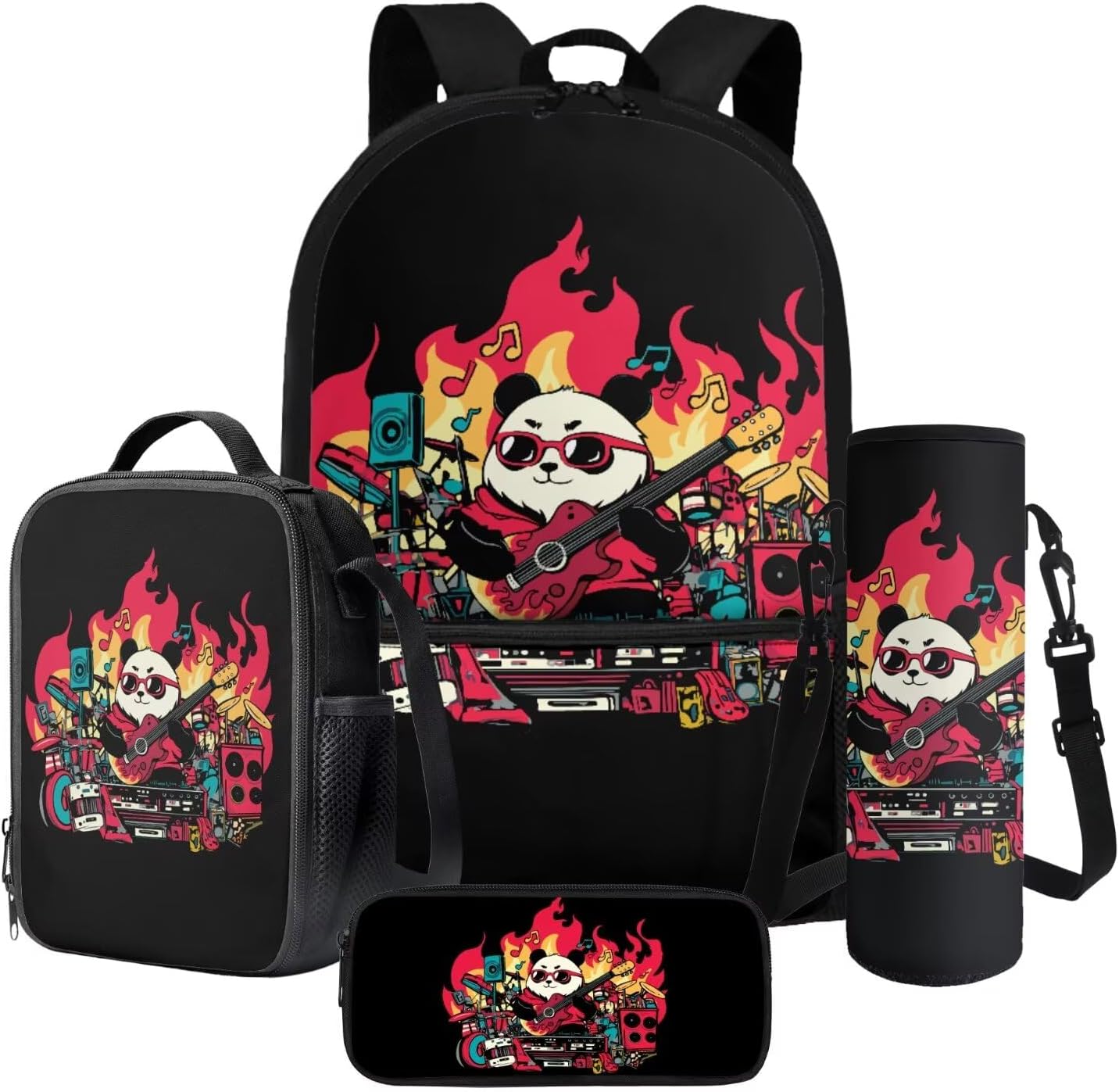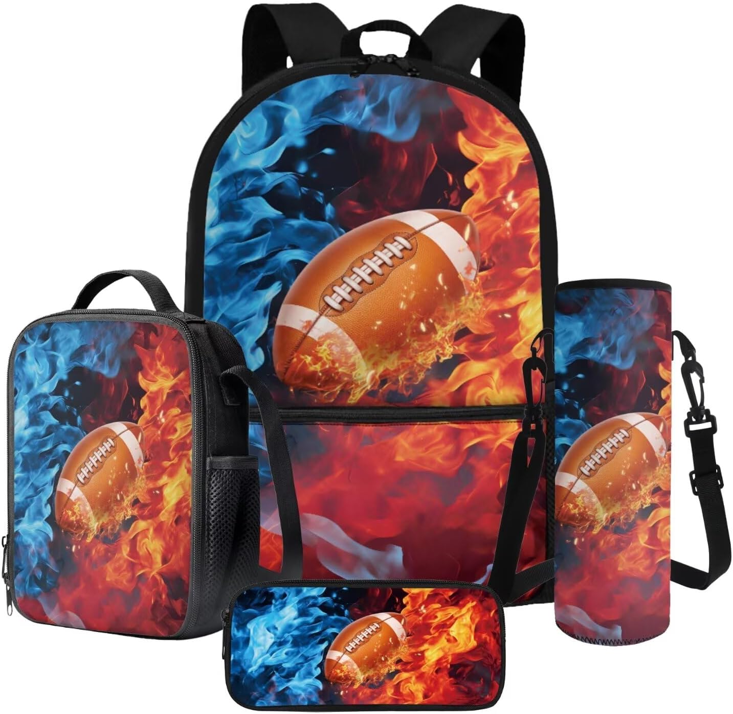 Poceacles 4 Pieces Backpack Sets for Girls Boys, Including Kawaii Rucksack Pencil Case Lunch Box Bag Bottle Sleeve for Primary Junior High School, Travel, Picnic, Sunflower Mechanical Bee