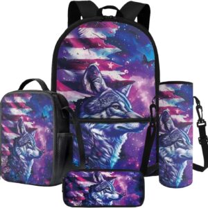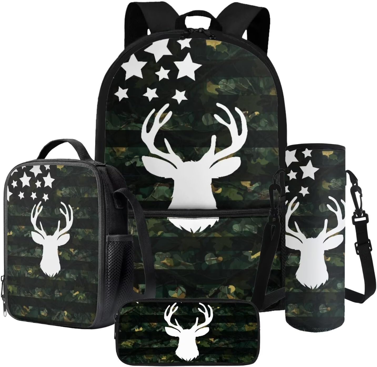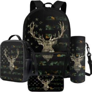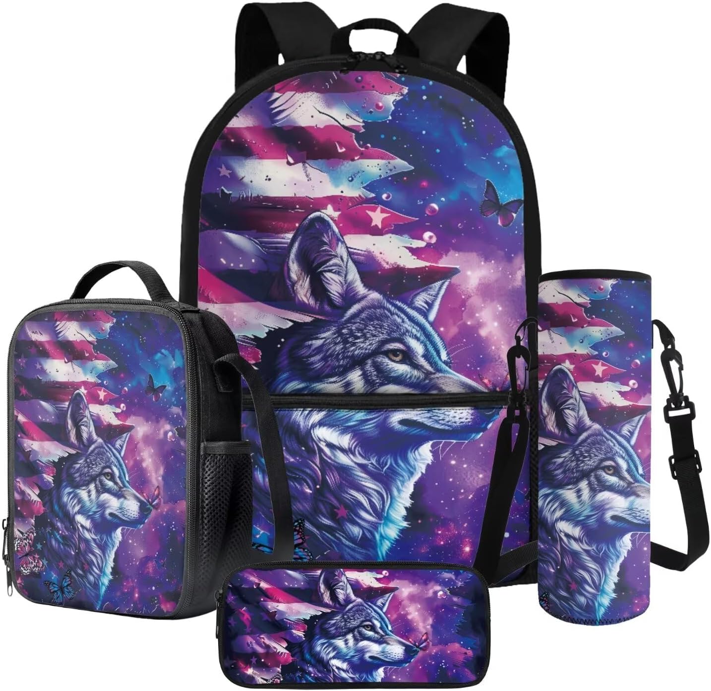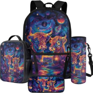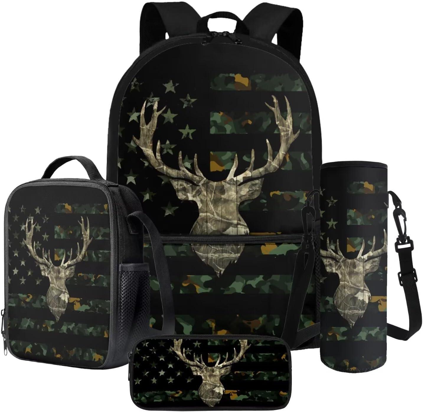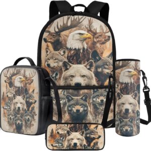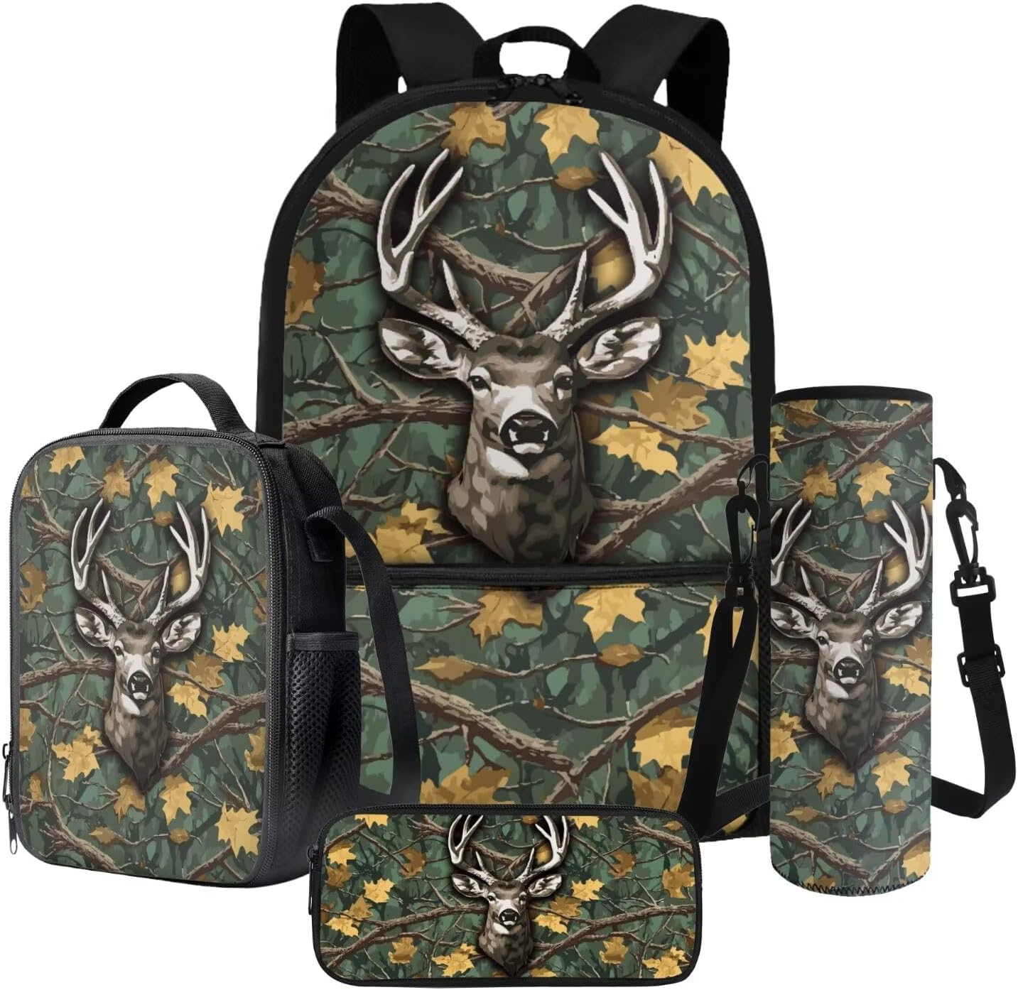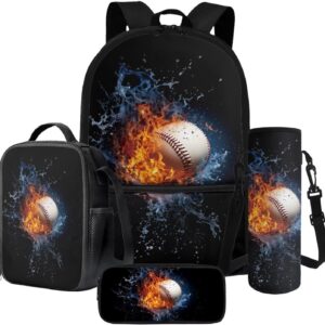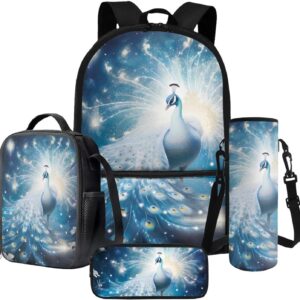 Poceacles 4 Pieces Backpack Sets for Girls Boys, Including Kawaii Rucksack Pencil Case Lunch Box Bag Bottle Sleeve for Primary Junior High School, Travel, Picnic, Sunflower Mechanical Bee