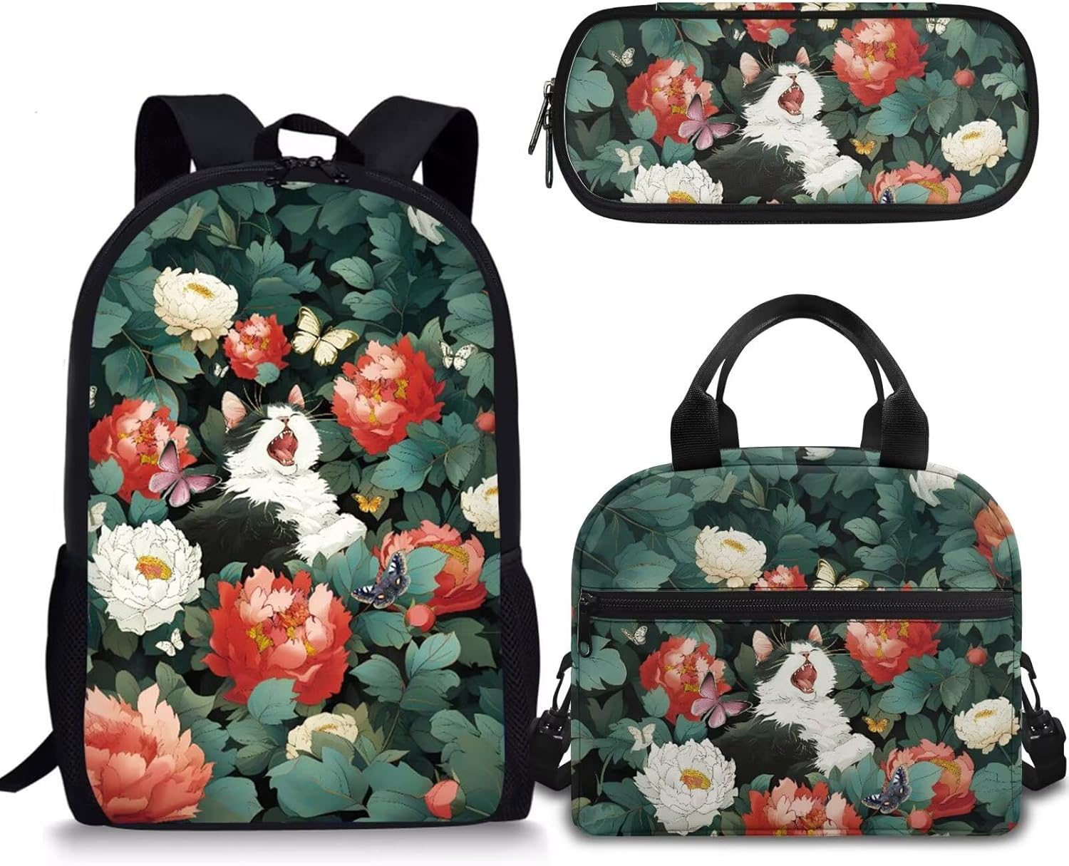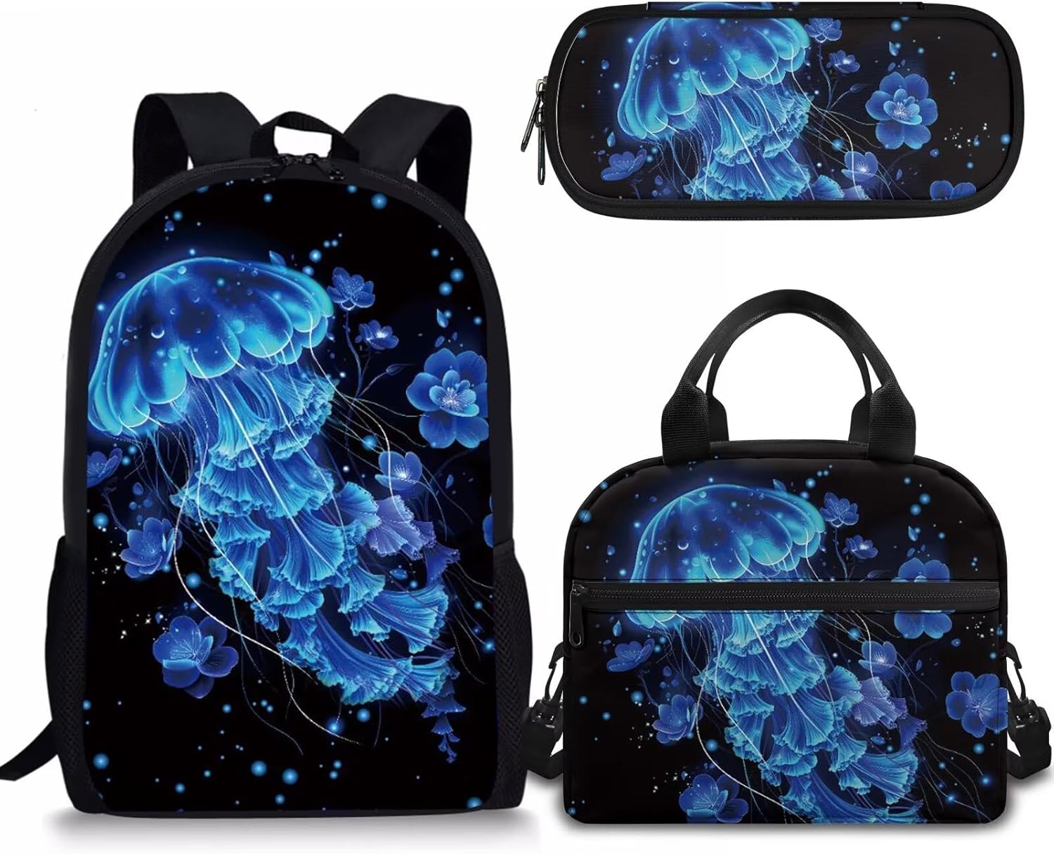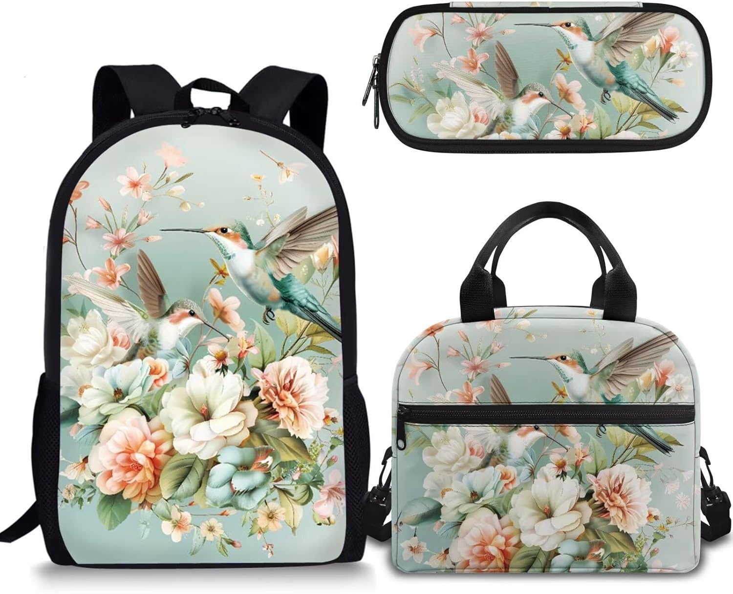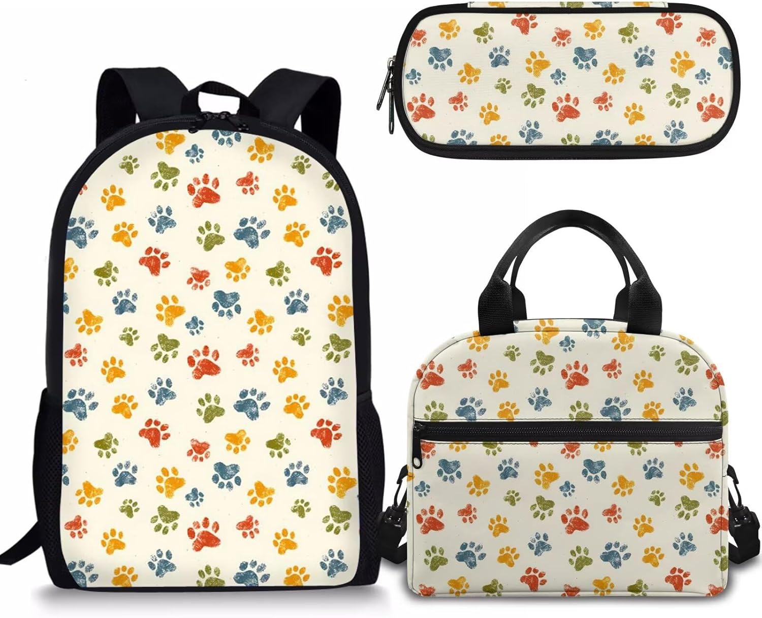 - APPROXIMATE DIMENSIONS – Backpacks Size: 17"H X 11"W X 5"D. A lightweight and durable kids book bag that goes from school to fun as quickly as you do with the comfortable straight-cut padded shoulder straps, padded back panel, and a quick grab web haul handle;Lunch bag Size: 9.1" x 5.1" x8.2",It’s convenient for you to put the lunch bag into your backpack; Pencil Case Size: 8.8 x 4.1 x 1.7 inches with big capacity storage which can hold pretty much everything a student needs.