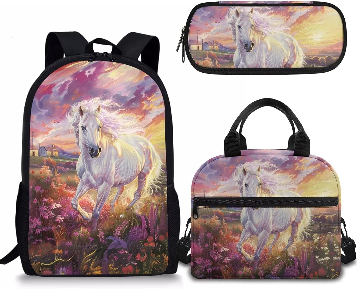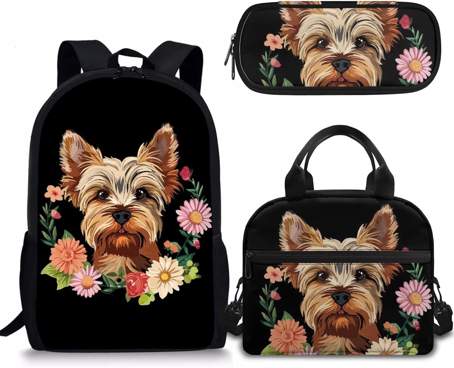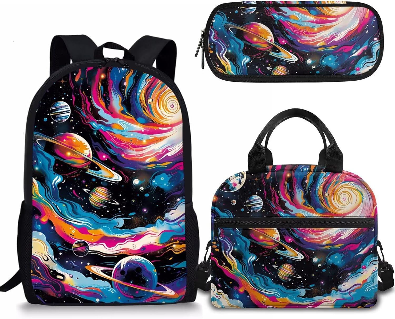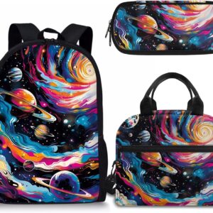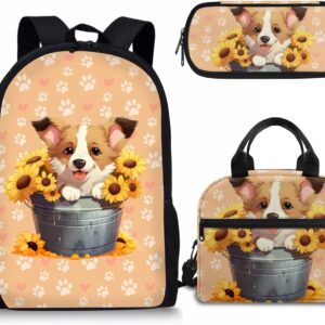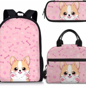 - APPROXIMATE DIMENSIONS – Backpacks Size: 17"H X 11"W X 5"D. A lightweight and durable kids book bag that goes from school to fun as quickly as you do with the comfortable straight-cut padded shoulder straps, padded back panel, and a quick grab web haul handle;Lunch bag Size: 9.1" x 5.1" x8.2",It’s convenient for you to put the lunch bag into your backpack; Pencil Case Size: 8.8 x 4.1 x 1.7 inches with big capacity storage which can hold pretty much everything a student needs.