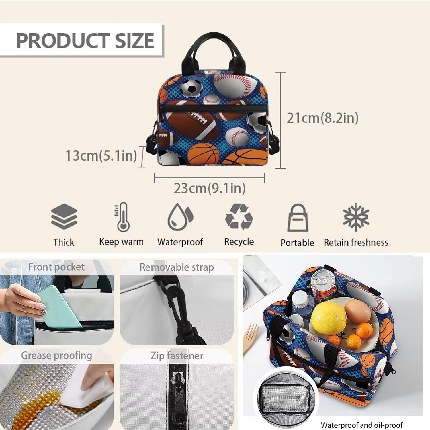Fabric: 600D Polyester and Aluminum Foil