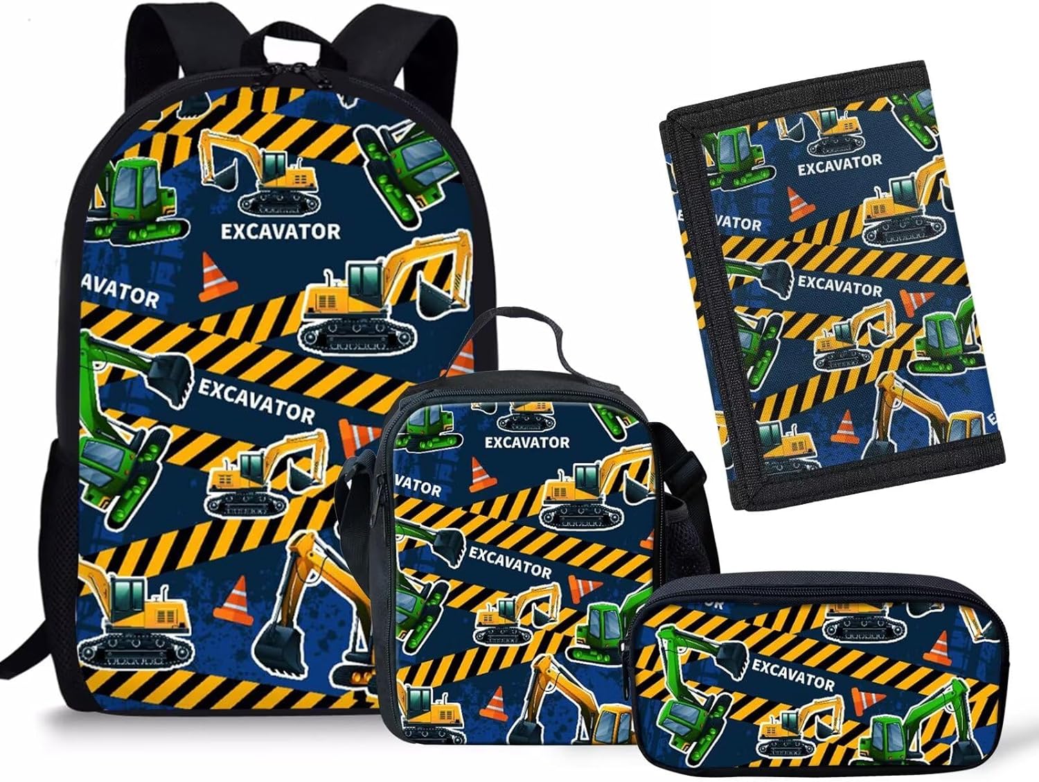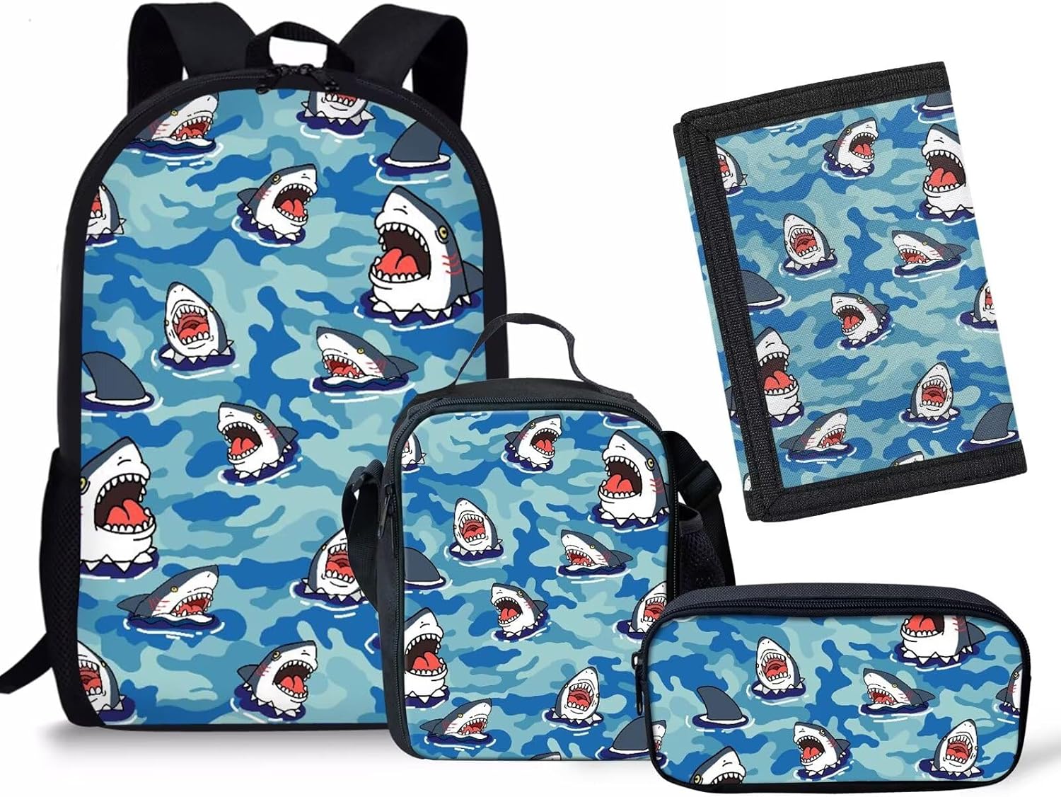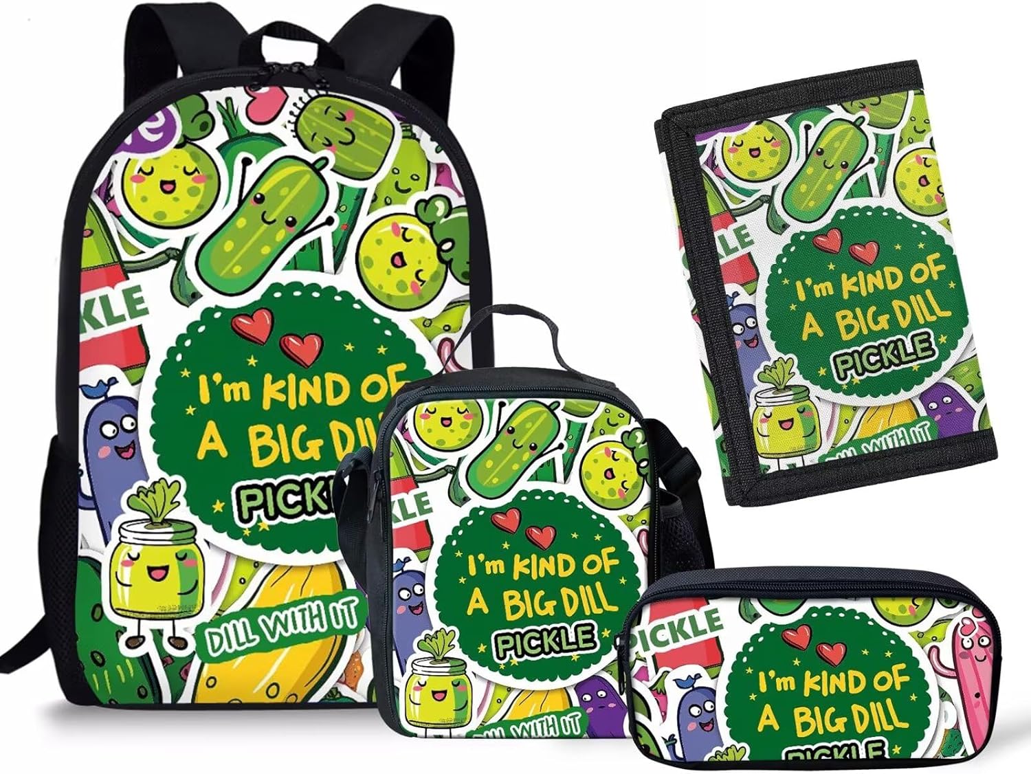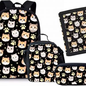 Backpacks Size: 17″X 11″X 5″;Lunch Box Size:9″X7″X2.7″;Pencil Holder Size:3.9″x8.2″x1.5″;Kids Wallet Size:3.9″x5.4″x0.4″