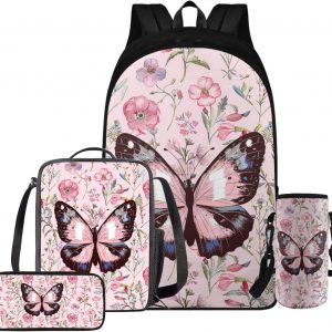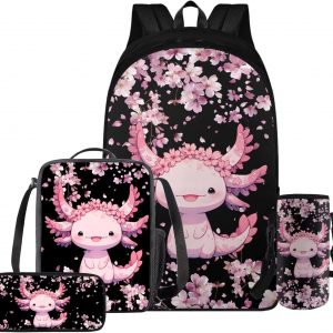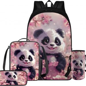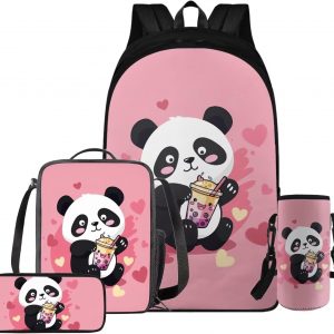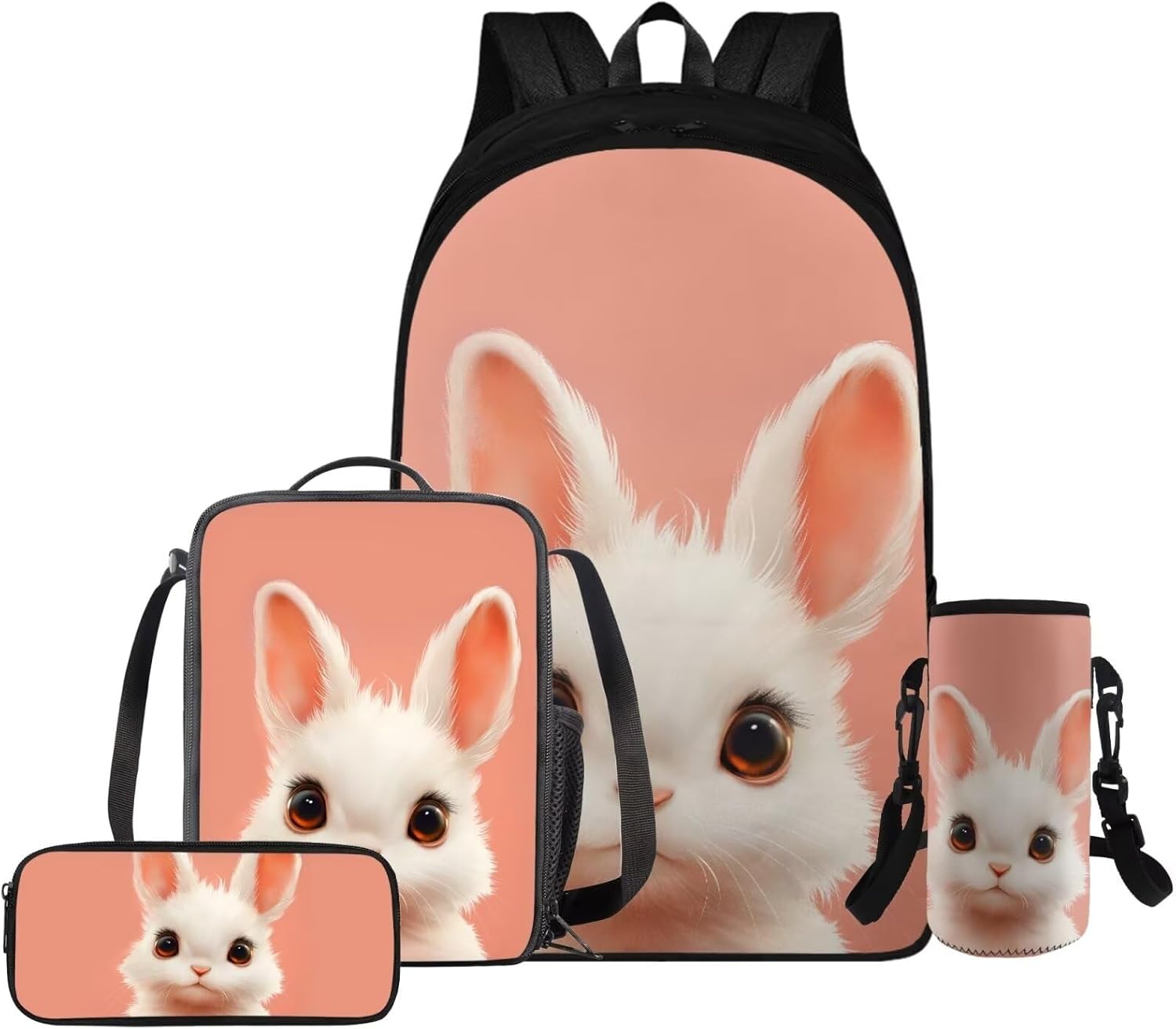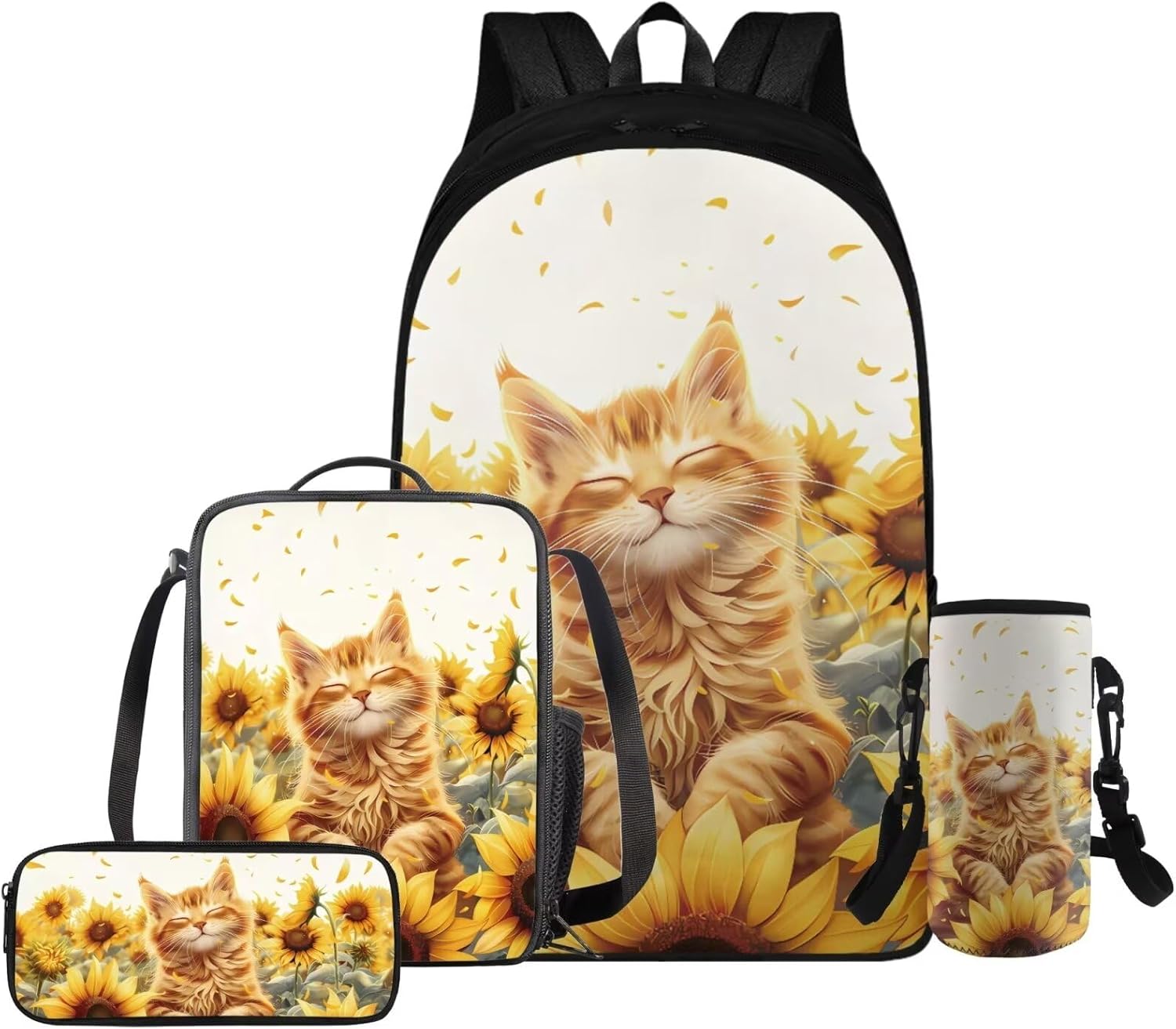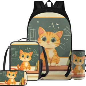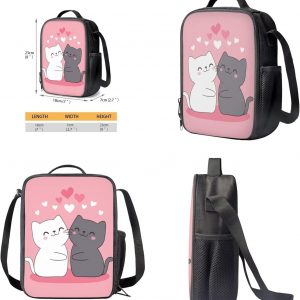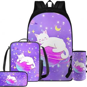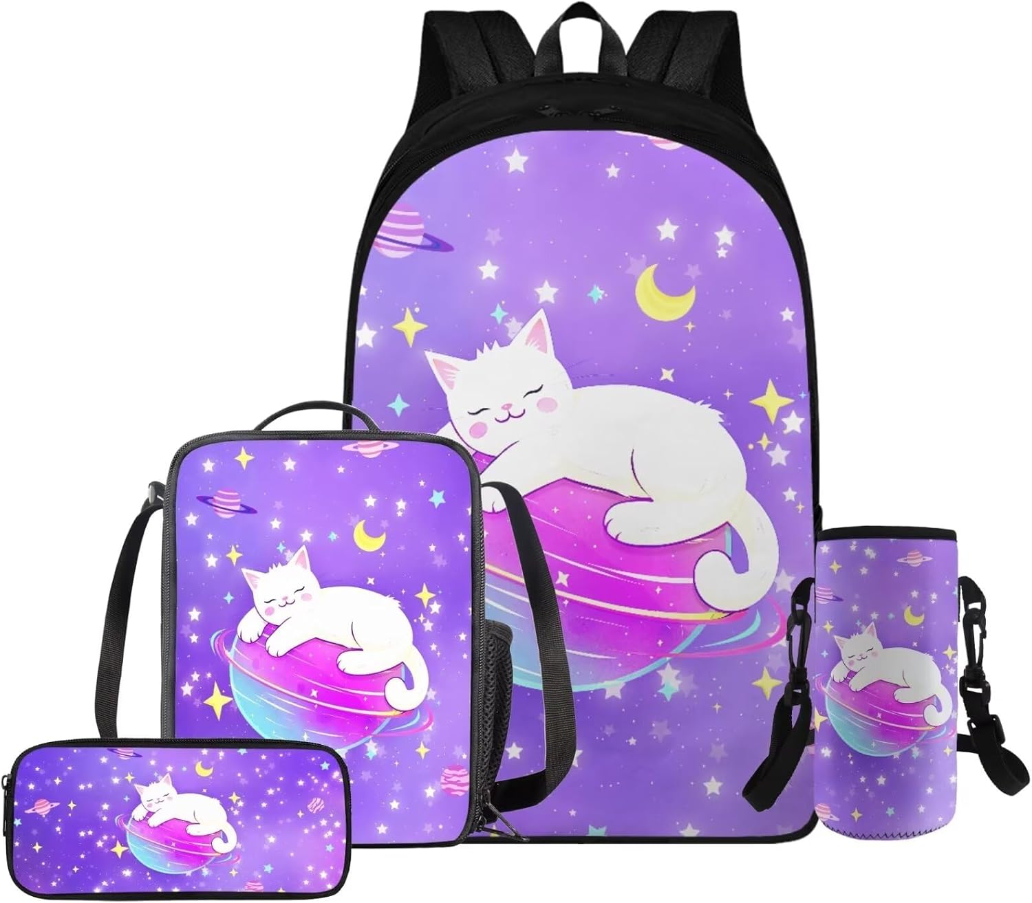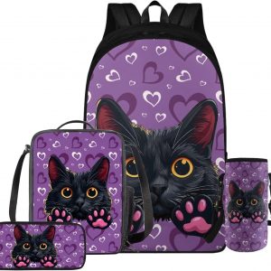 Rnyleeg Pink Cat Backpack for School Girls 9-12 with Lunch Box Kawaii Kids Backpack Set Middle School Bookbag Set 4 in 1 Kids School Bag Rucksack quantity