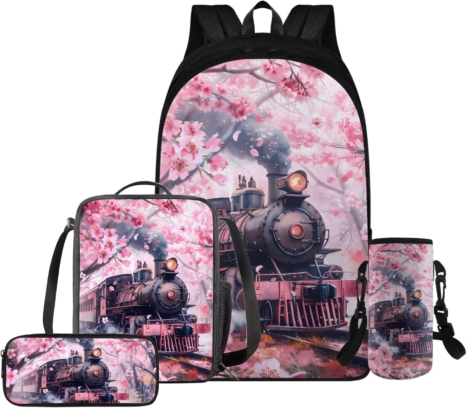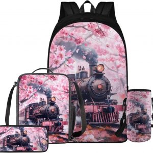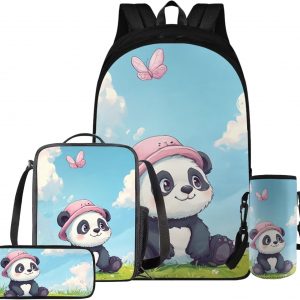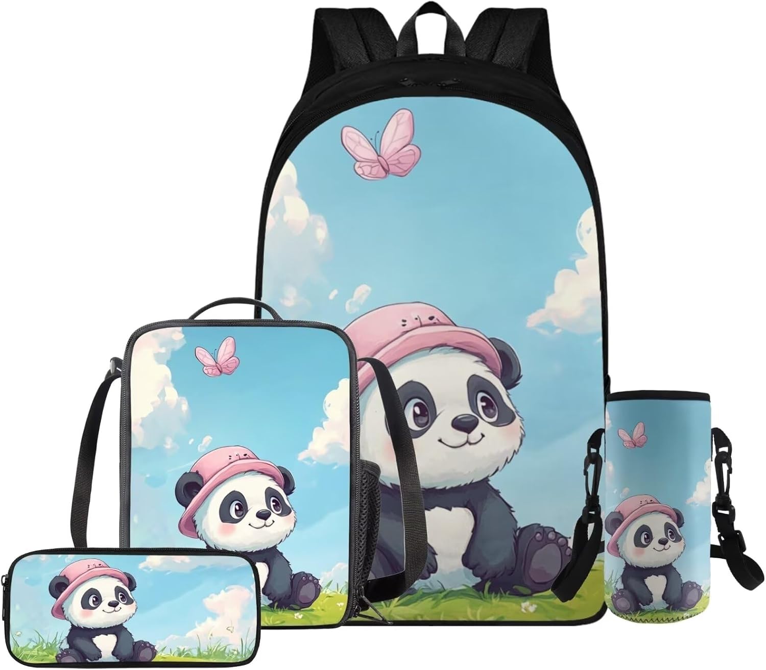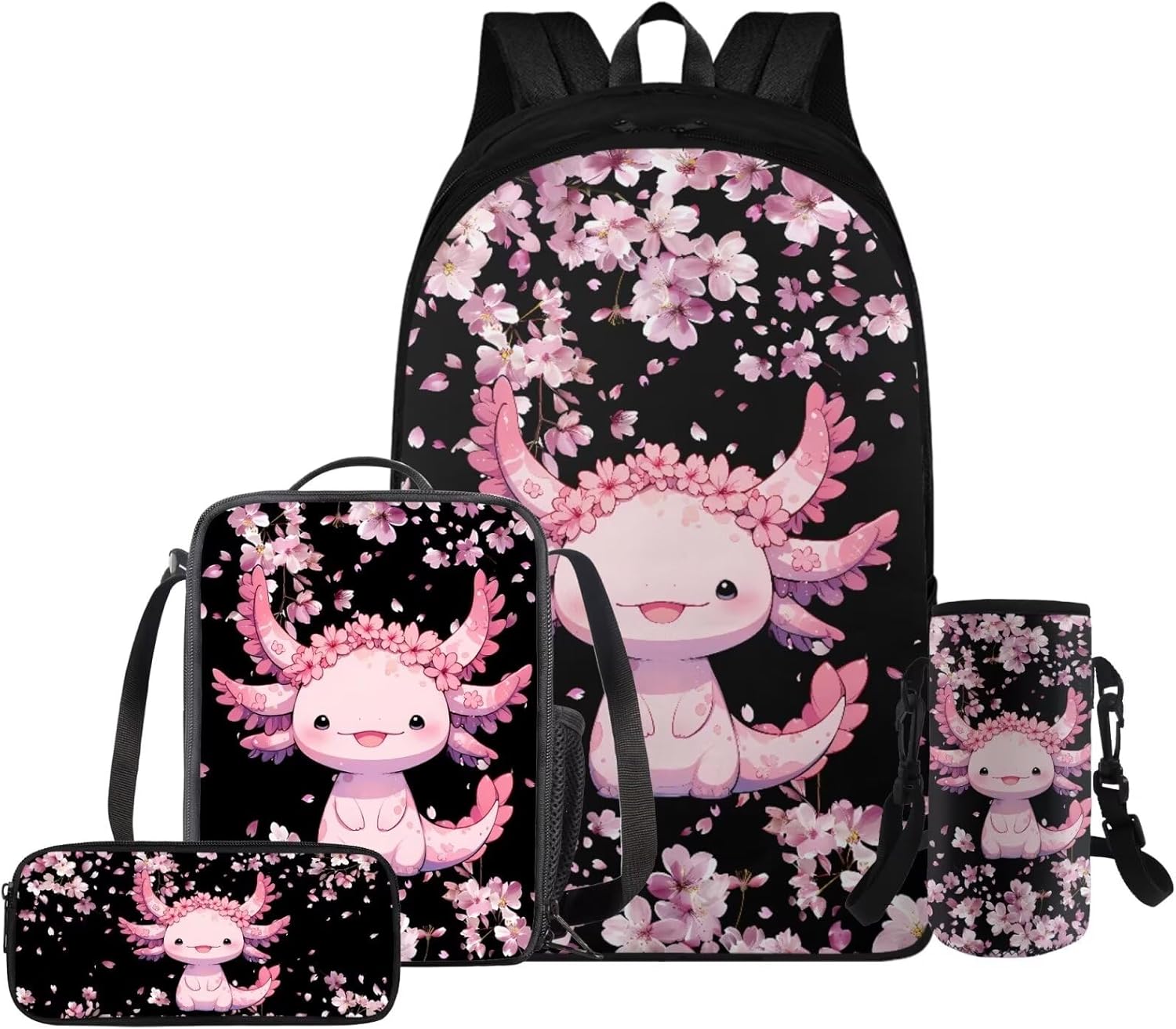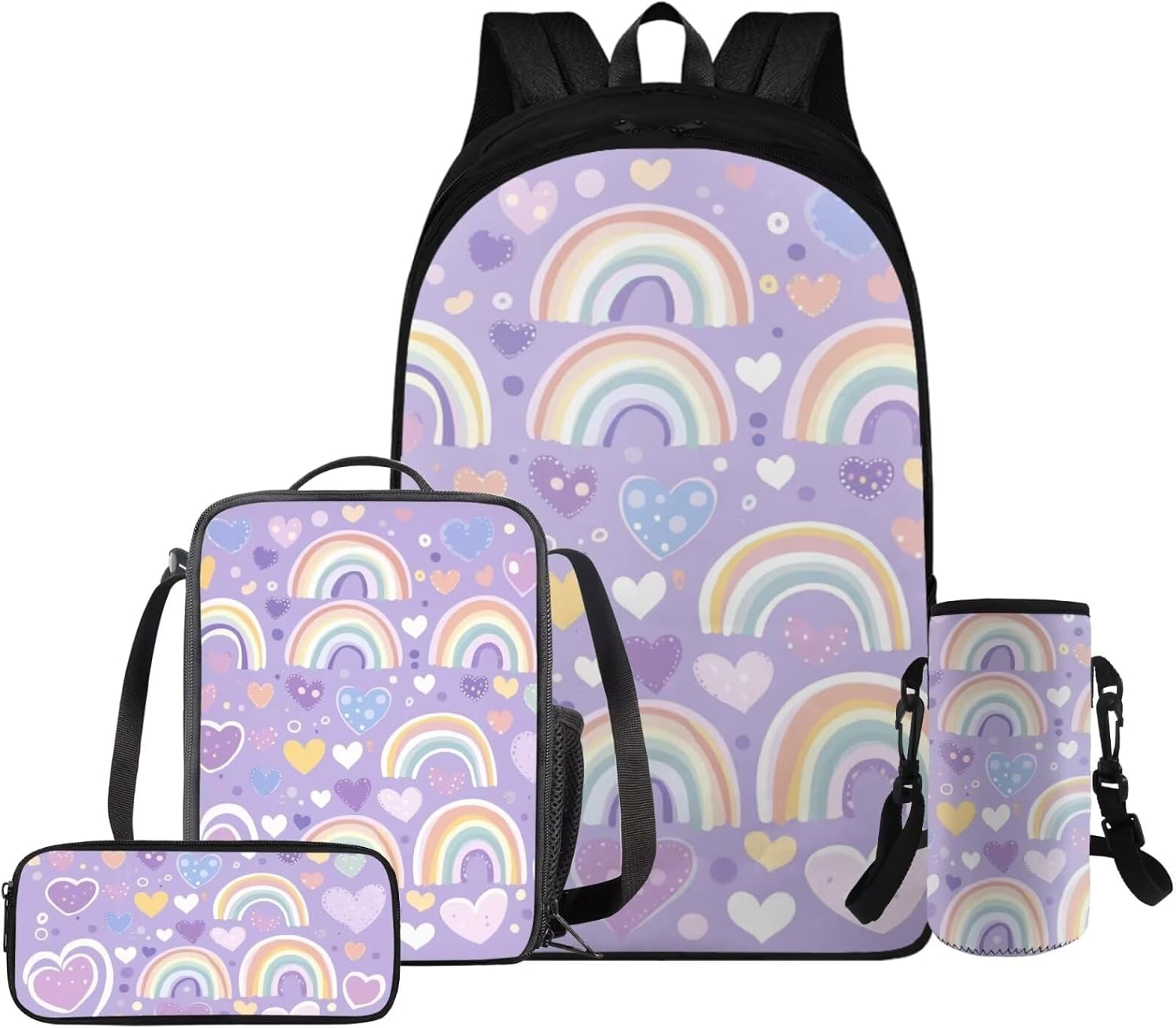 Rnyleeg Pink Cat Backpack for School Girls 9-12 with Lunch Box Kawaii Kids Backpack Set Middle School Bookbag Set 4 in 1 Kids School Bag Rucksack quantity