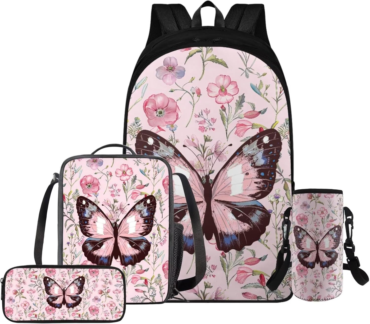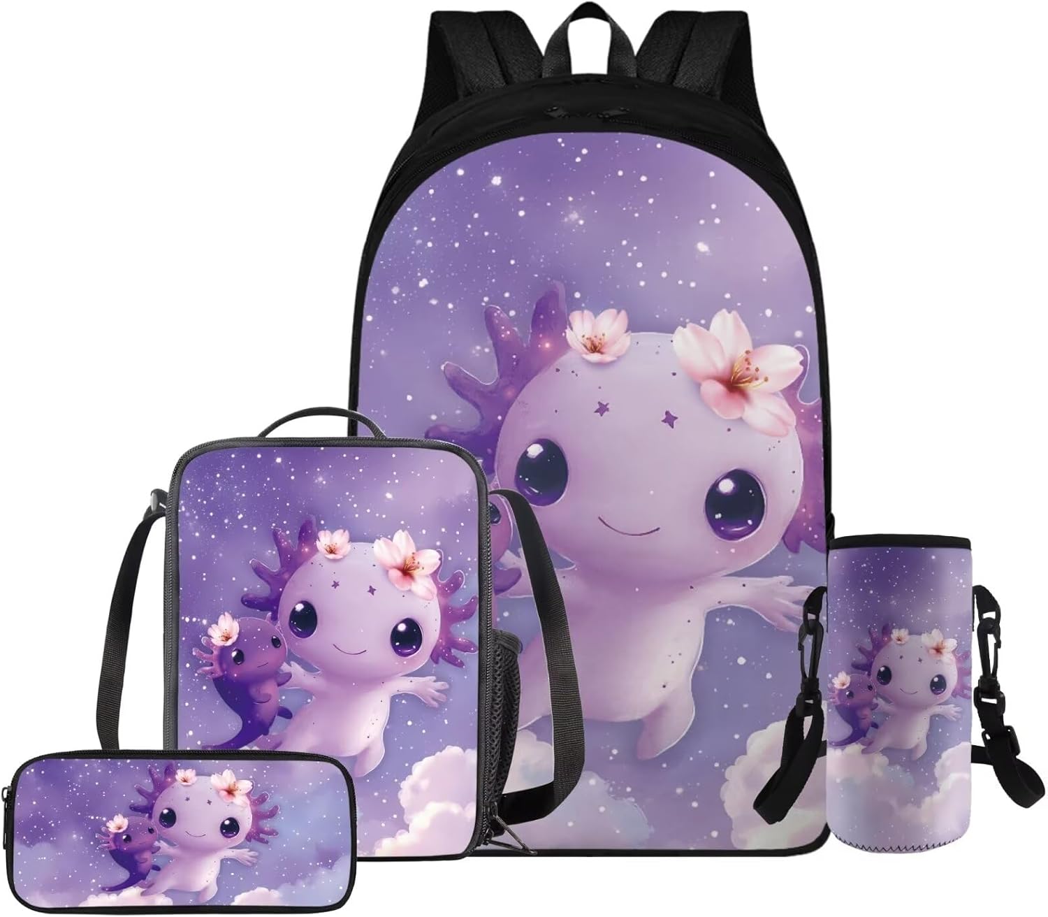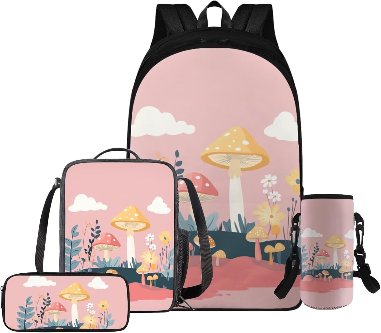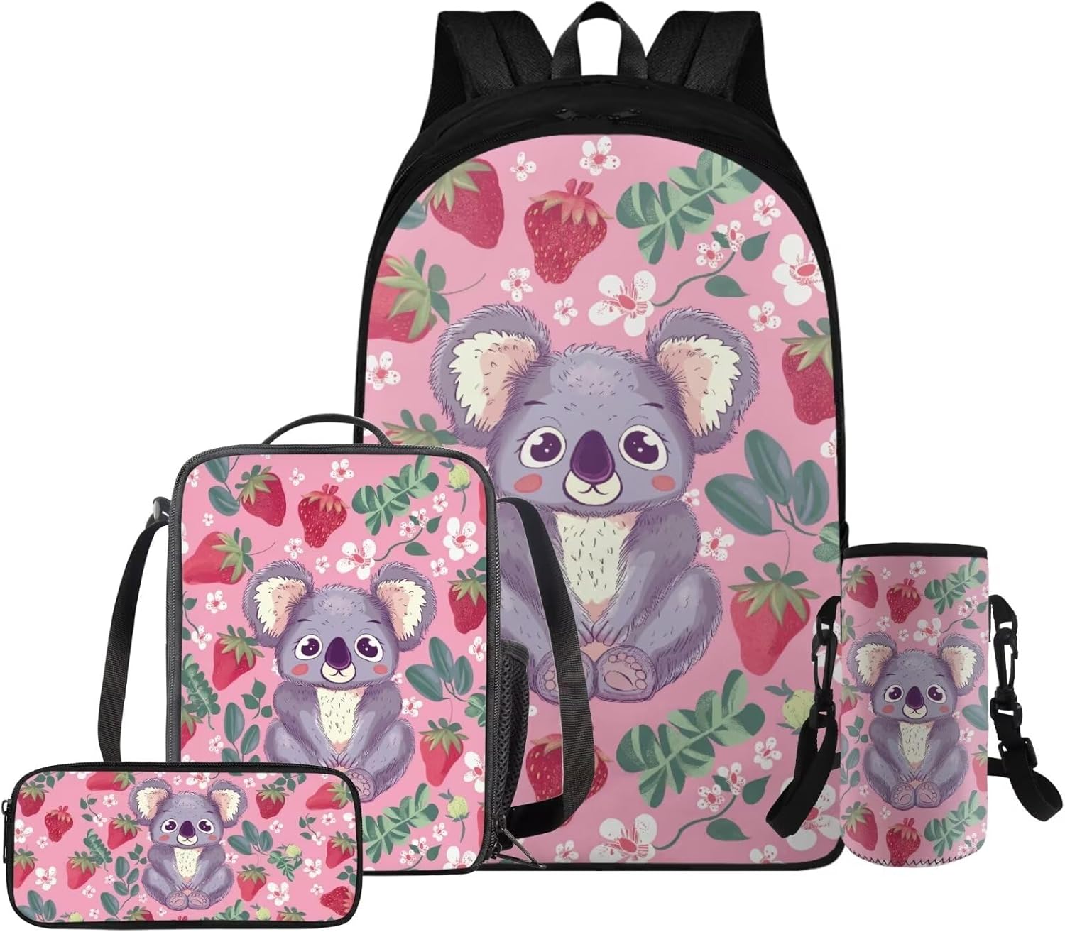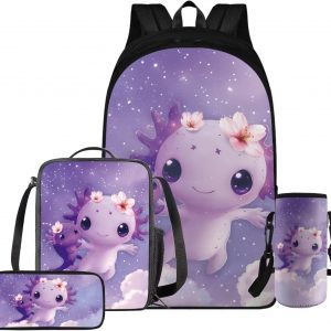 Rnyleeg Pink Cat Backpack for School Girls 9-12 with Lunch Box Kawaii Kids Backpack Set Middle School Bookbag Set 4 in 1 Kids School Bag Rucksack quantity