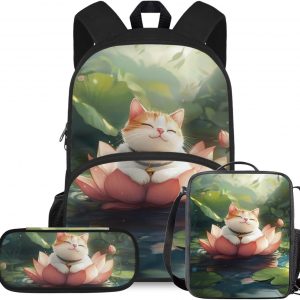 - Large Capacity: The bookbag has large zipper compartment that can store books, etc. in an orderly manner and there is a front pocket for storing small items, and two side mesh pockets for storing water bottles or umbrellas; The lunch bag has double zippers and one mesh bottle pocket on one side; The pencil pouch keeps pencils and cards organized