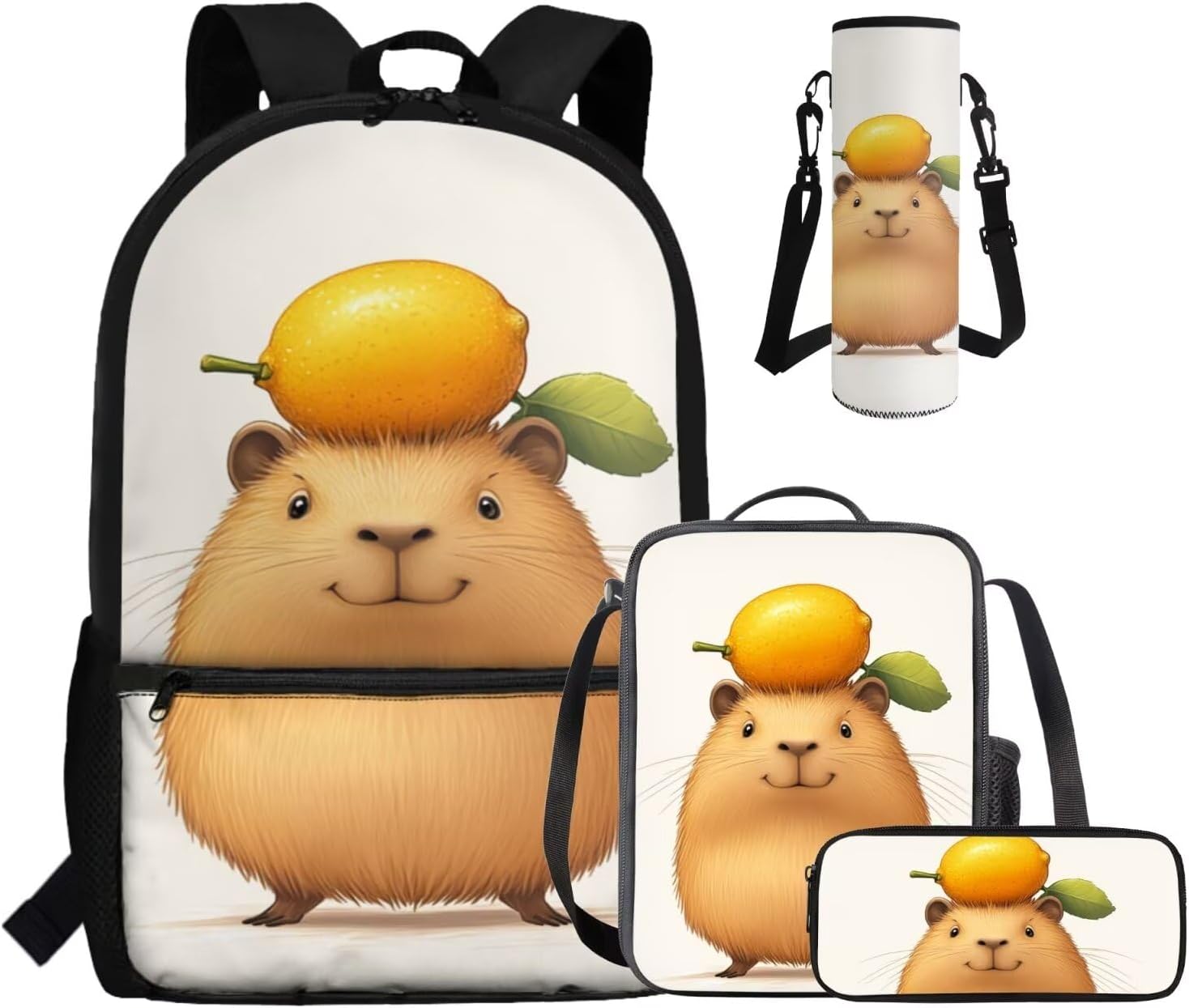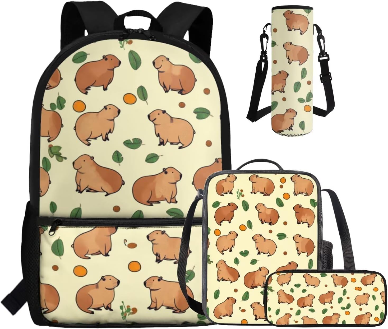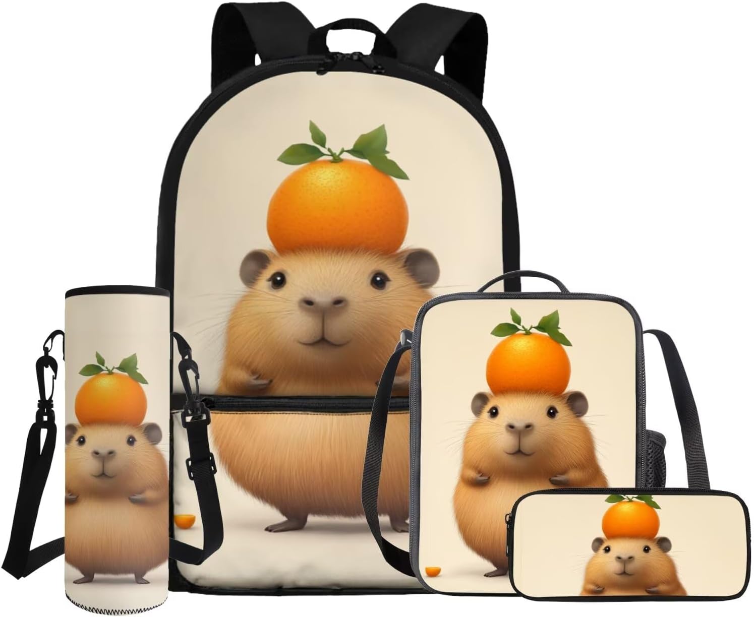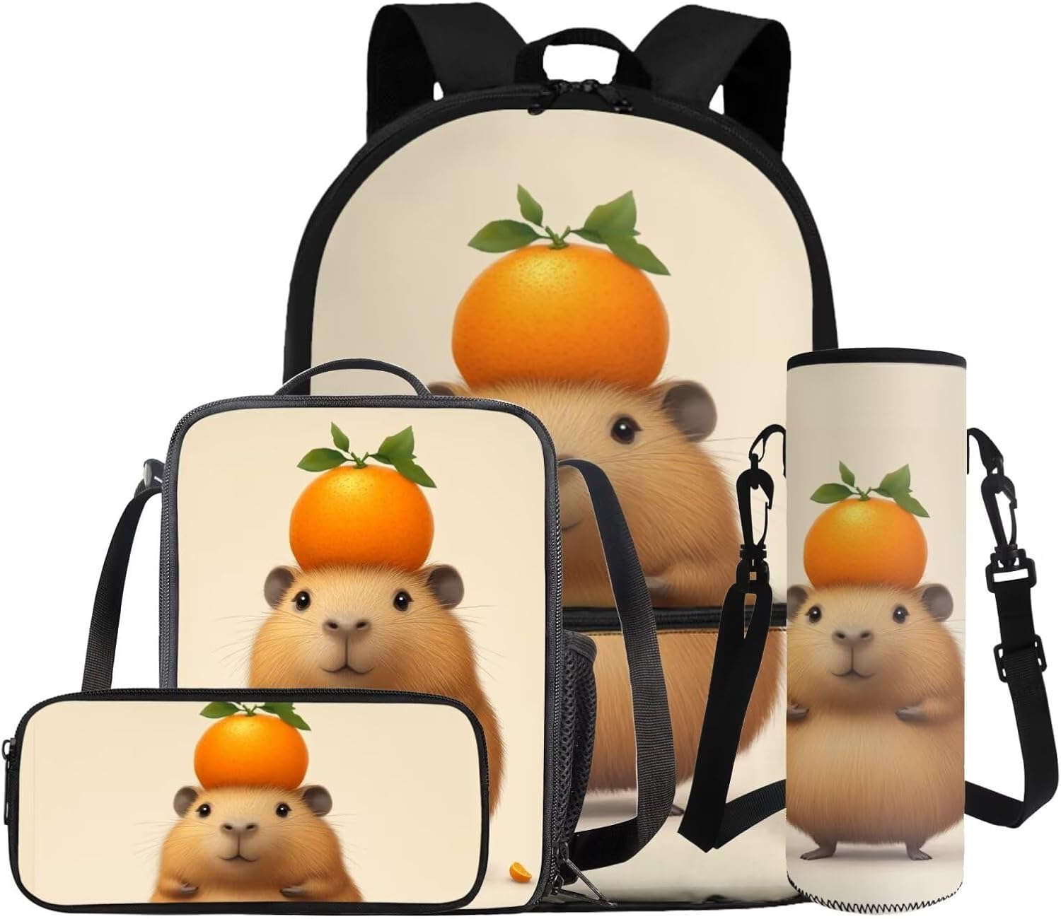 This set includes a spacious 17-inch polyester backpack, a handy lunch bag, a practical pen bag, and a convenient water cup sleeve. From carrying books, water cup to keeping food fresh and stationery organized, it covers all bases. All crafted to make school days easier and more enjoyable.