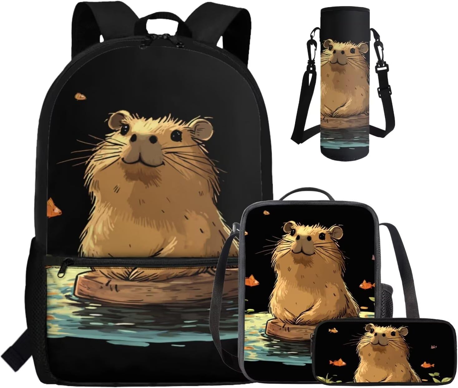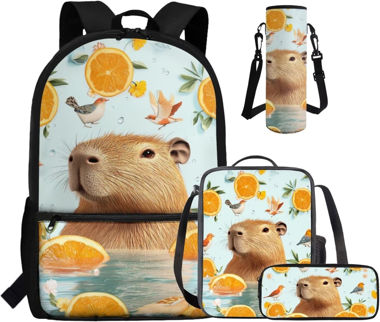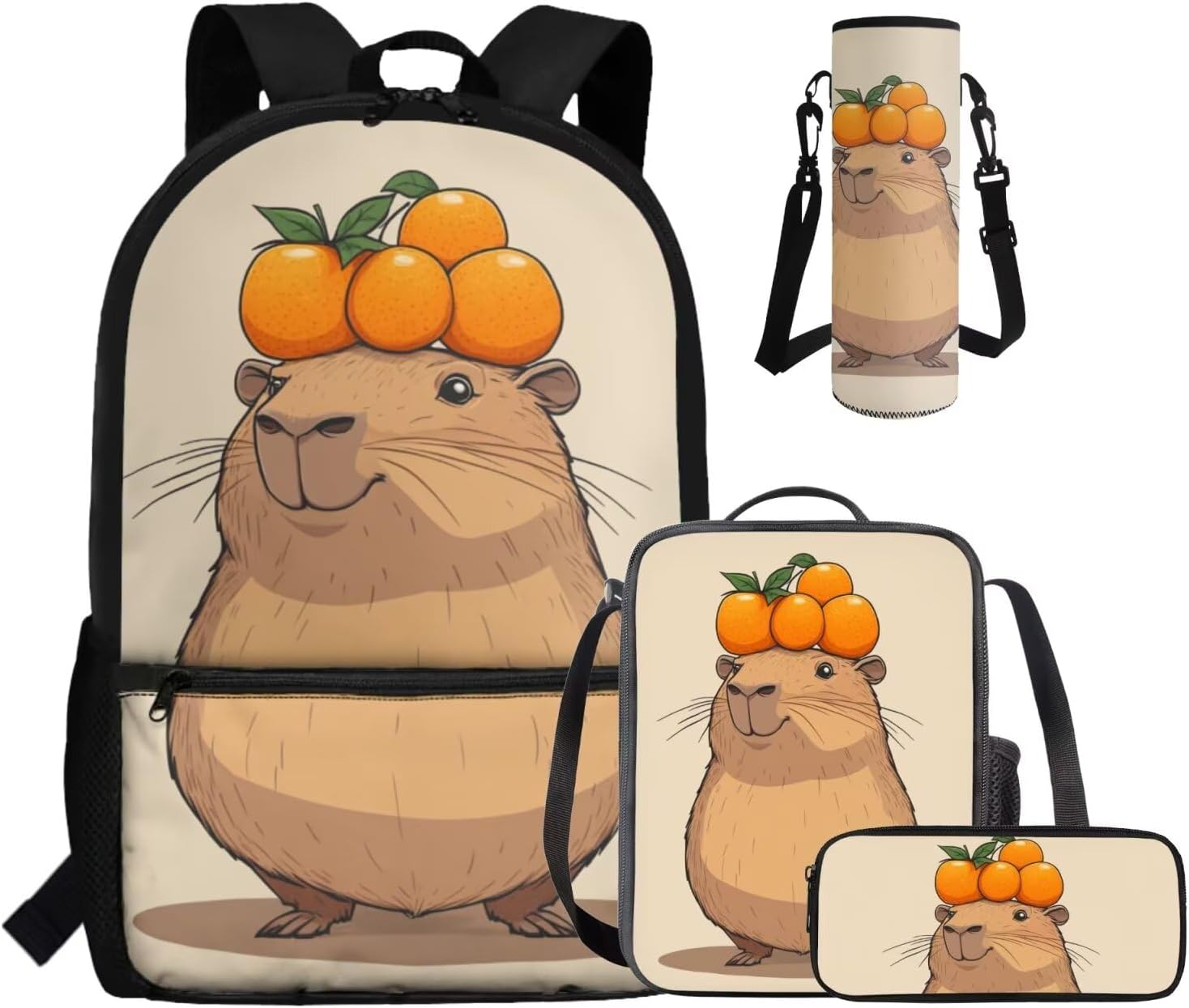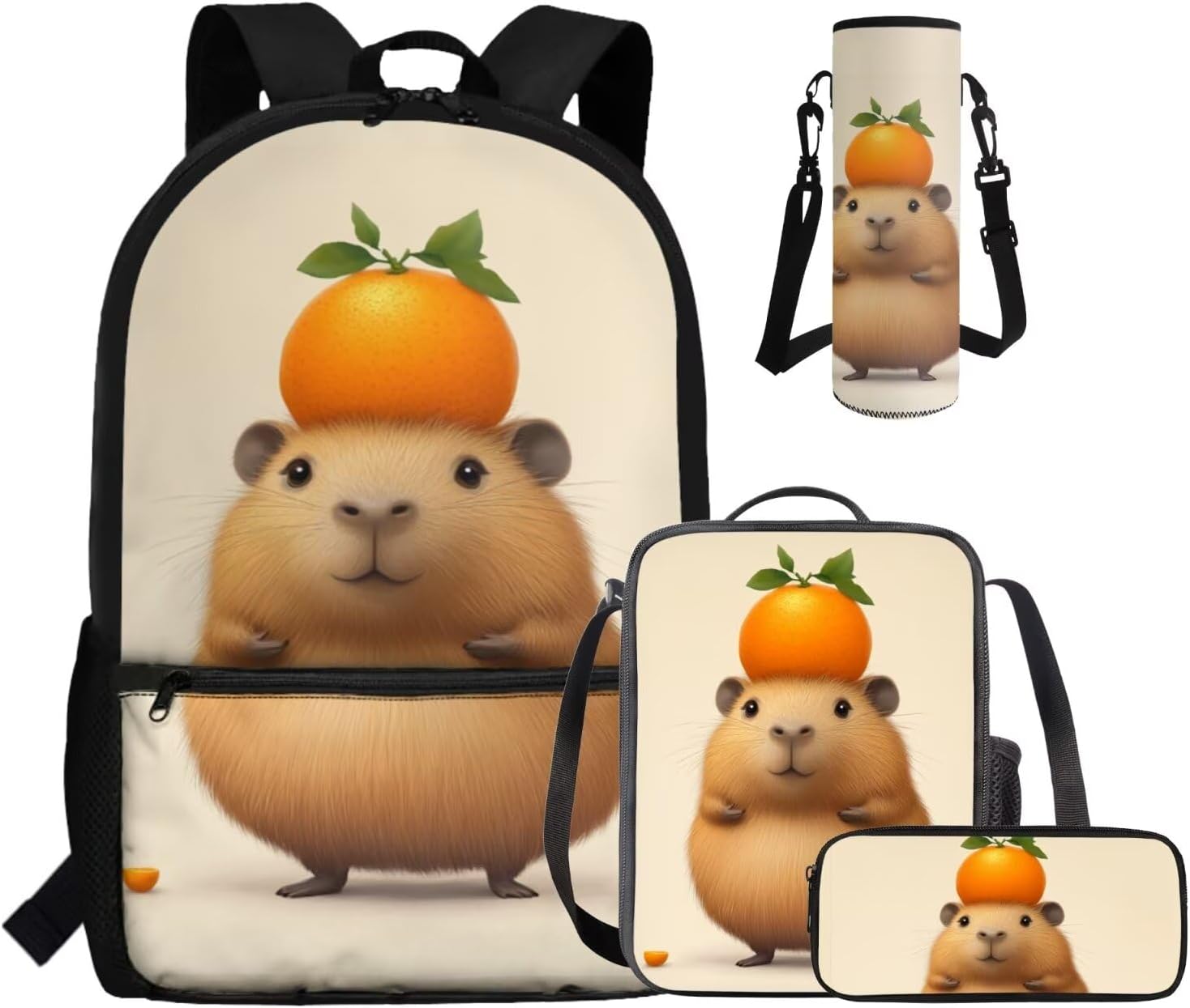 This set includes a spacious 17-inch polyester backpack, a handy lunch bag, a practical pen bag, and a convenient water cup sleeve. From carrying books, water cup to keeping food fresh and stationery organized, it covers all bases. All crafted to make school days easier and more enjoyable.